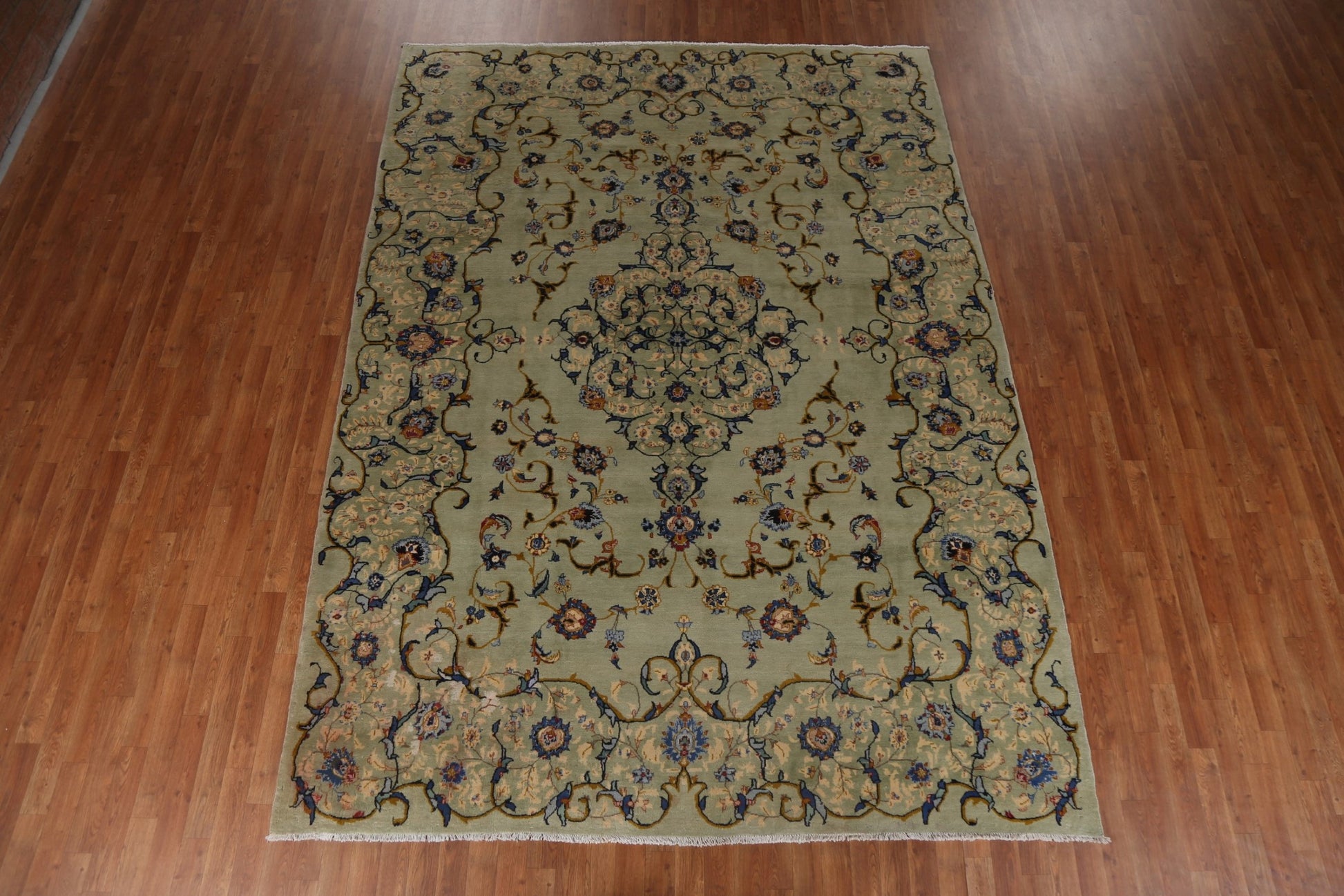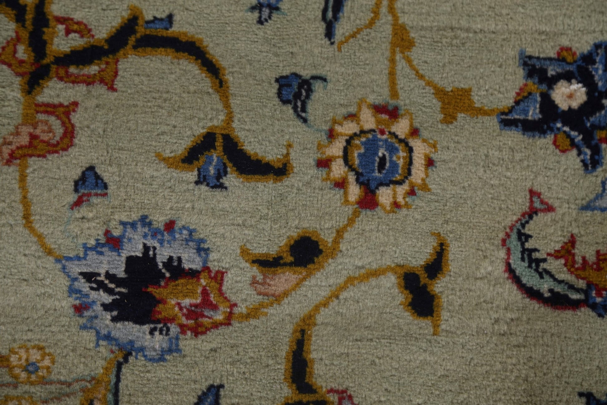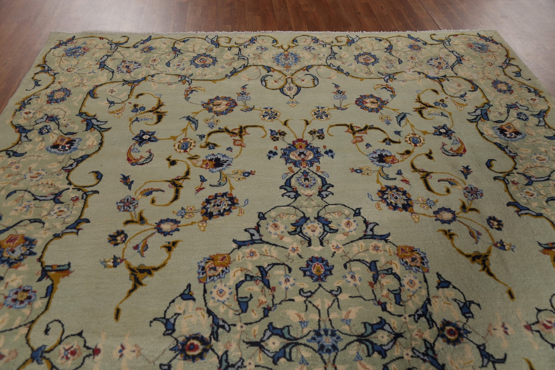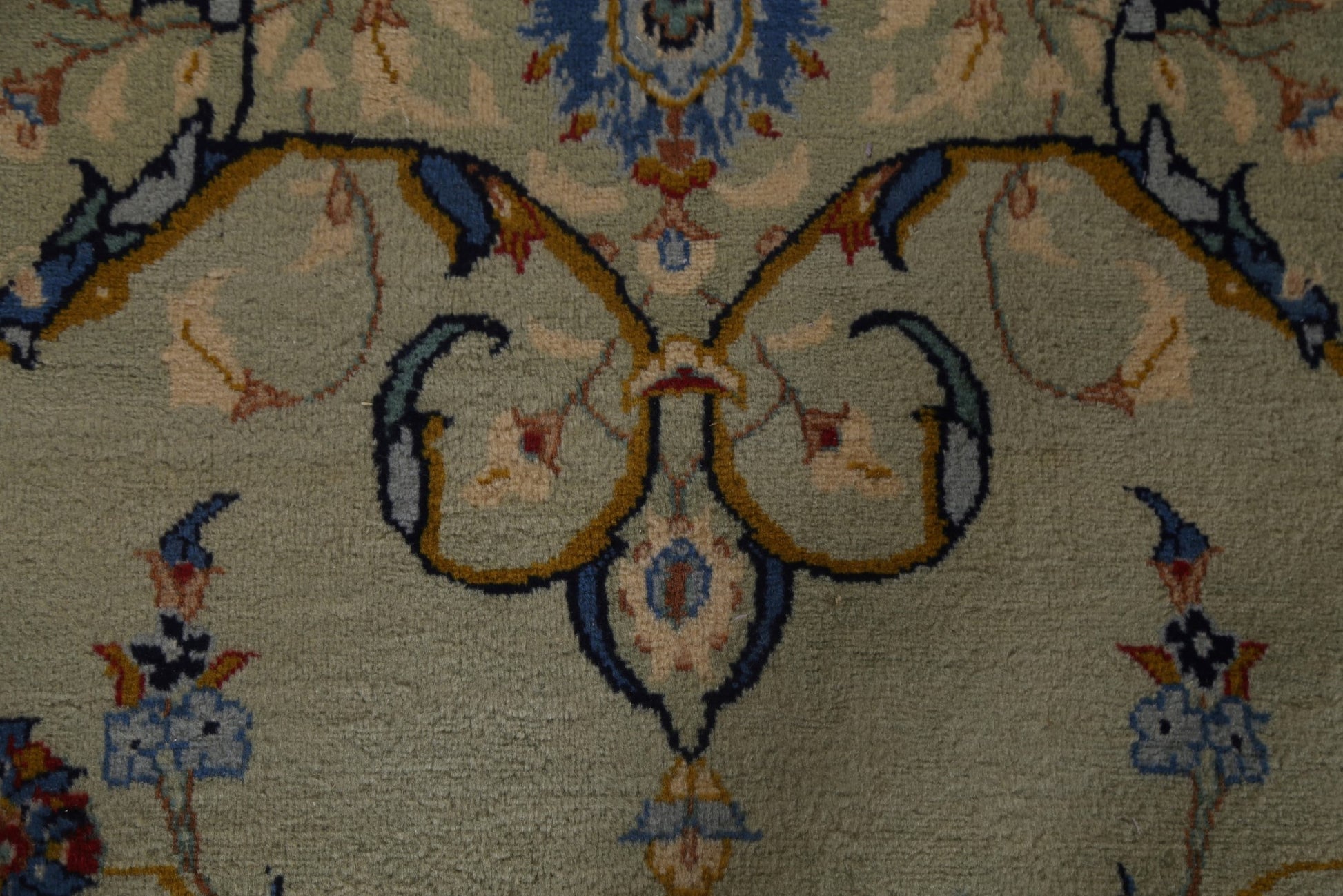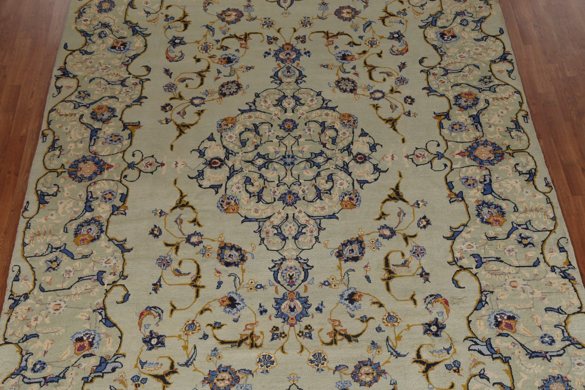 A Beautiful Genuine Persia ( Persia ) Kashan rug is Hand Knotted by skillful weavers in Persia ( Persia ) with 100% Wool Material. This rug is in Very Good condition. dimensions are 11' 1'' X 8' 0'' in foot and 338 X 244 in centimeter. the primary color is Green.