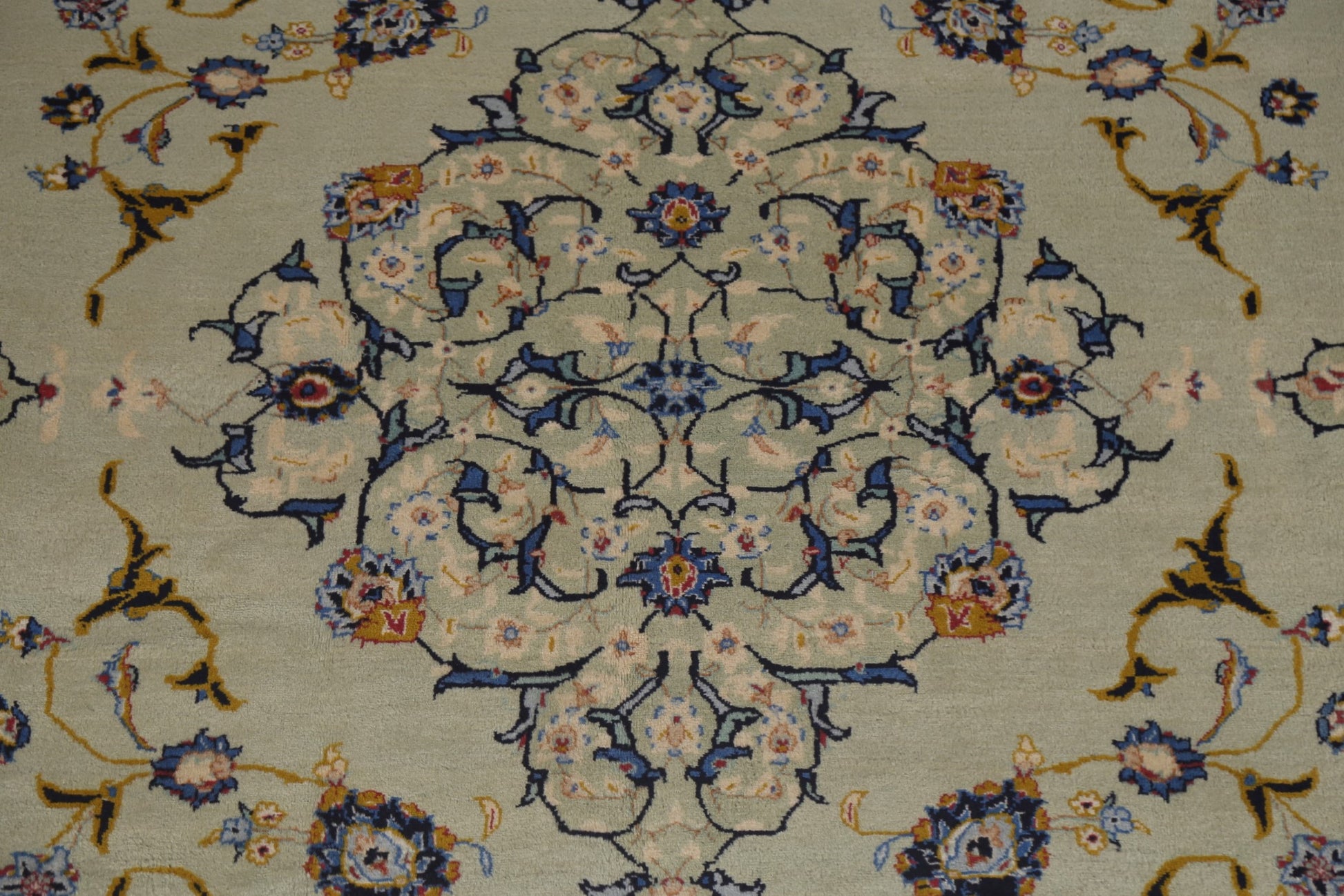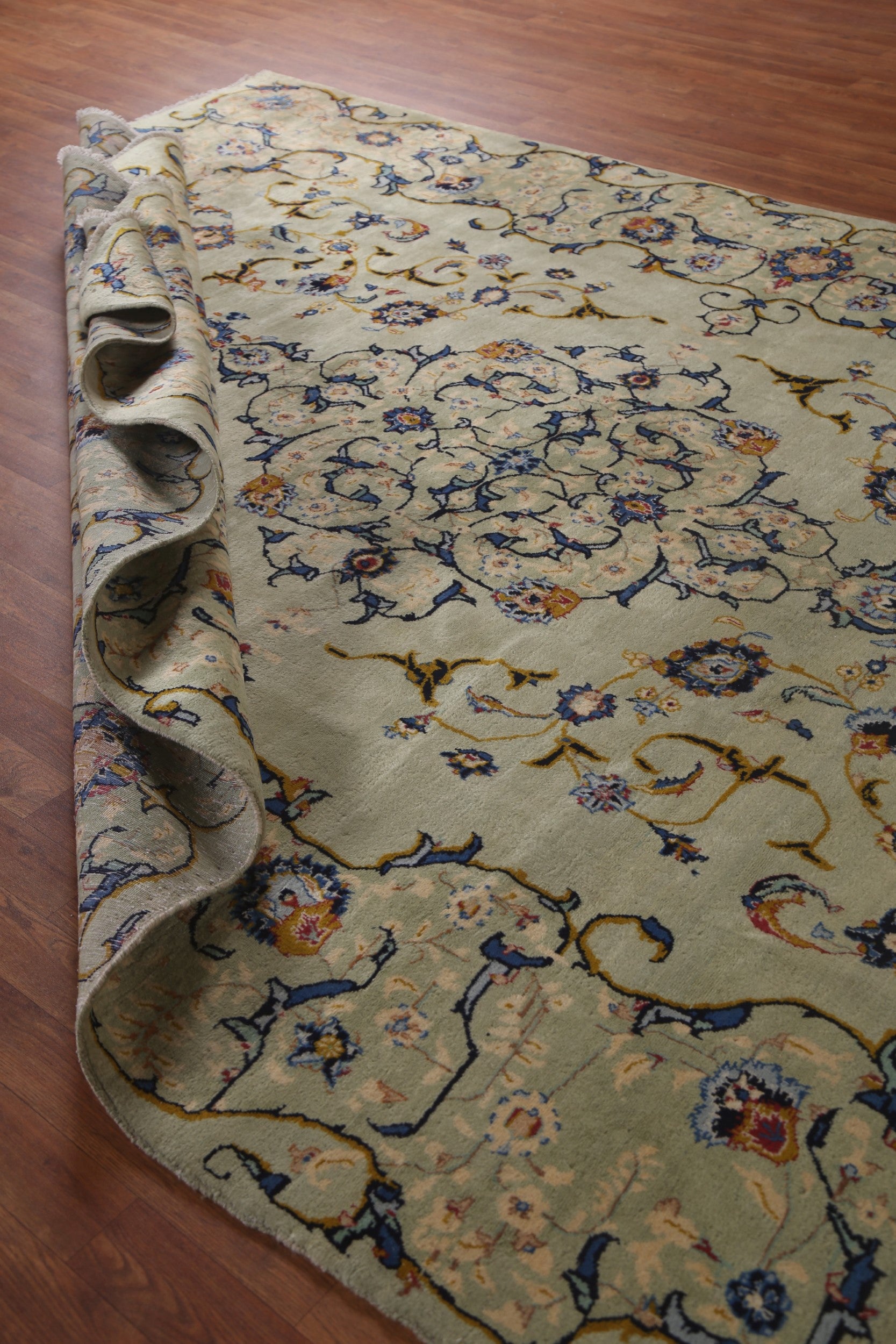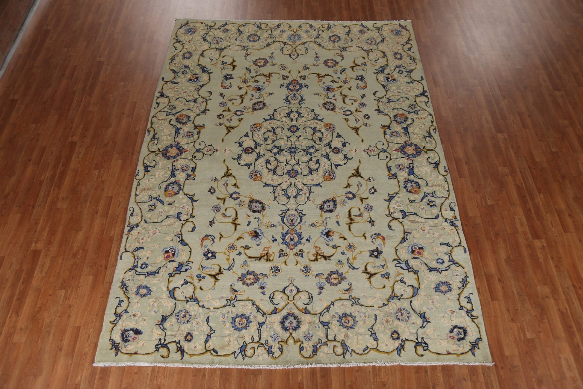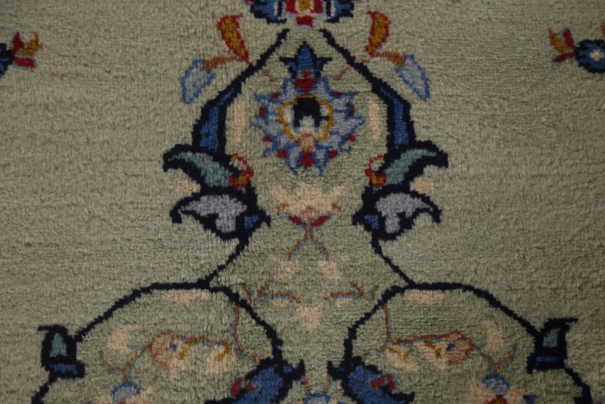 A Beautiful Genuine Persia ( Persia ) Kashan rug is Hand Knotted by skillful weavers in Persia ( Persia ) with 100% Wool Material. This rug is in Very Good condition. dimensions are 11' 1'' X 8' 0'' in foot and 338 X 244 in centimeter. the primary color is Green.