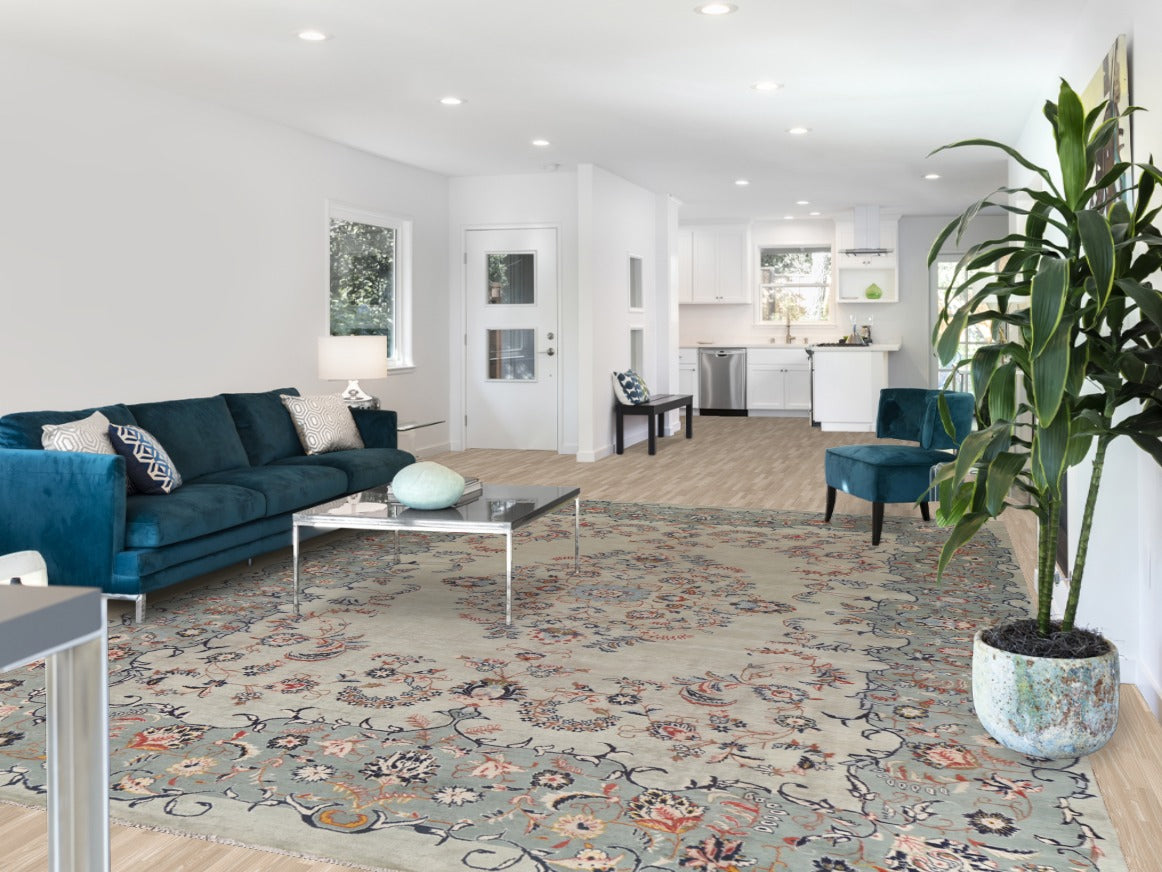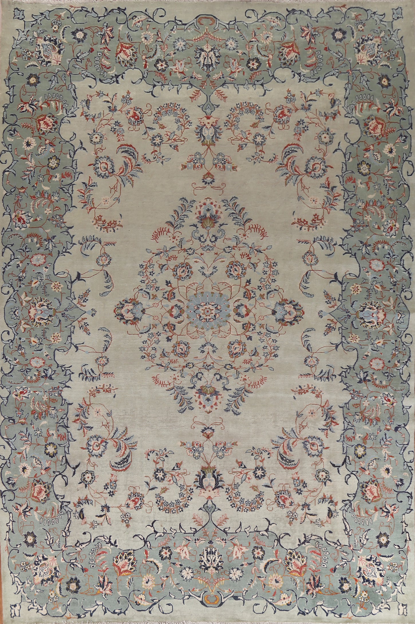 Floral Green Kashan Persian Area Rug 9x13