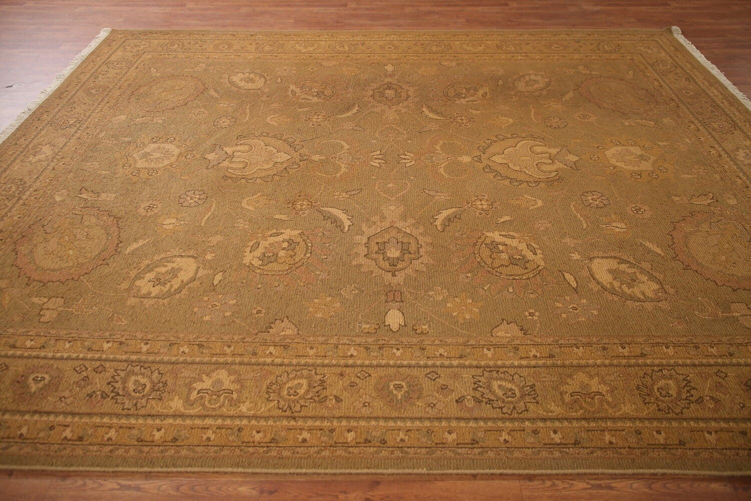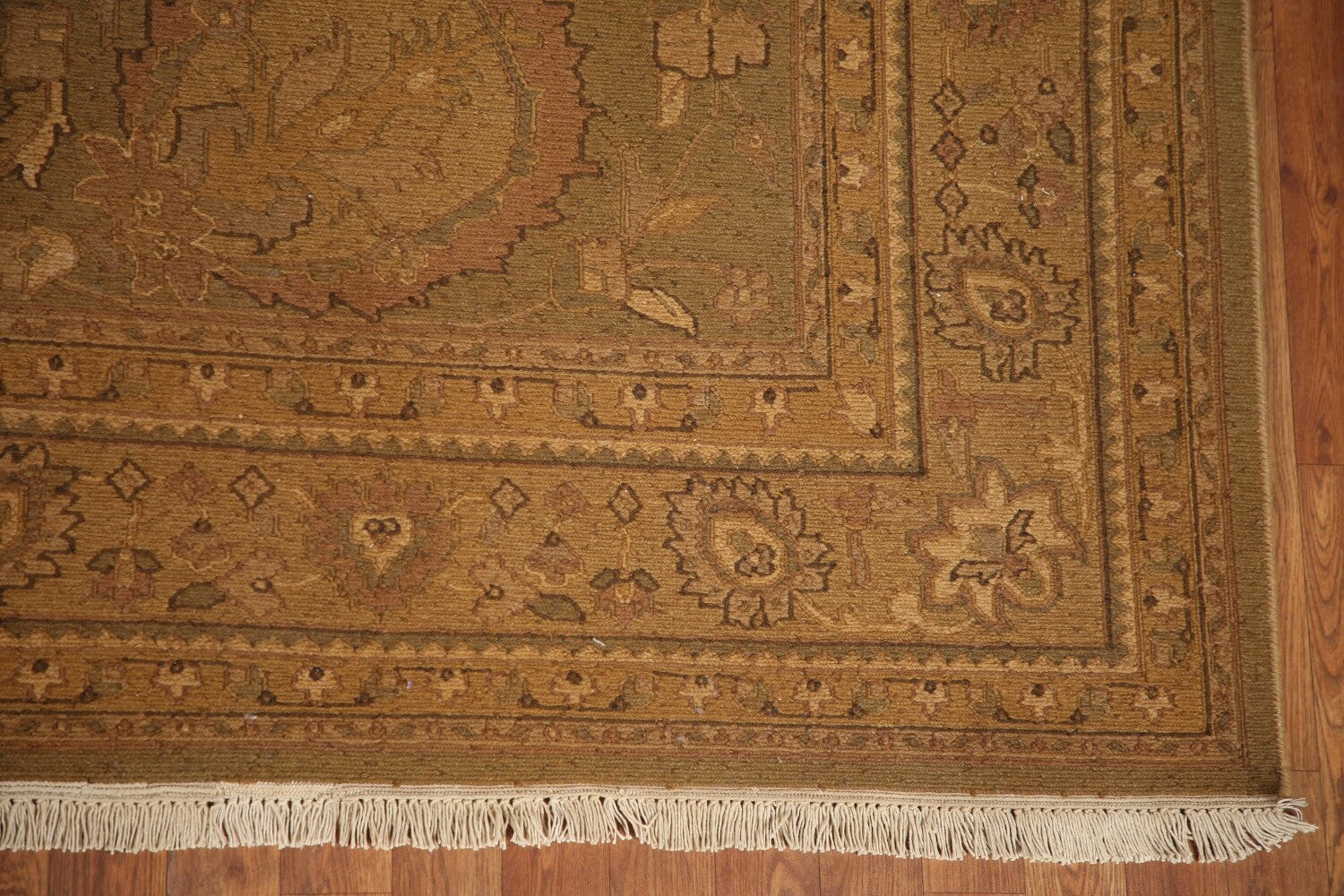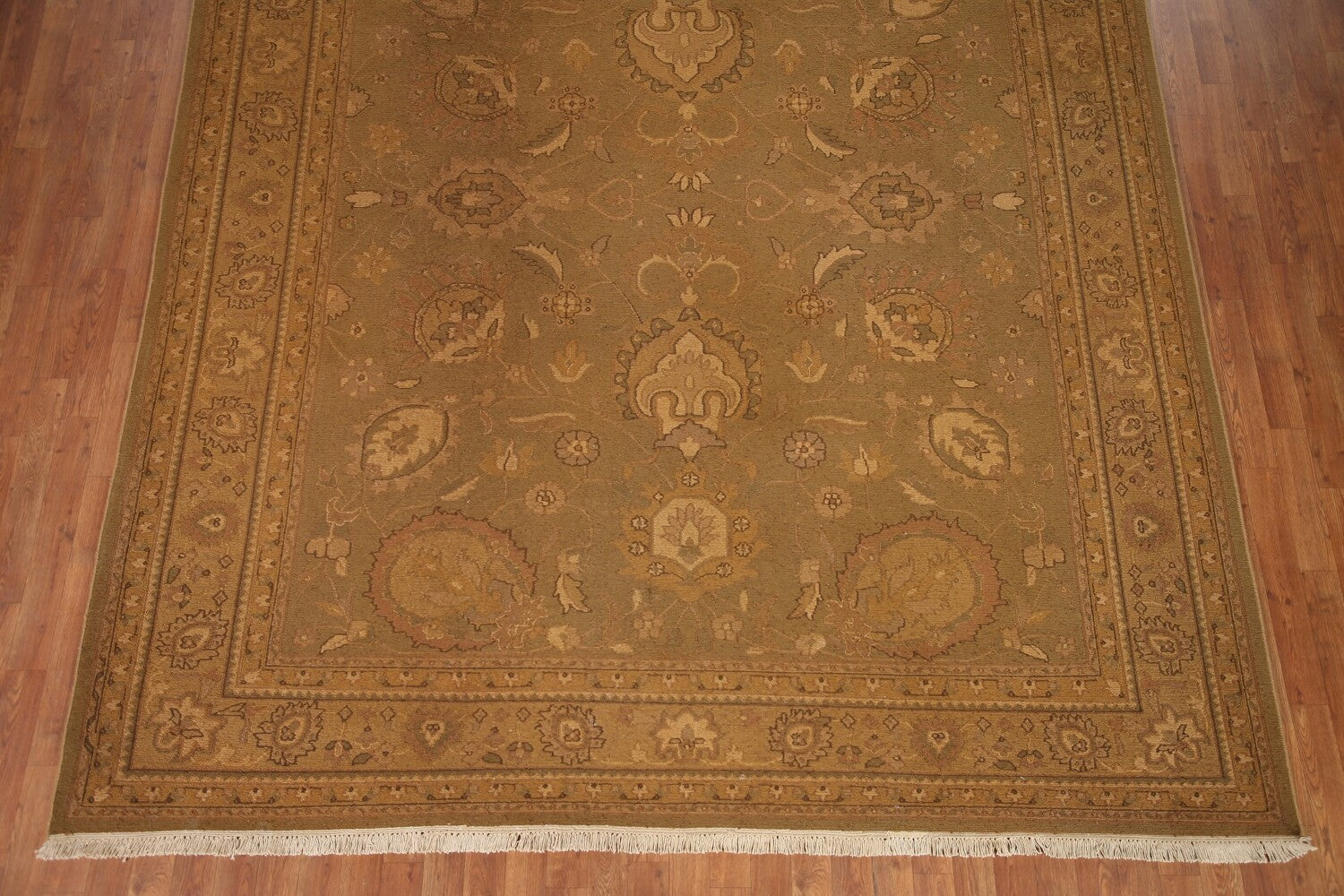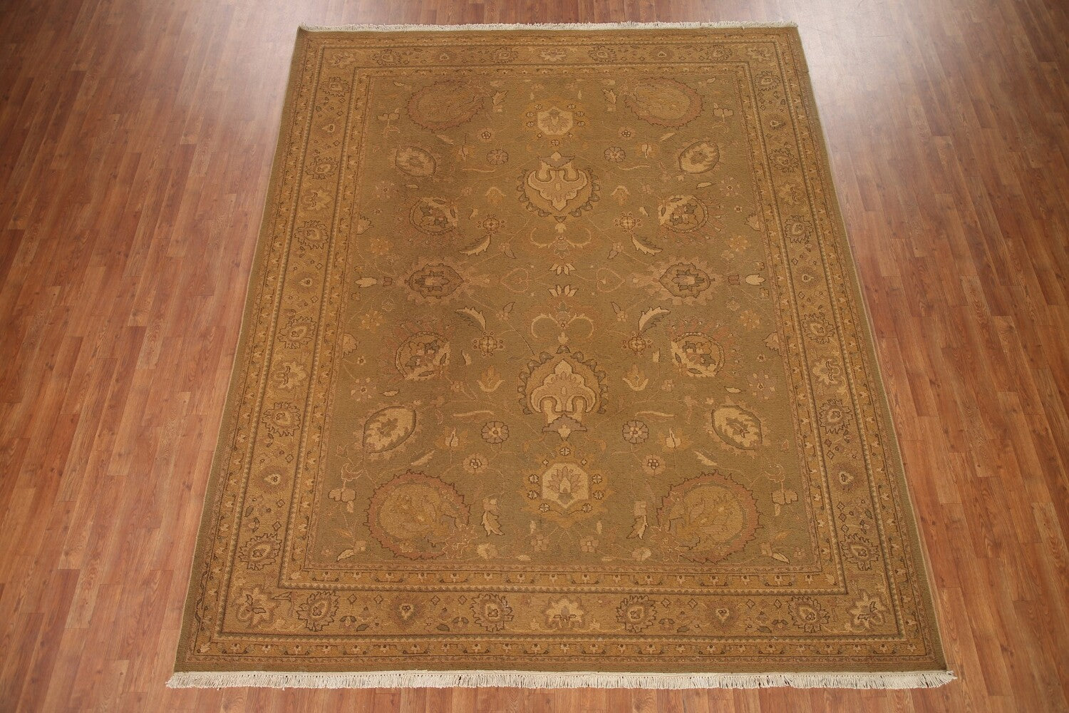 A Beautiful Genuine India Sumak rug is Hand Knotted by skillful weavers in India with 100% Wool Material. This rug is in condition. dimensions are 10' 3'' X 8' 5'' in foot and 312 X 257 in centimeter. the primary color is Green.
