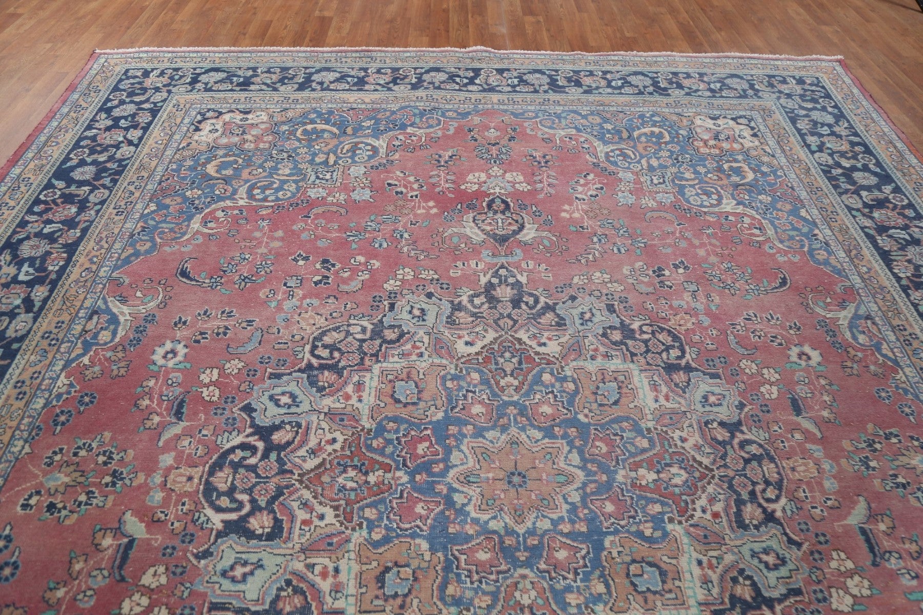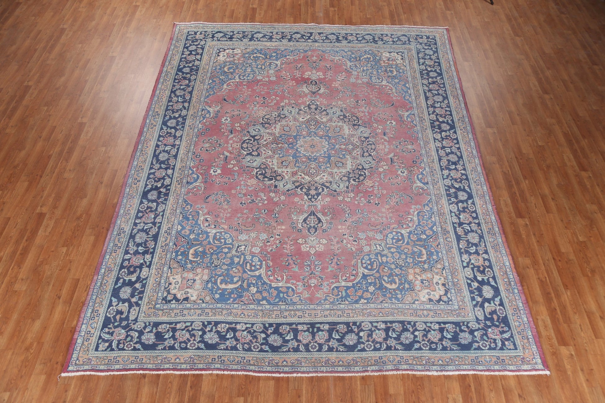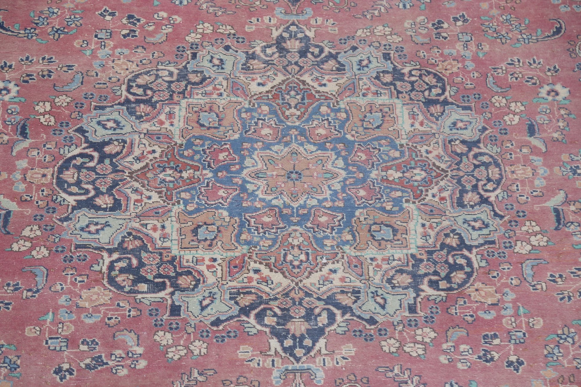 A Beautiful Genuine Persia ( Persia ) Mashad rug is Hand Knotted by skillful weavers in Persia ( Persia ) with 100% Wool Material. This rug is in Very Good (Evenly Low Pile) condition. dimensions are 12' 6'' X 9' 5'' in foot and 381 X 287 in centimeter. the primary color is Pink.