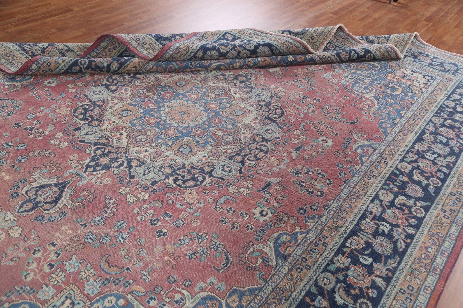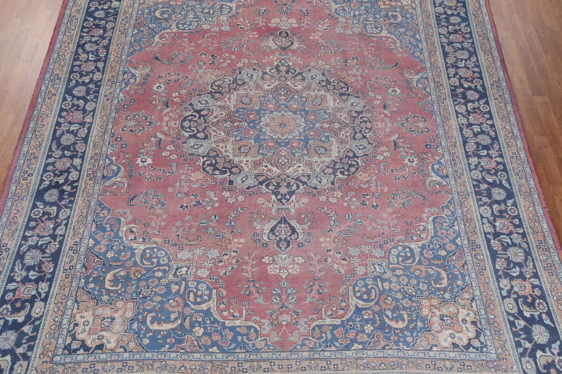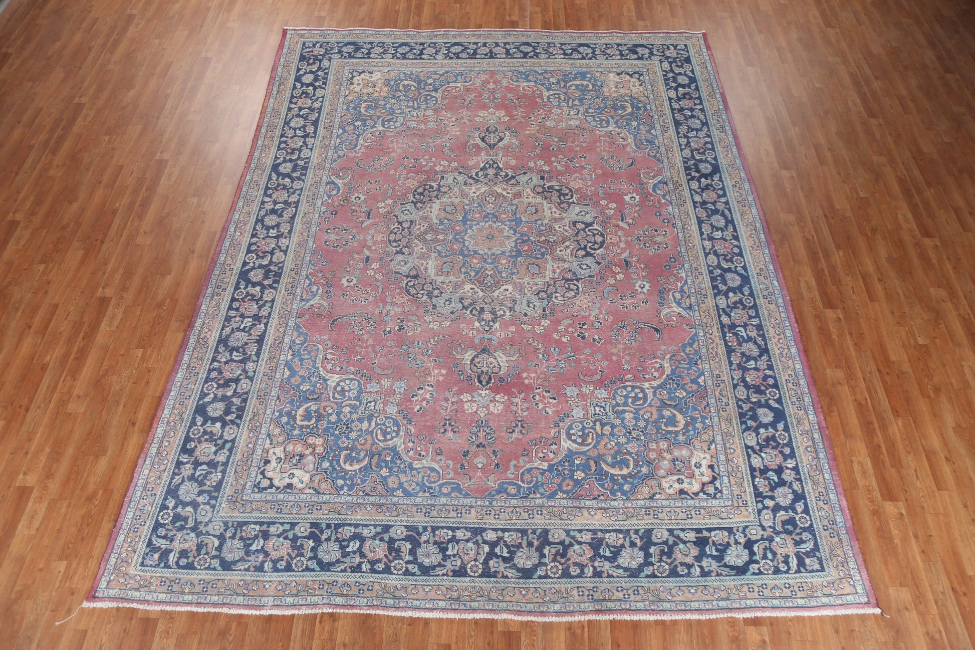 A Beautiful Genuine Persia ( Persia ) Mashad rug is Hand Knotted by skillful weavers in Persia ( Persia ) with 100% Wool Material. This rug is in Very Good (Evenly Low Pile) condition. dimensions are 12' 6'' X 9' 5'' in foot and 381 X 287 in centimeter. the primary color is Pink.