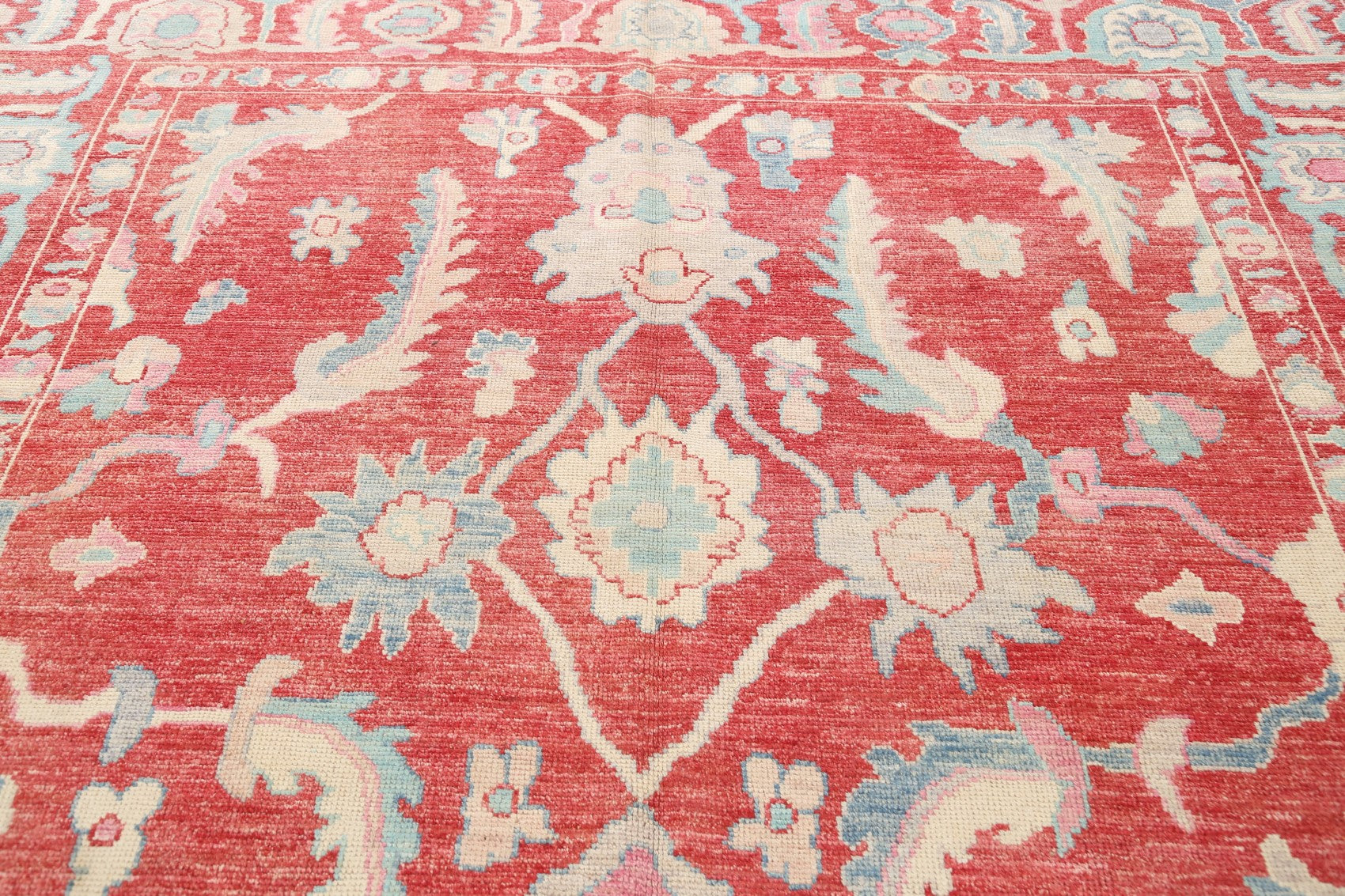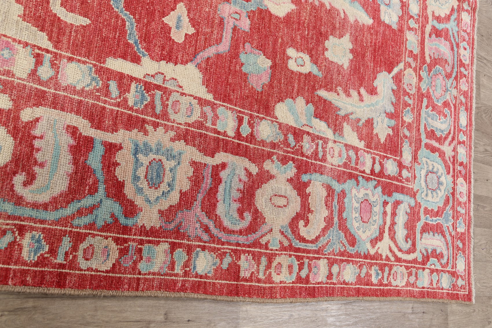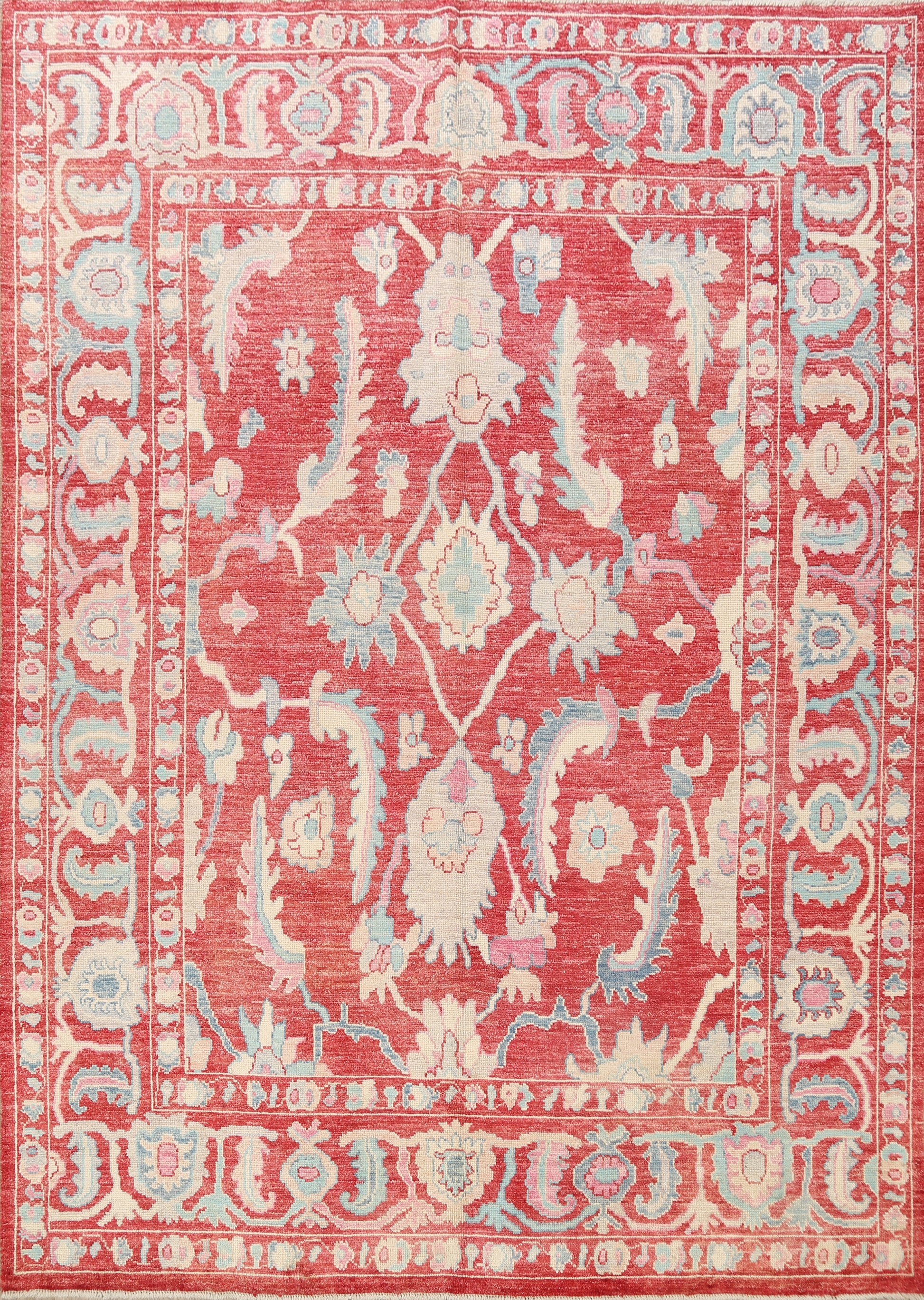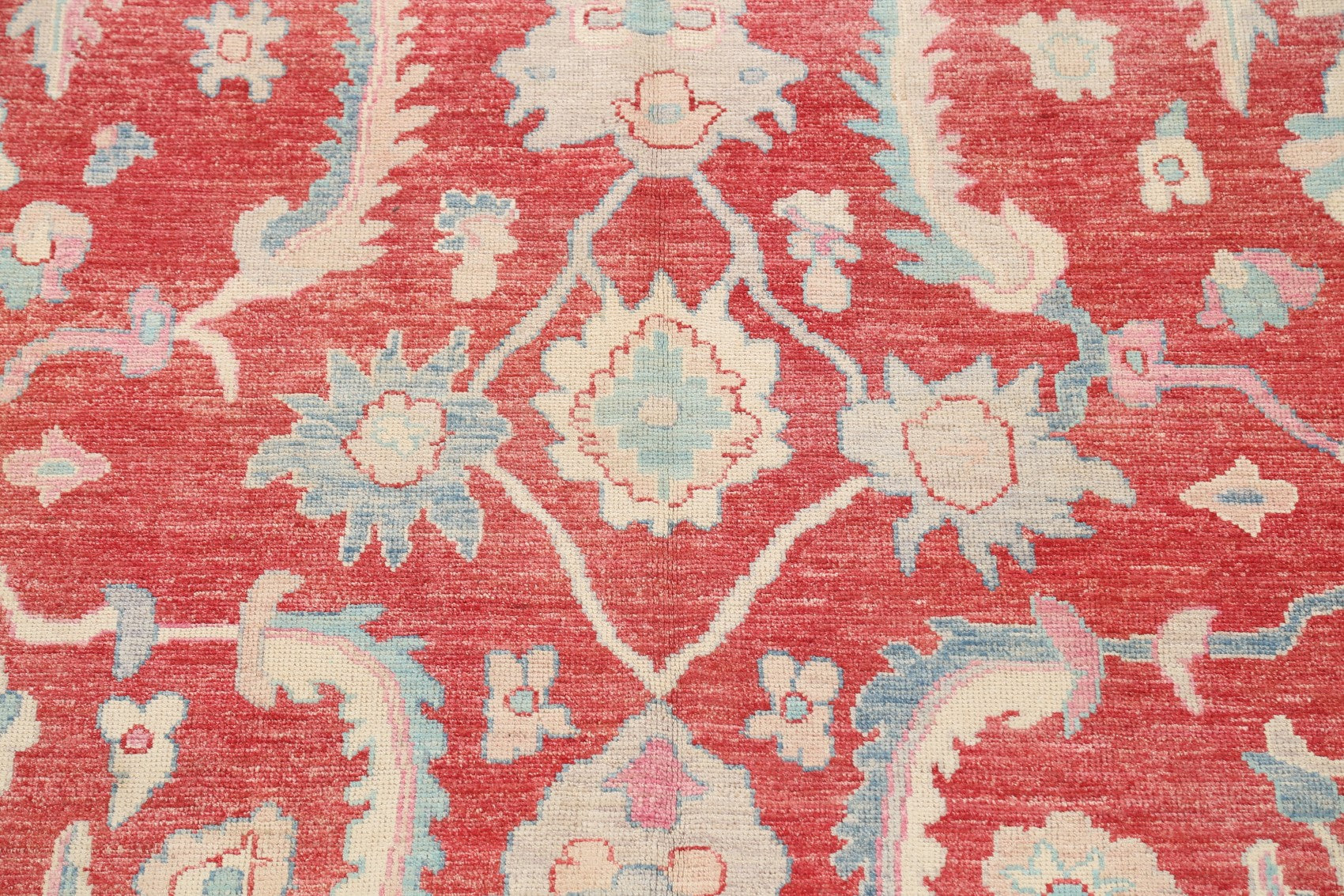 A Beautiful Genuine Turkey Oushak rug is Hand Knotted by skillful weavers in Turkey with 100% Wool Material. This rug is in New, First Quality condition. dimensions are 9' 6'' X 8' 3'' in foot and 290 X 251 in centimeter. the primary color is Red.