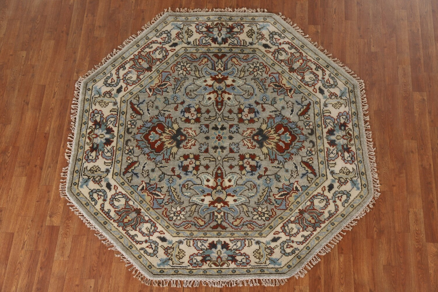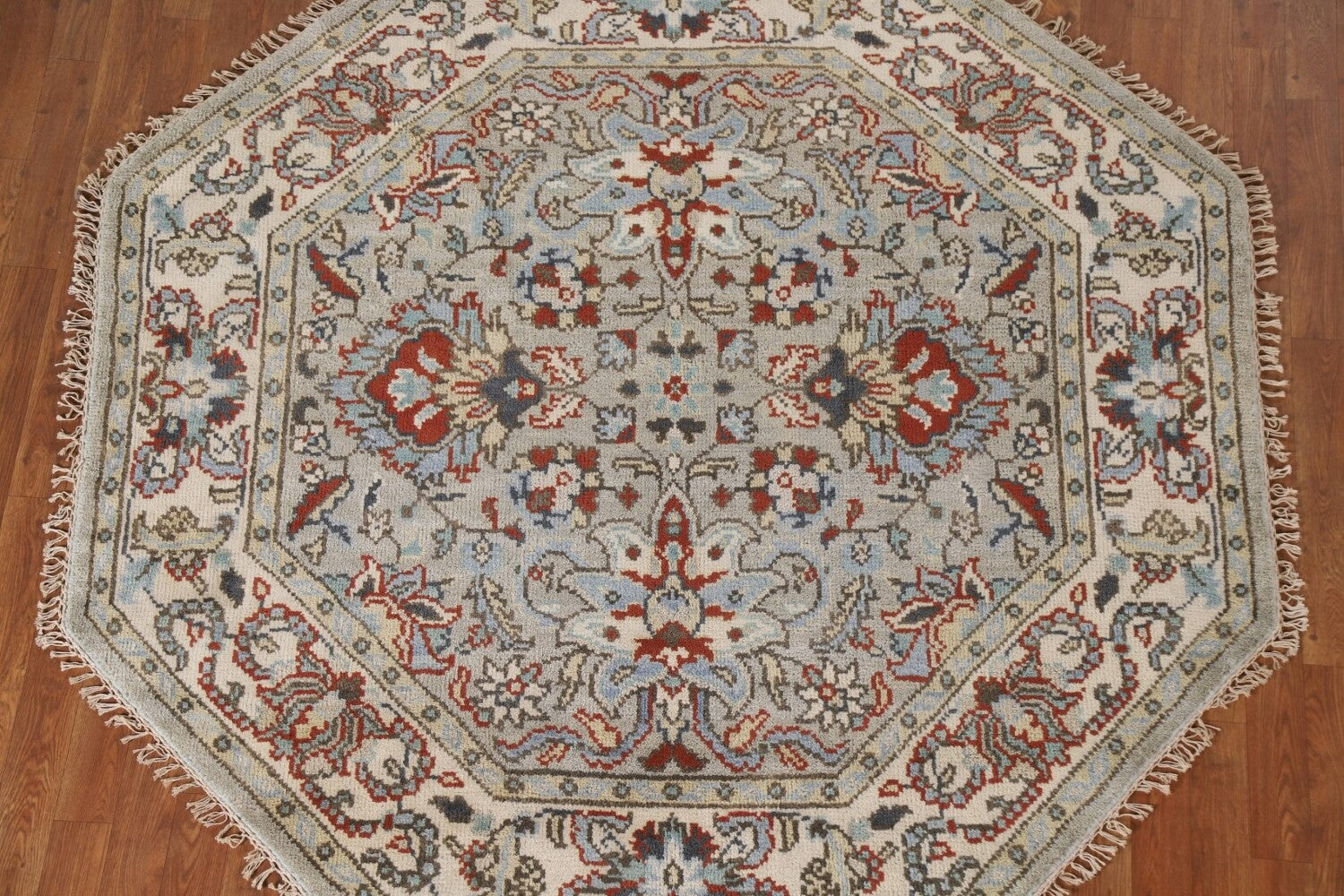 Floral Heriz Serapi Indian Octagon Rug 6x6