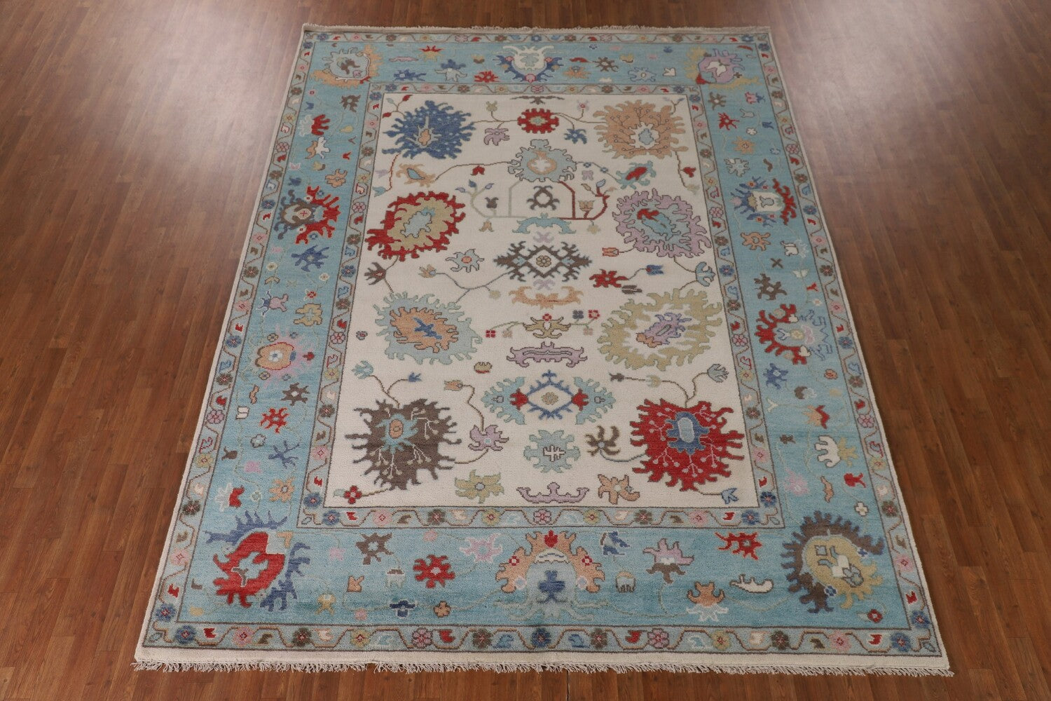 Floral Ivory & Blue Oushak Oriental Area Rug 9x12