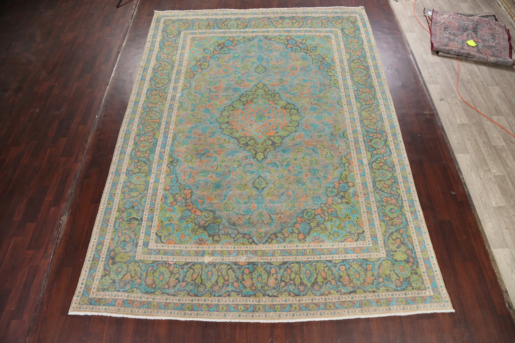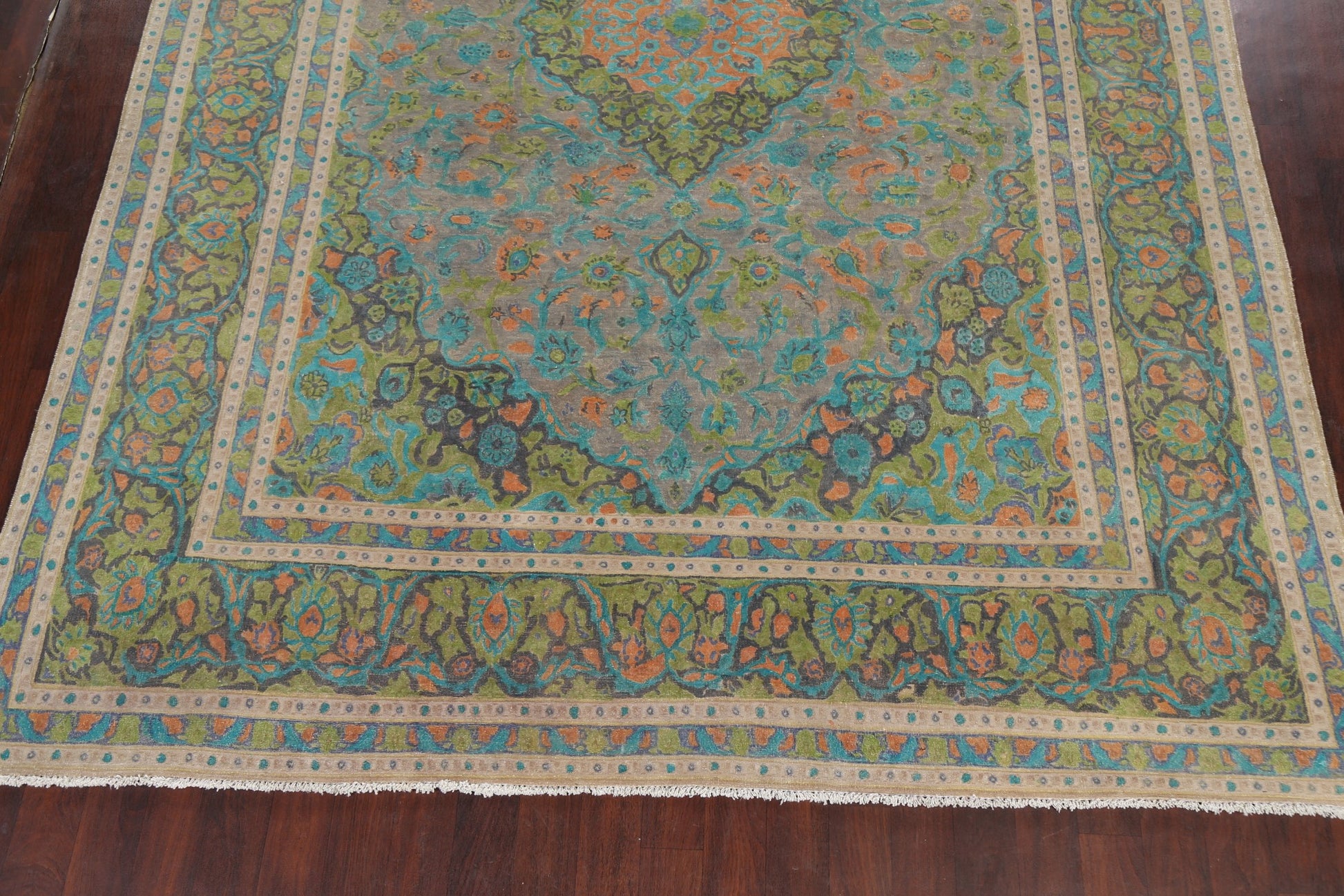 A Beautiful Genuine Persia ( Persia ) Kashan rug is Hand Knotted by skillful weavers in Persia ( Persia ) with 100% Wool Material. This rug is in Very Good (Evenly Low Pile-Repair) condition. dimensions are 13' 5'' X 9' 8'' in foot and 409 X 295 in centimeter. the primary color is Brown.