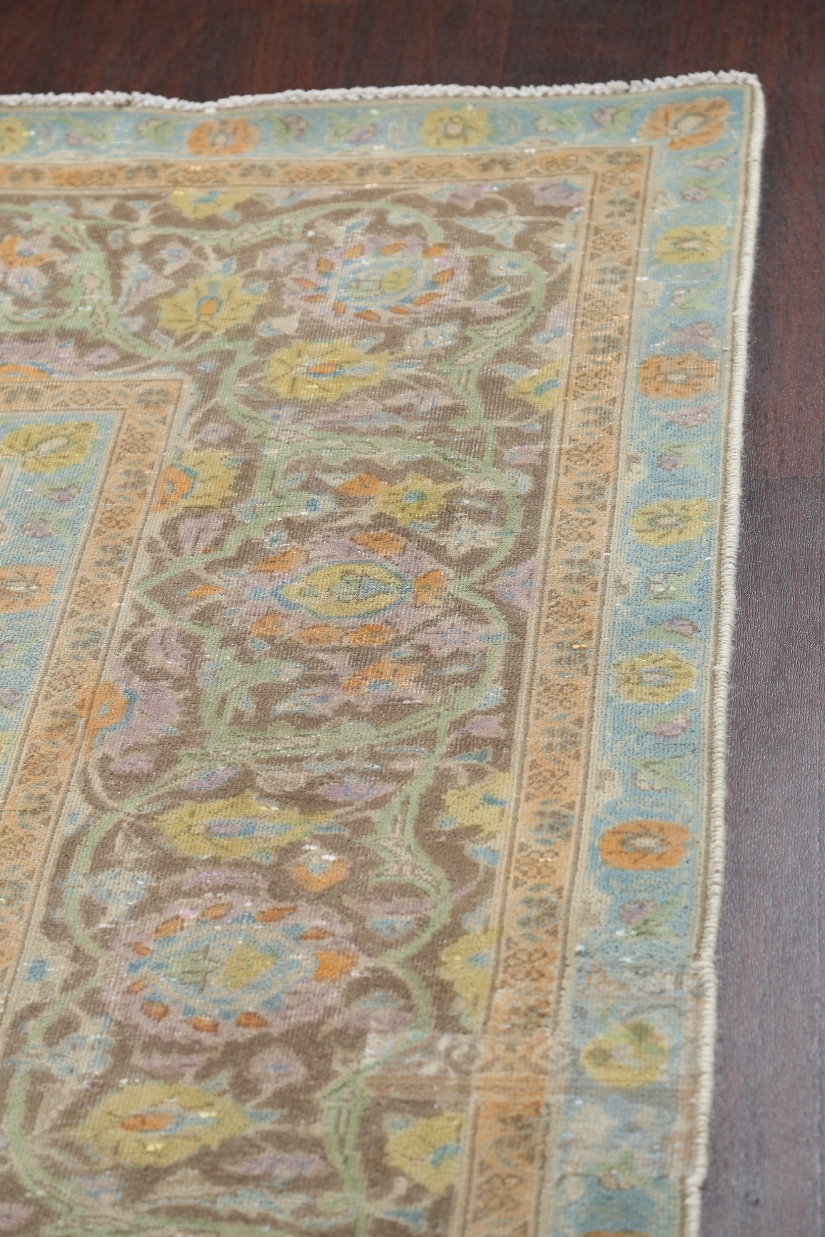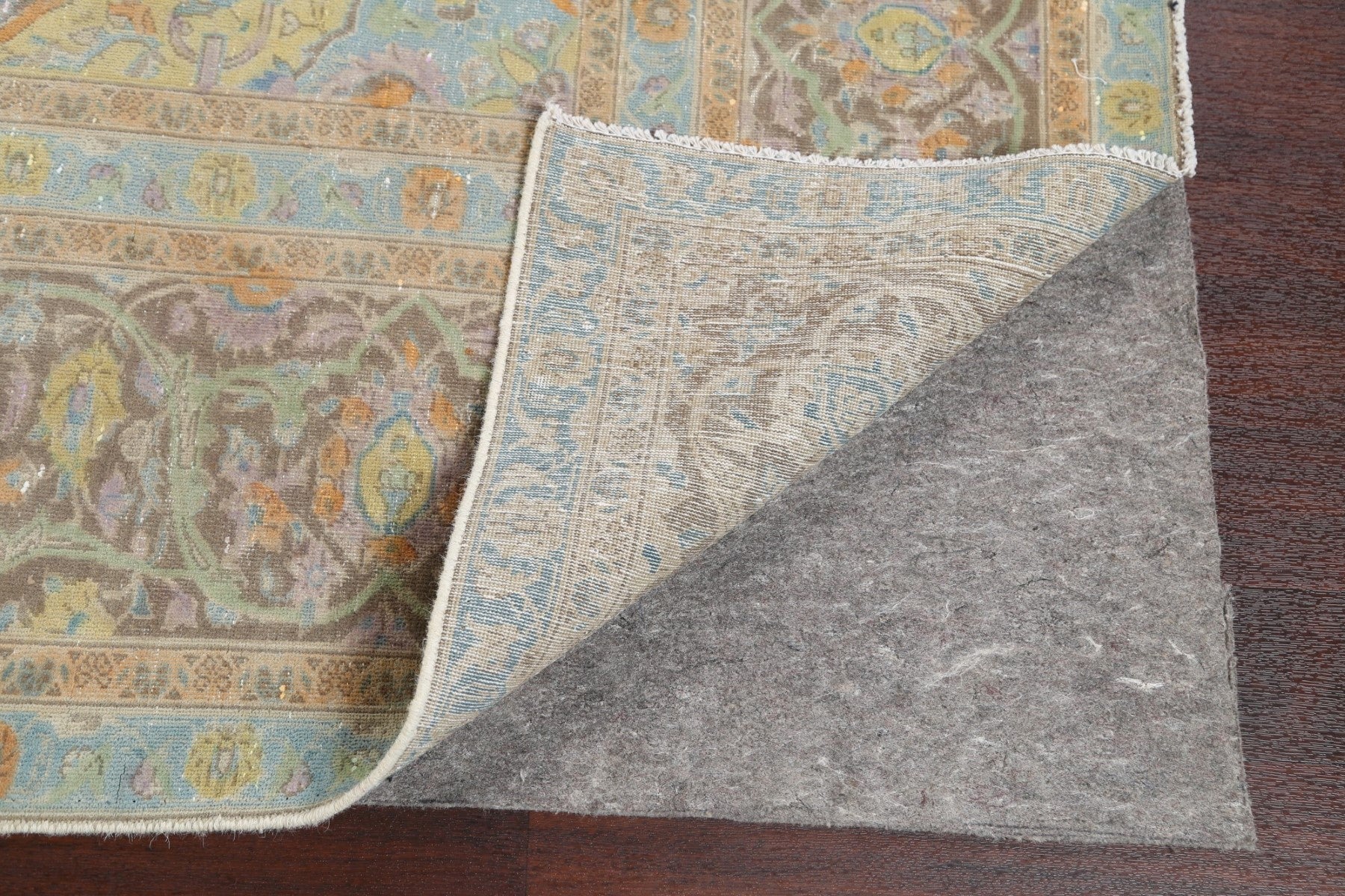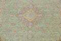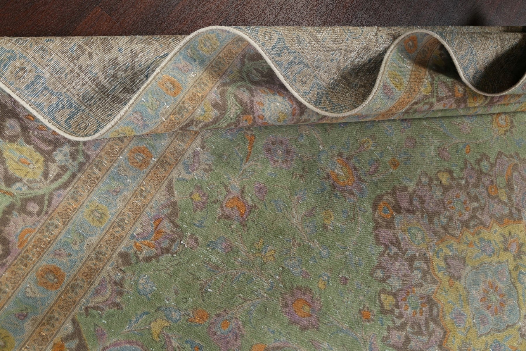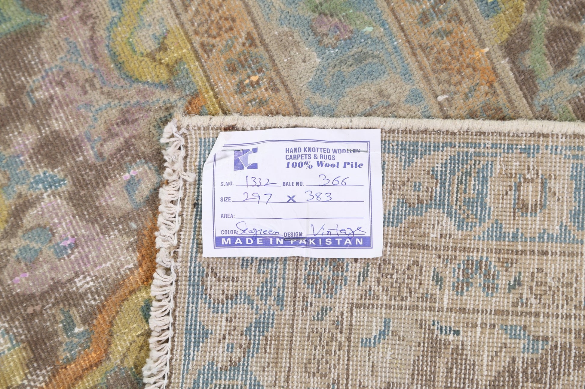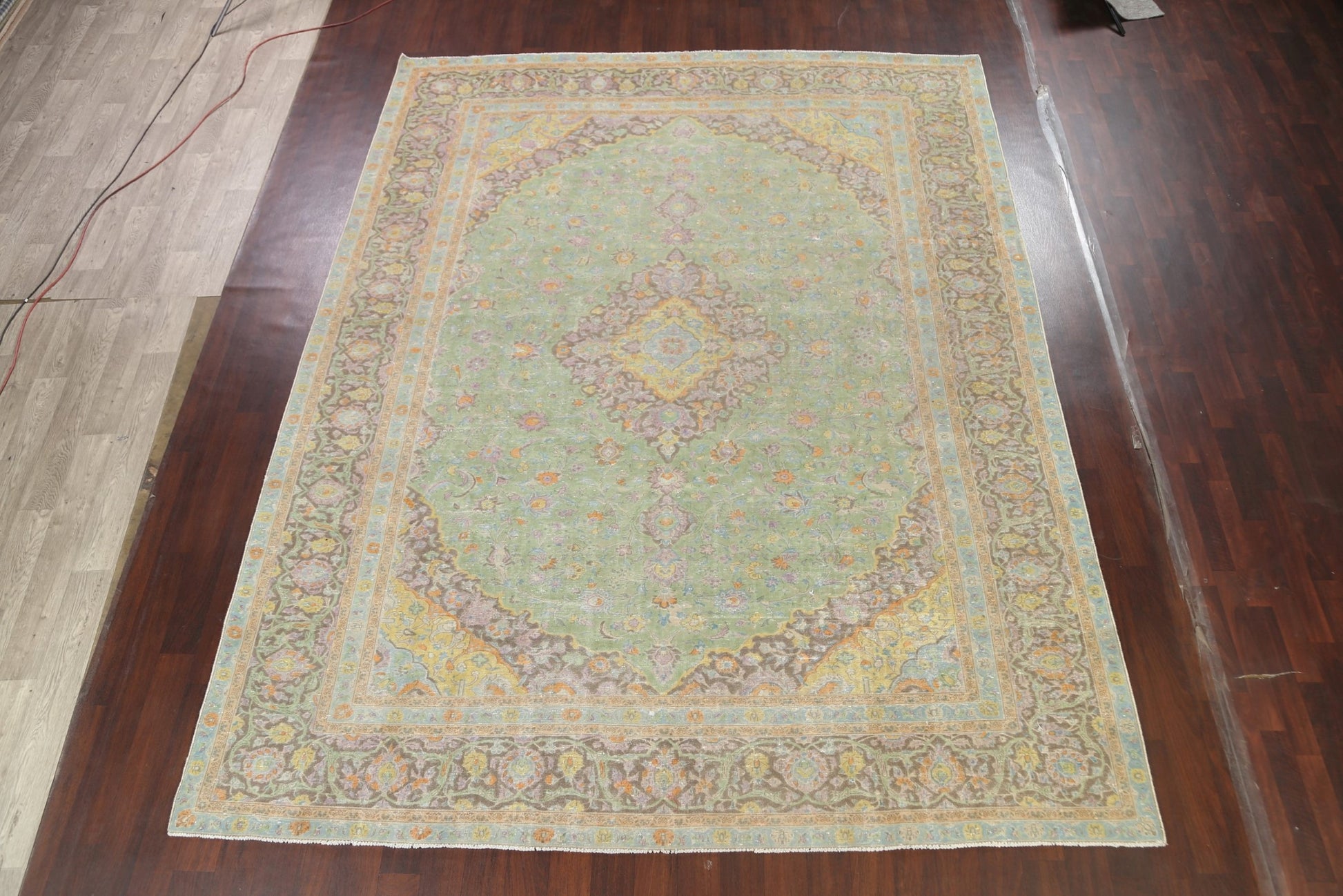 A Beautiful Genuine Persia ( Persia ) Kashan rug is Hand Knotted by skillful weavers in Persia ( Persia ) with 100% Wool Material. This rug is in Very Good (Evenly Low Pile-Repair) condition. dimensions are 12' 8'' X 9' 9'' in foot and 386 X 297 in centimeter. the primary color is Green.