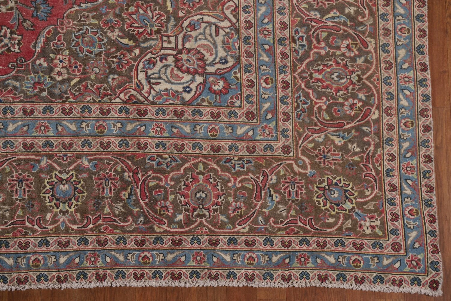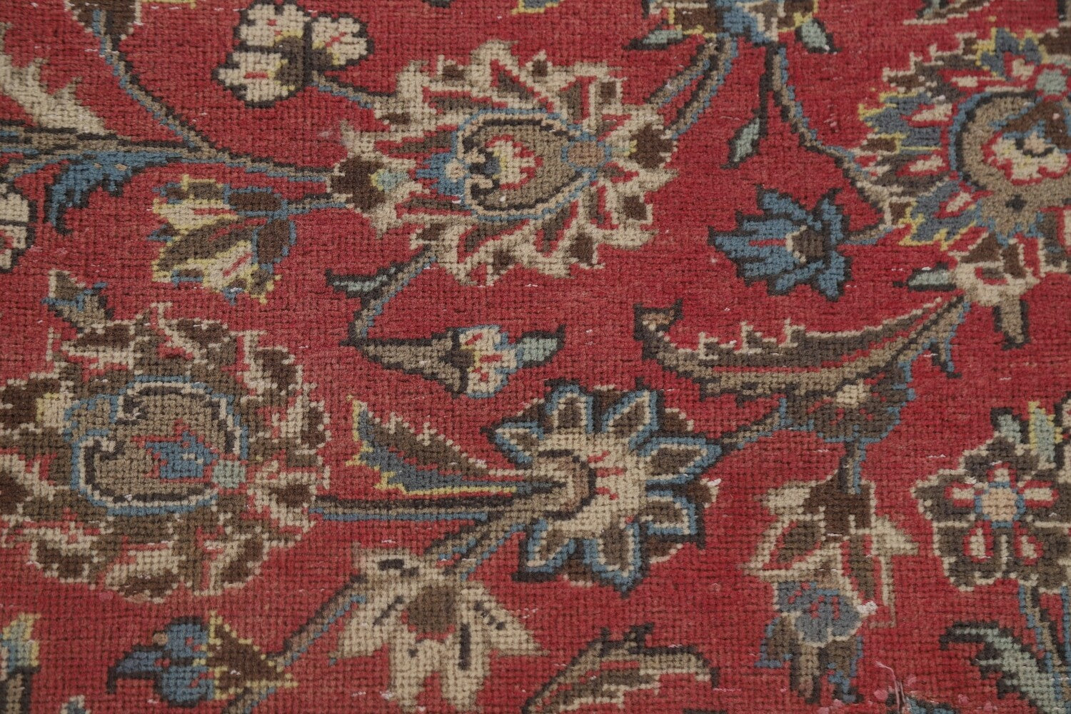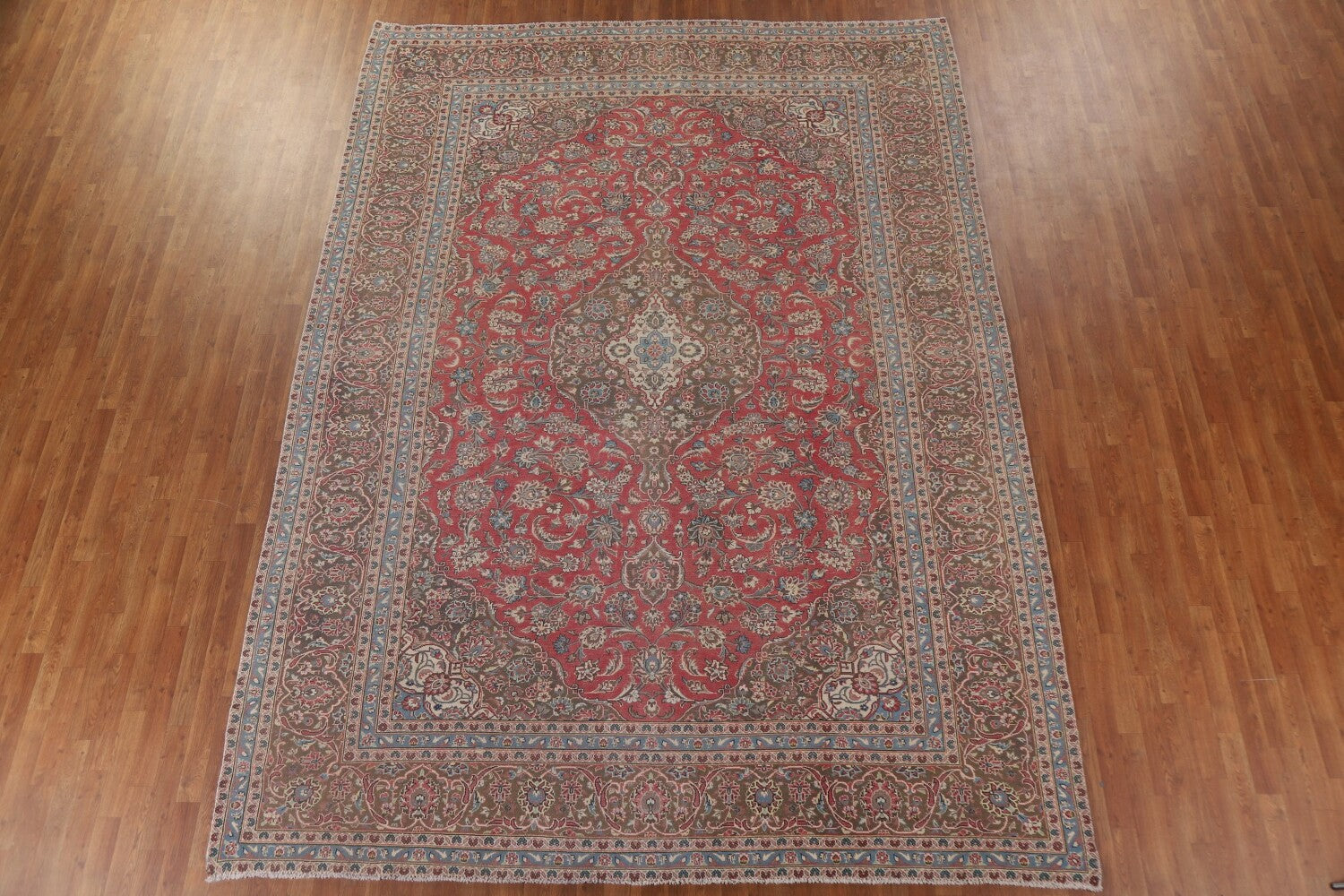 A Beautiful Genuine Persia ( Persia ) Kashan rug is Hand Knotted by skillful weavers in Persia ( Persia ) with 100% Wool Material. This rug is in Very Good (Evenly Low Pile) condition. dimensions are 12' 11'' X 9' 6'' in foot and 394 X 290 in centimeter. the primary color is Red.