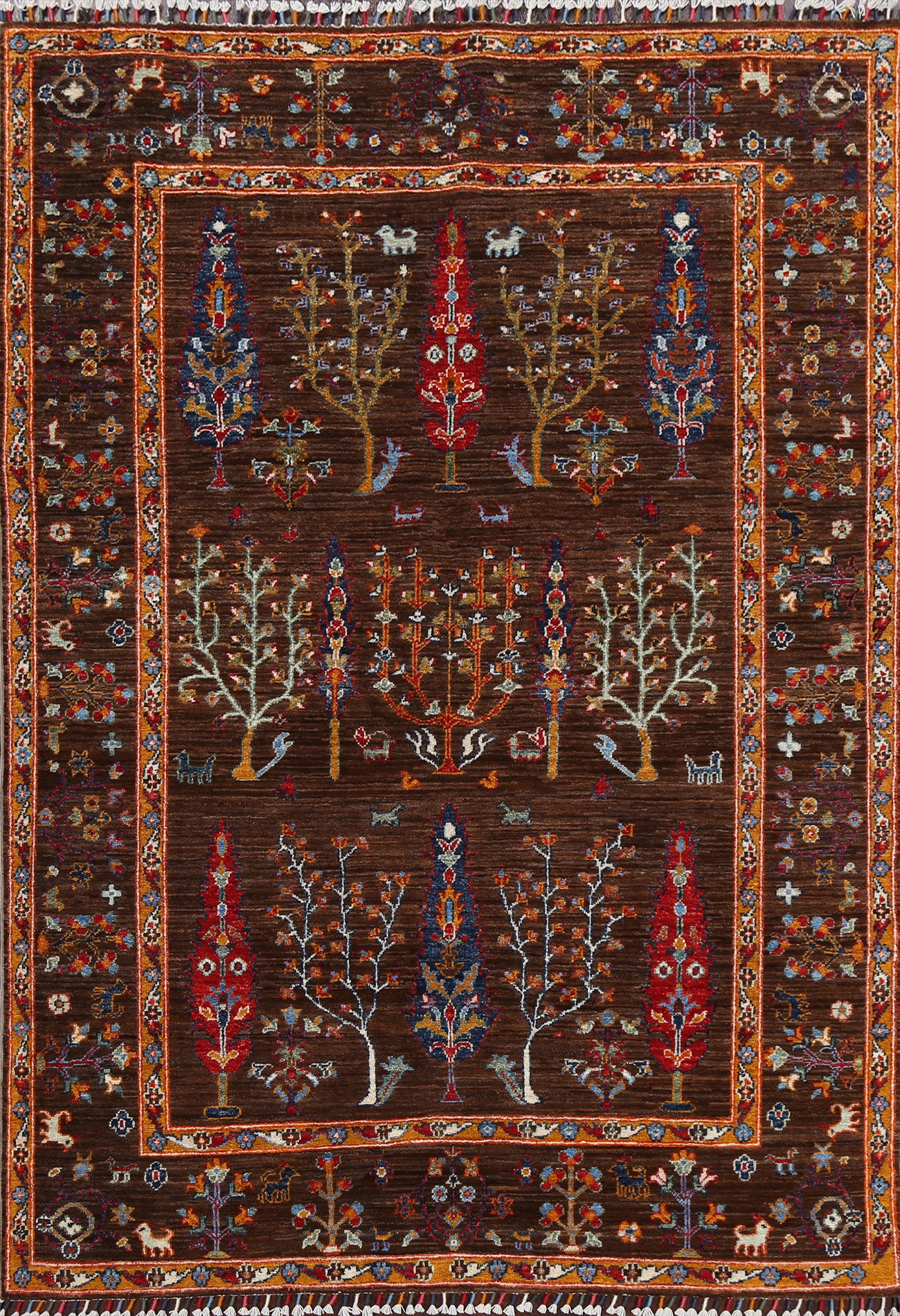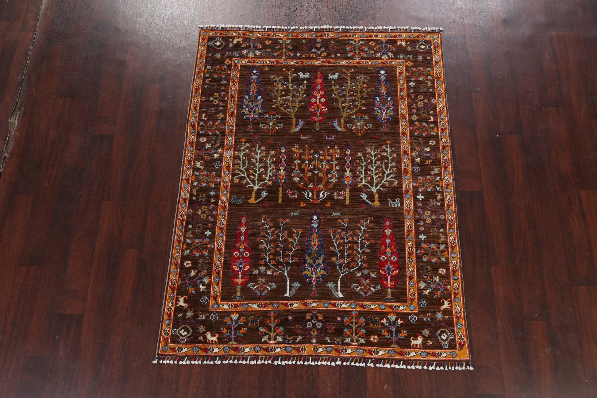 A Beautiful Genuine Pakistan Kazak rug is Hand Knotted by skillful weavers in Pakistan with 100% Wool Material. This rug is in New, First Quality condition. dimensions are 6' 2'' X 4' 9'' in foot and 188 X 145 in centimeter. the primary color is Brown.