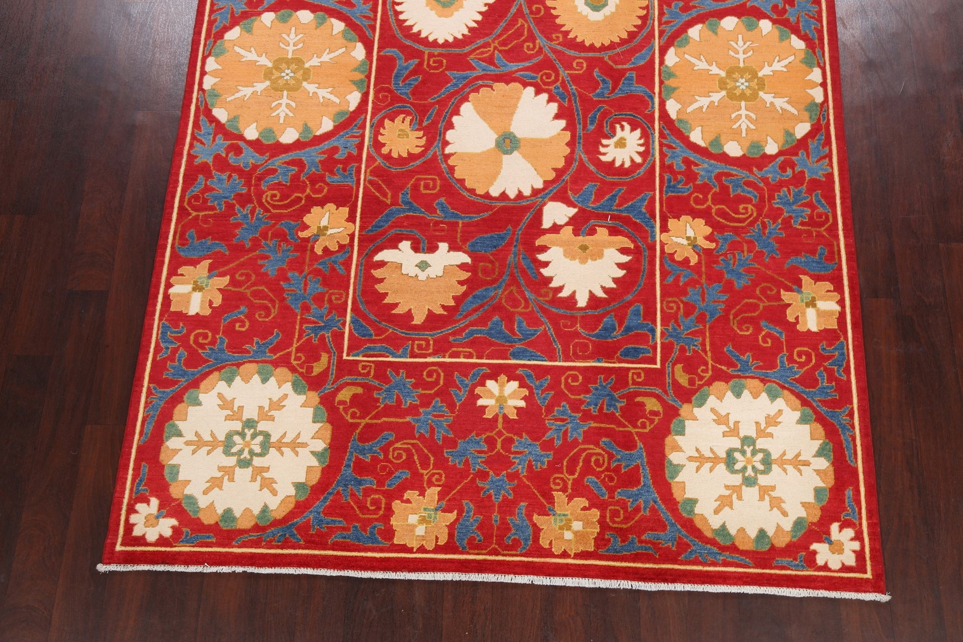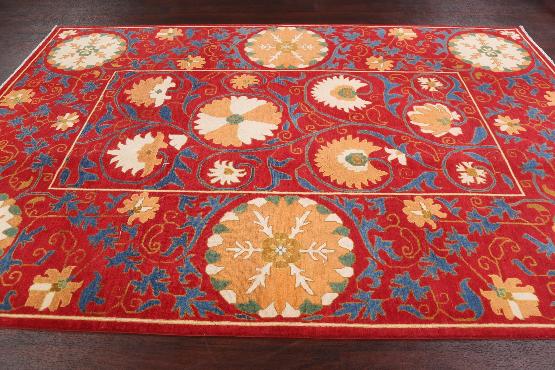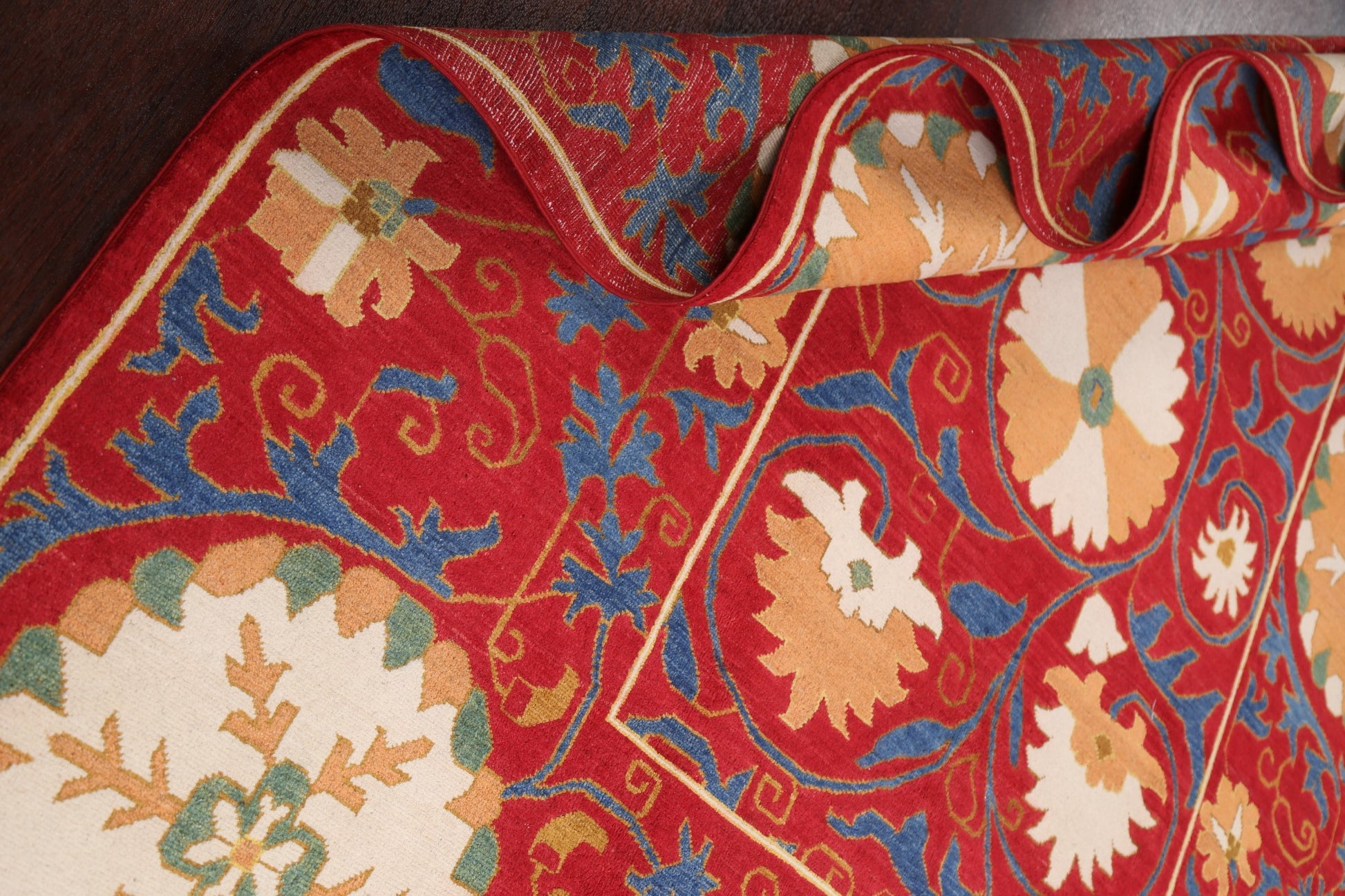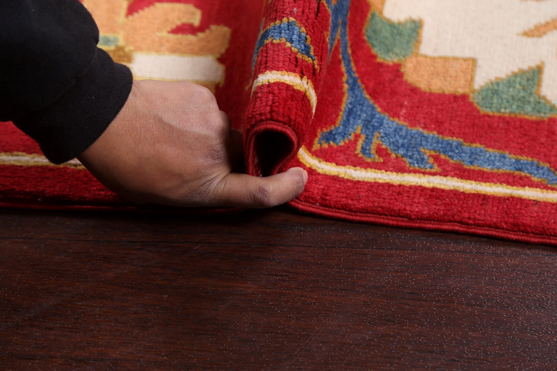 A Beautiful Genuine Pakistan Kazak rug is Hand Knotted by skillful weavers in Pakistan with 100% Wool Material. This rug is in New, First Quality condition. dimensions are 9' 9'' X 6' 7'' in foot and 297 X 201 in centimeter. the primary color is Red.