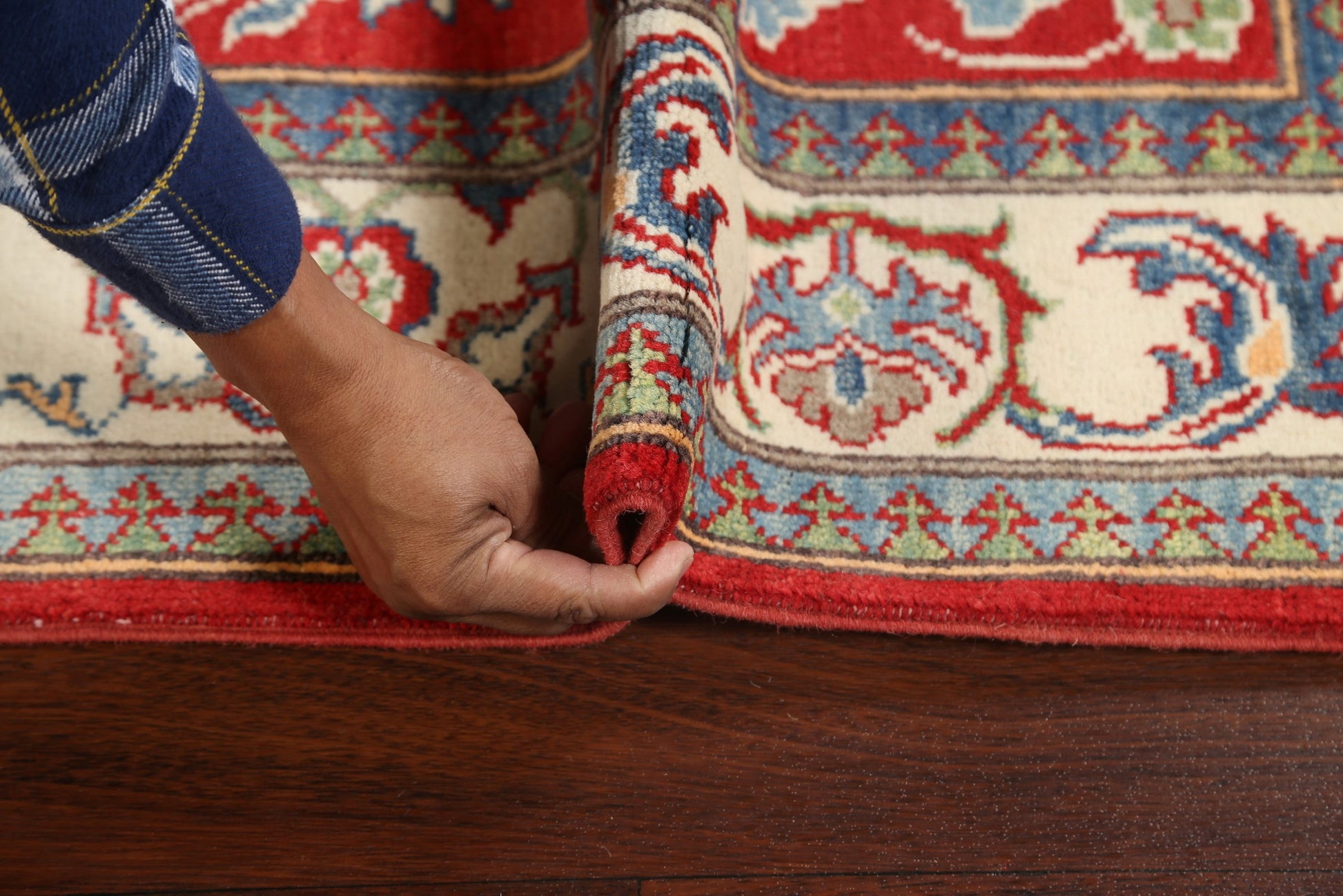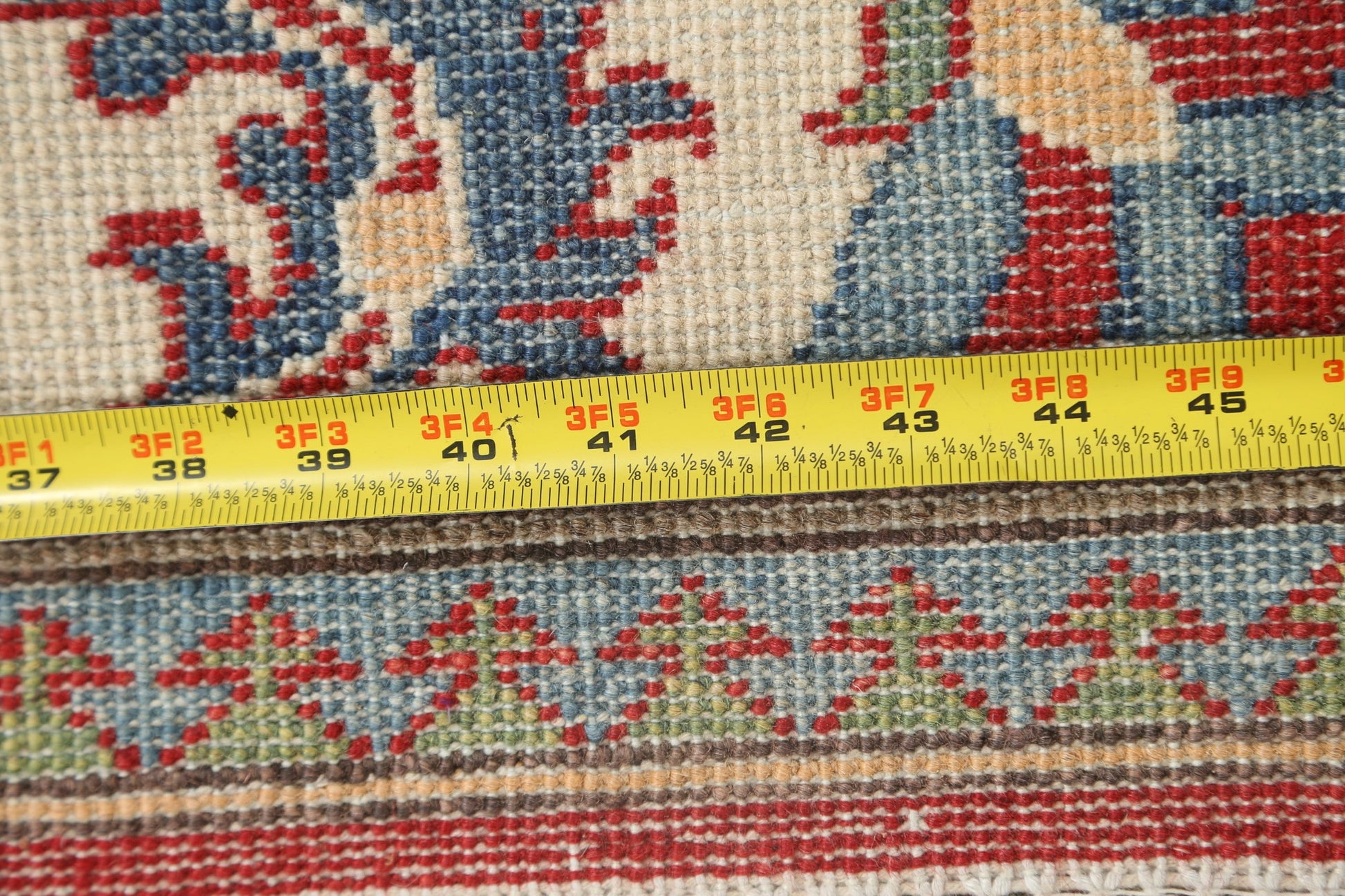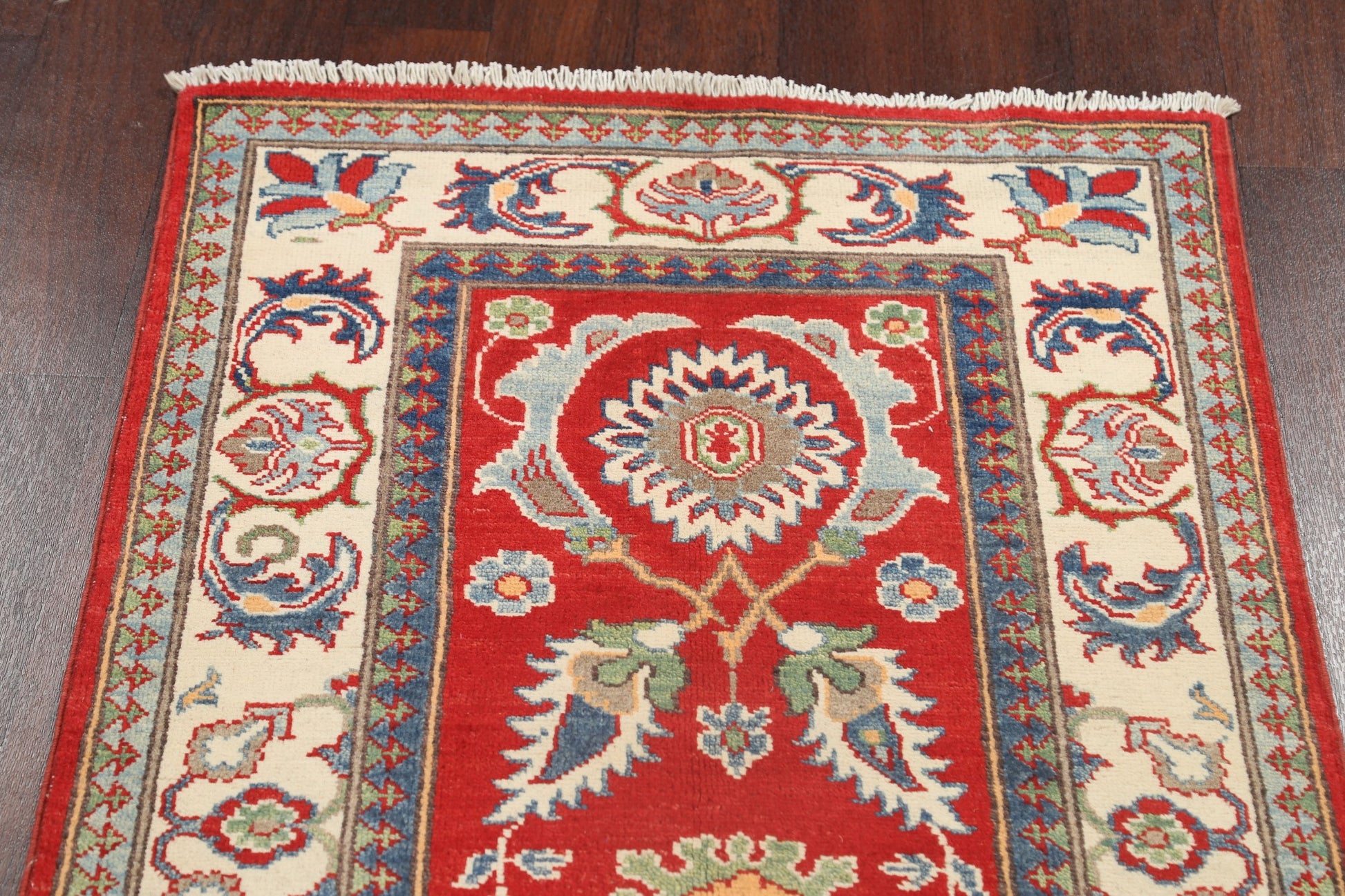 A Beautiful Genuine Pakistan Kazak rug is Hand Knotted by skillful weavers in Pakistan with 100% Wool Material. This rug is in New, First Quality condition. dimensions are 9' 1'' X 2' 8'' in foot and 277 X 81 in centimeter. the primary color is Red.