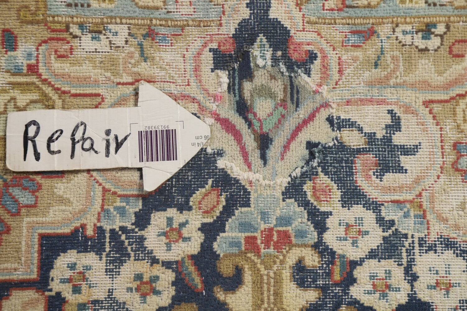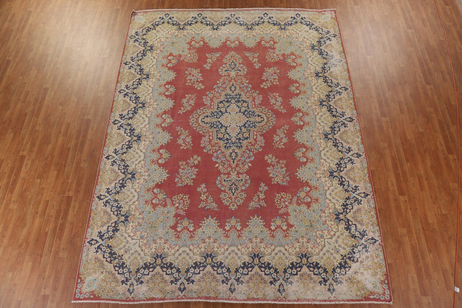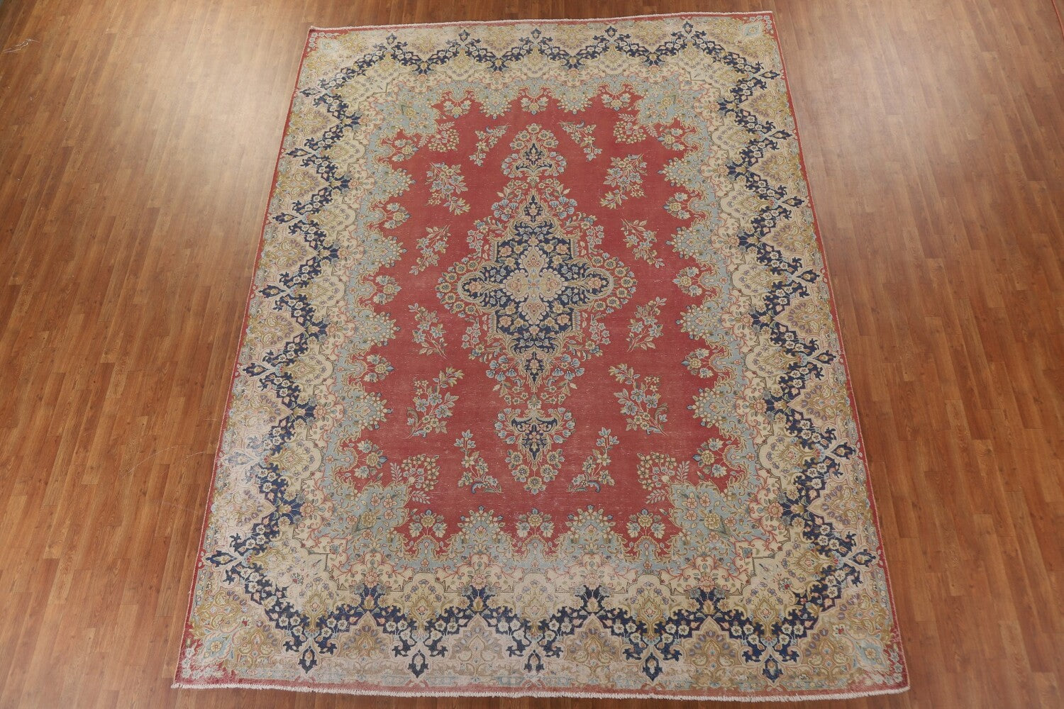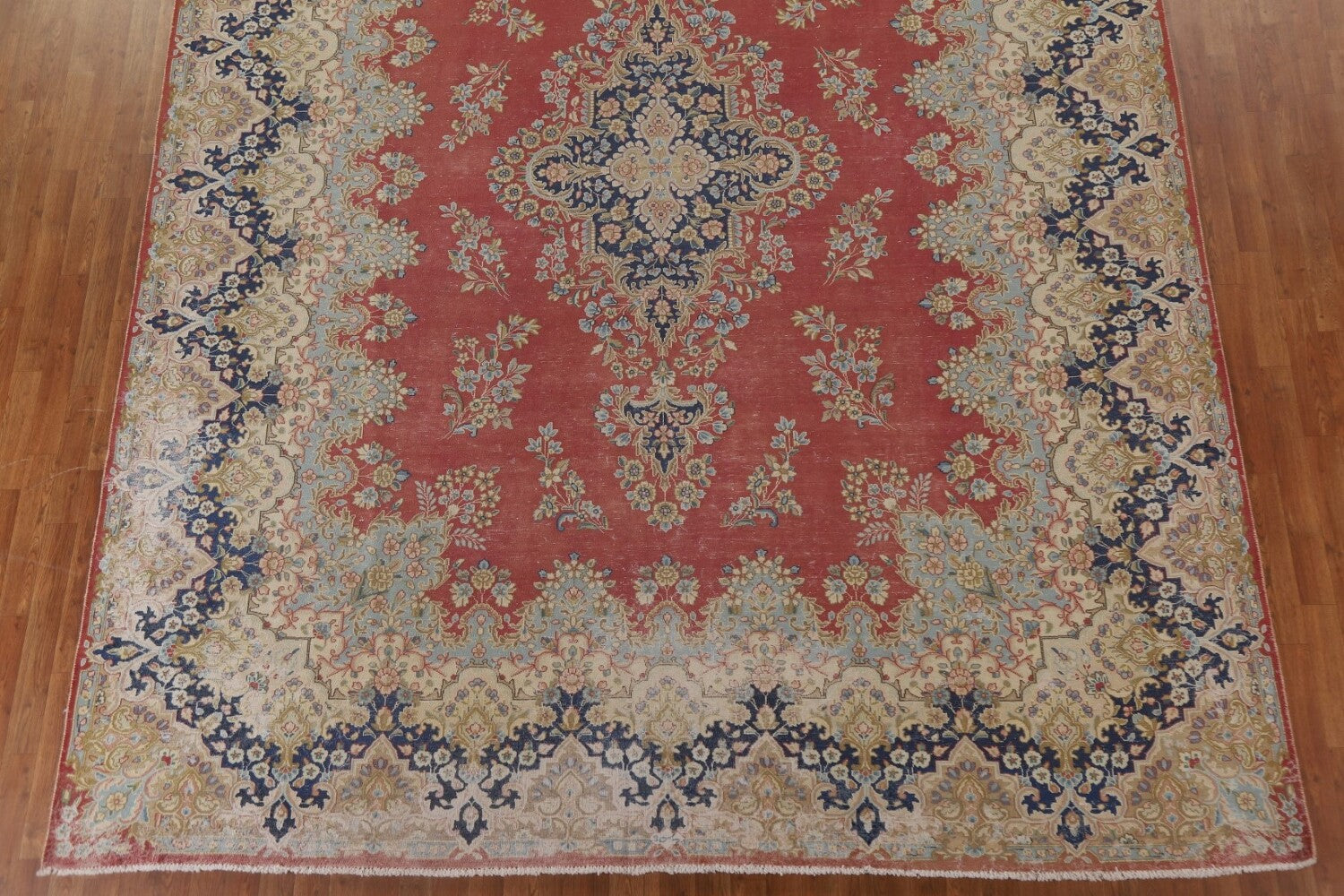 A Beautiful Genuine Persia ( Persia ) Kerman rug is Hand Knotted by skillful weavers in Persia ( Persia ) with 100% Wool Material. This rug is in Very Good (Low Pile-Repair) condition. dimensions are 13' 1'' X 9' 11'' in foot and 399 X 302 in centimeter. the primary color is Red.