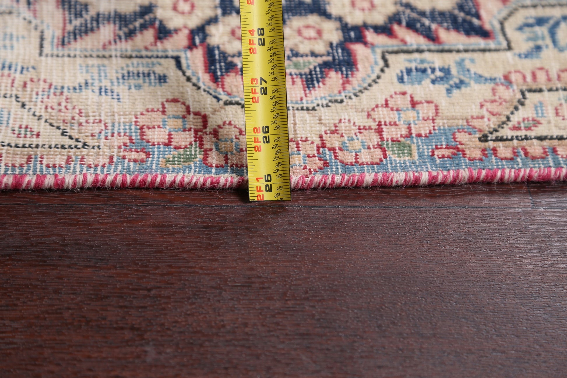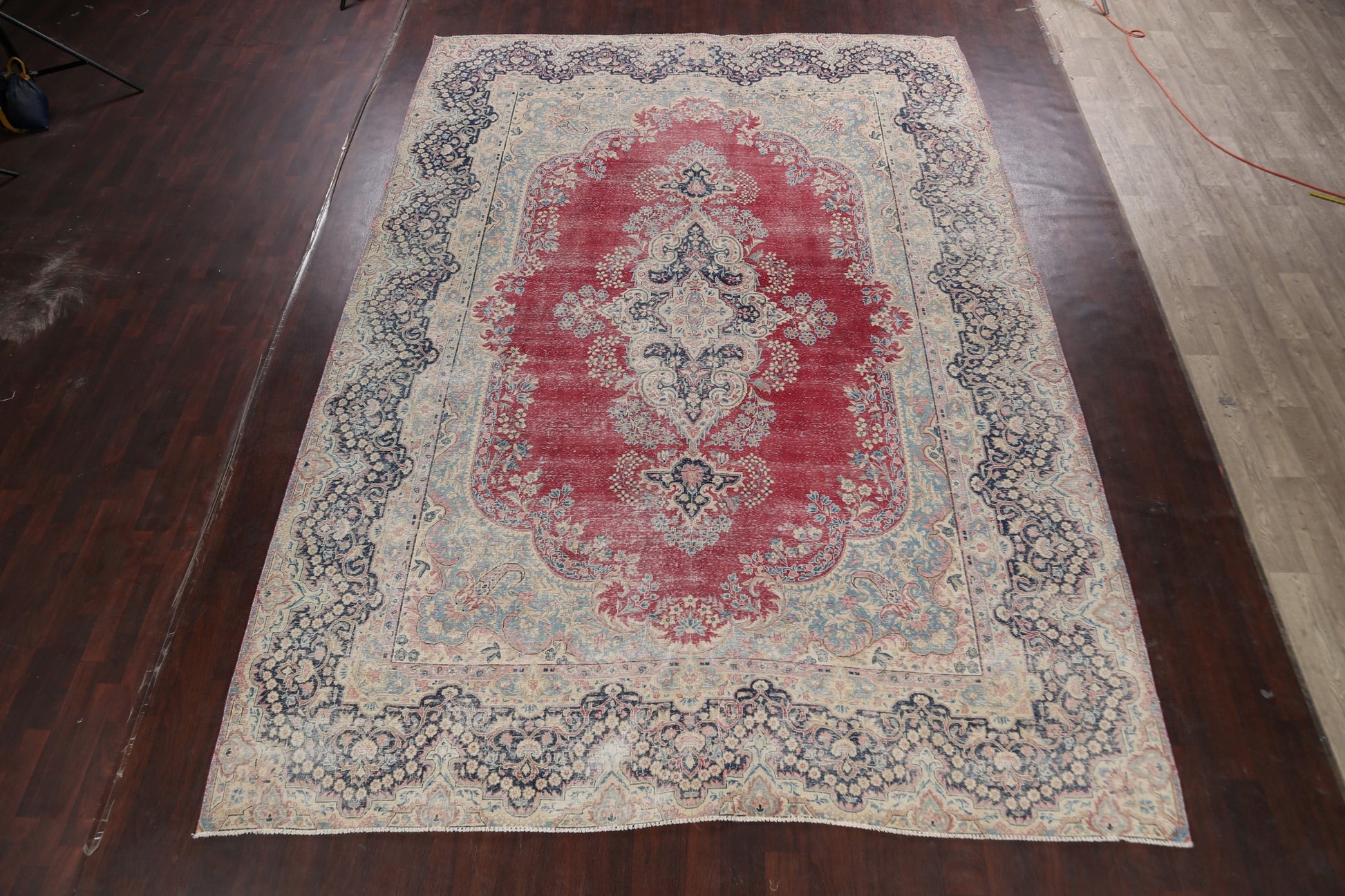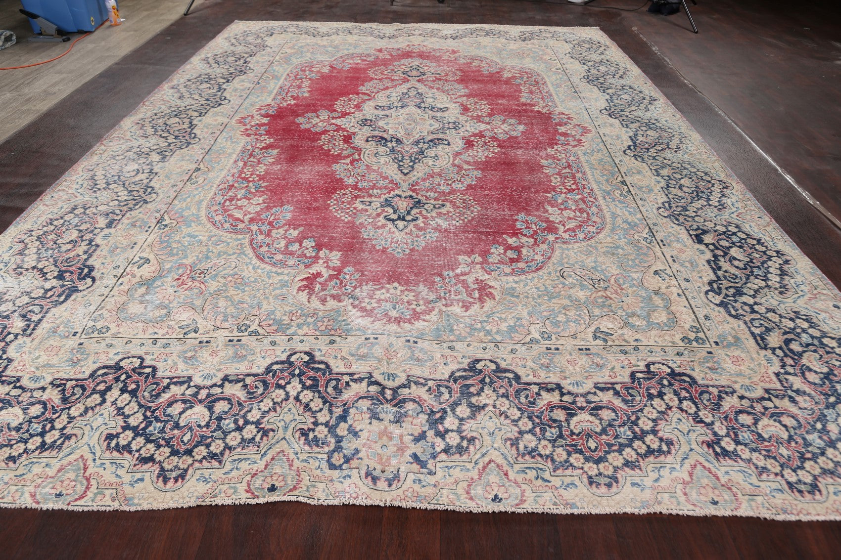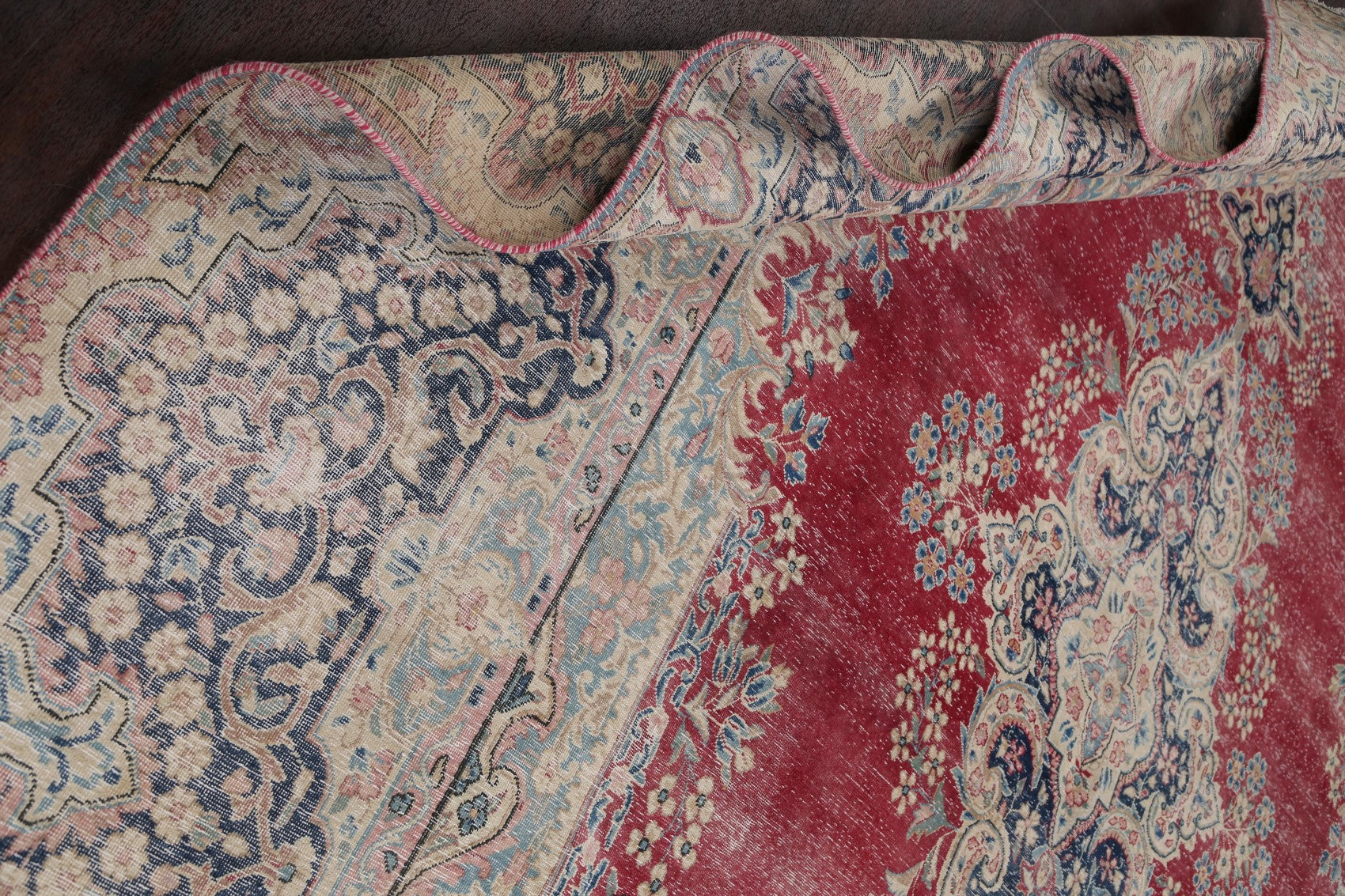 A Beautiful Genuine Persia ( Persia ) Kerman rug is Hand Knotted by skillful weavers in Persia ( Persia ) with 100% Wool Material. This rug is in Very Good (Evenly Low Pile) condition. dimensions are 13' 7'' X 9' 8'' in foot and 414 X 295 in centimeter. the primary color is Red.