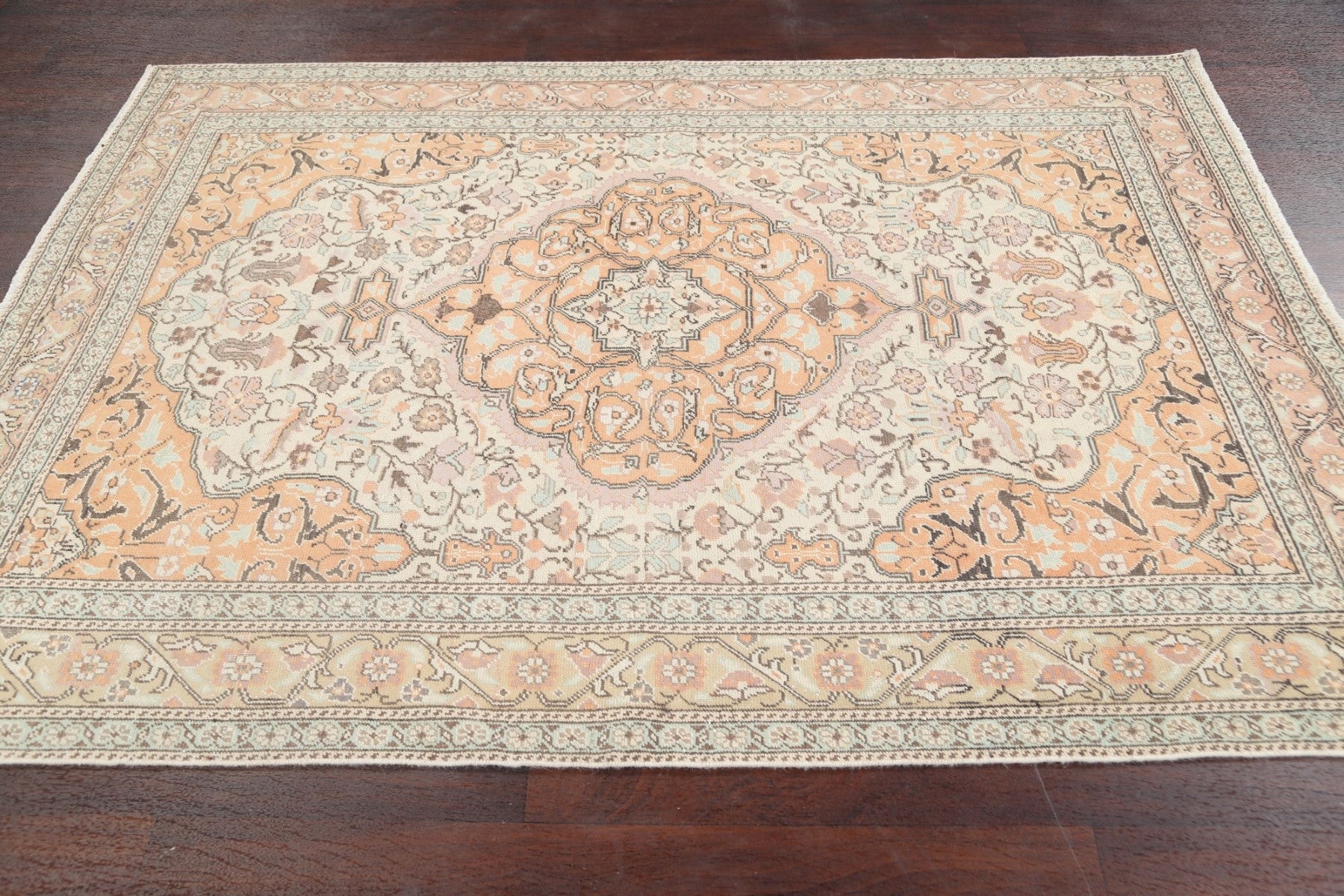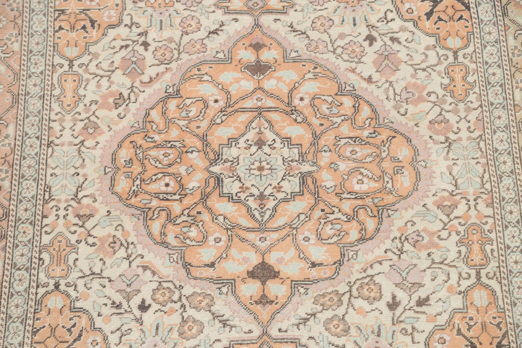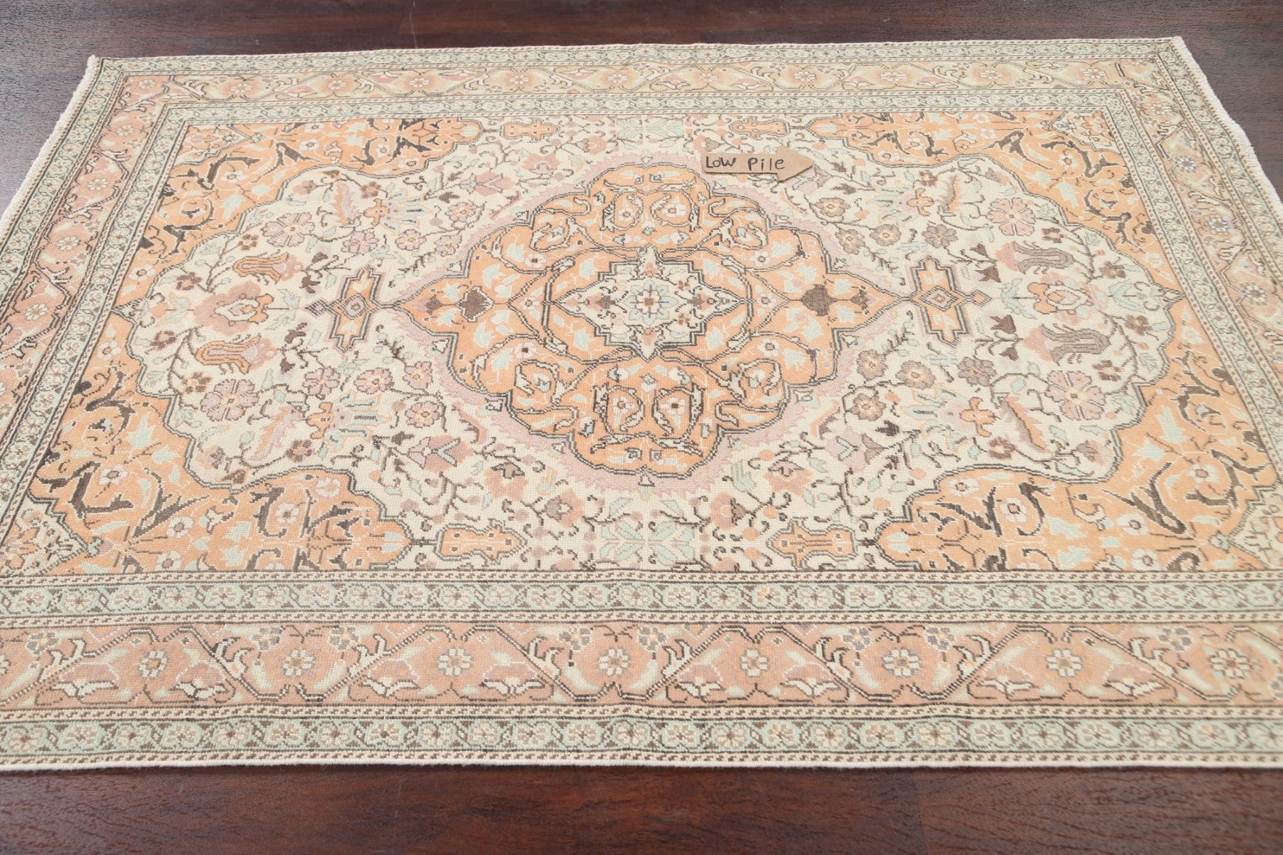 A Beautiful Genuine Persia ( Persia ) Kerman rug is Hand Knotted by skillful weavers in Persia ( Persia ) with 100% Wool Material. This rug is in Very Good ( Low Pile ) condition. dimensions are 6' 8'' X 4' 9'' in foot and 203 X 145 in centimeter. the primary color is Beige & Ivories.