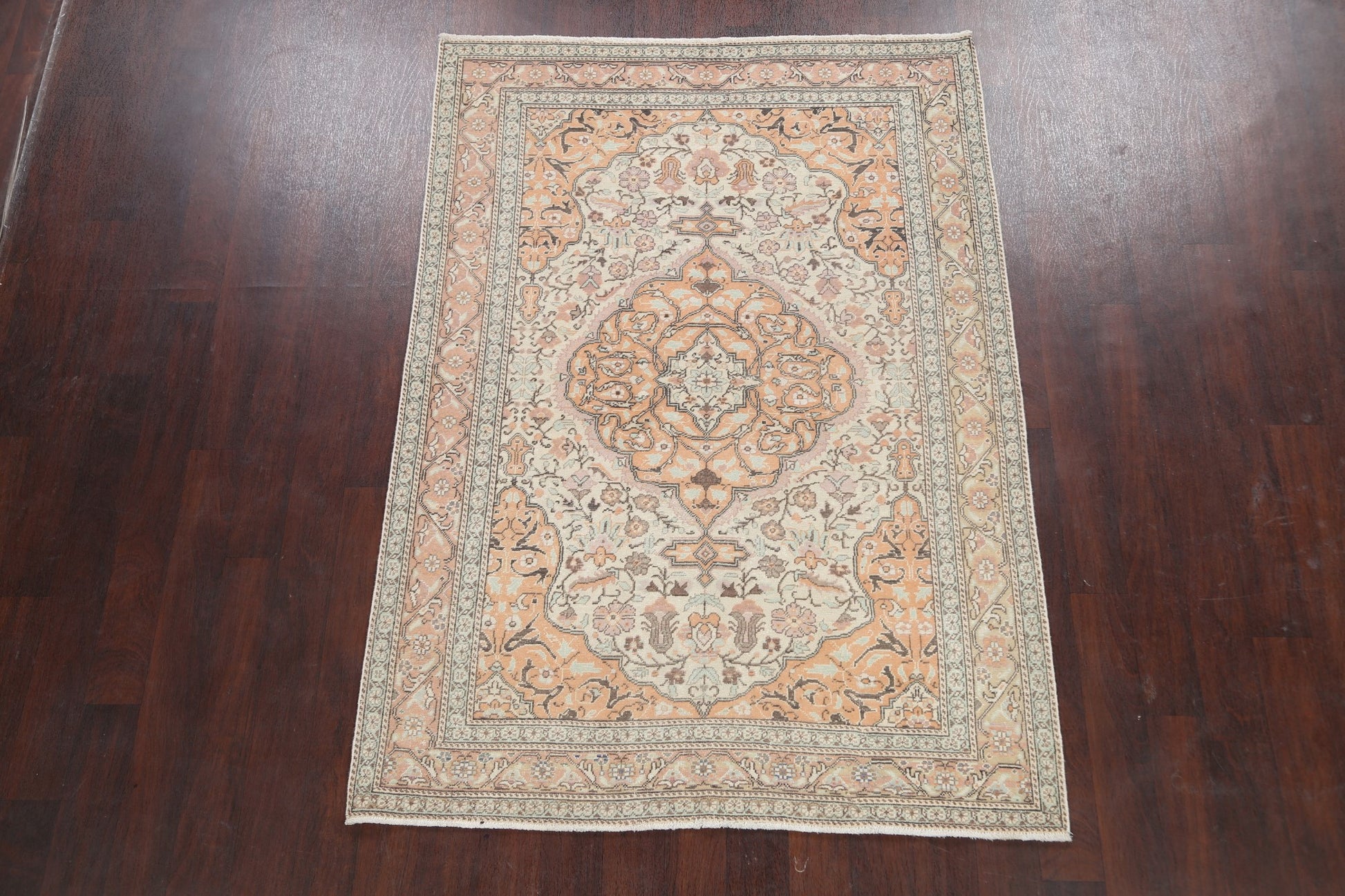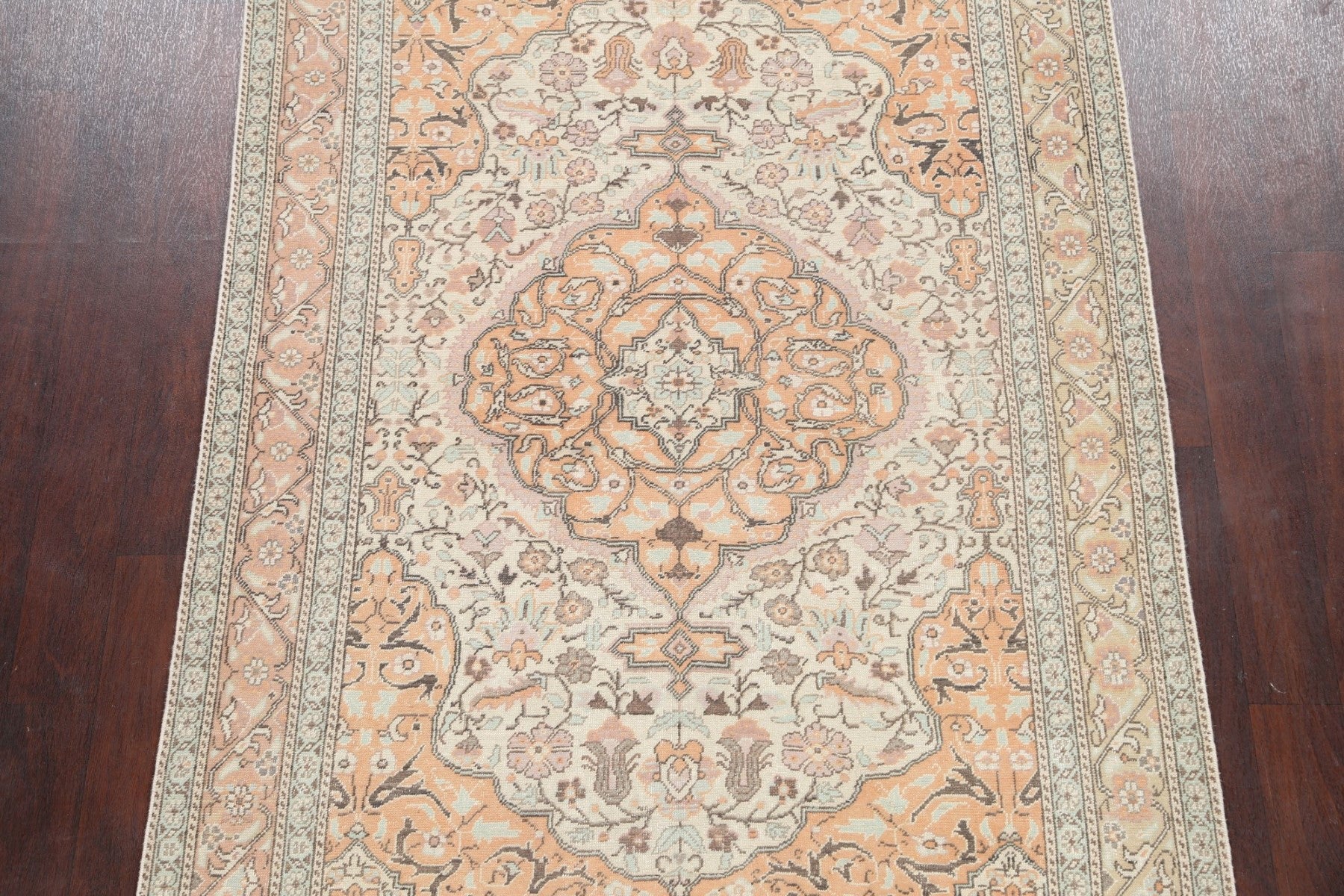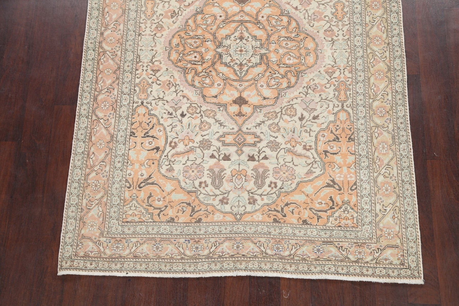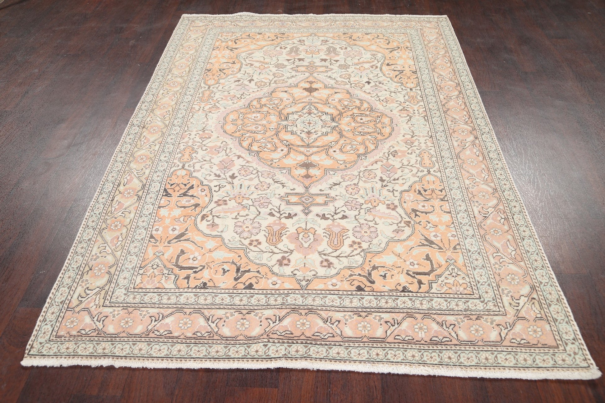 A Beautiful Genuine Persia ( Persia ) Kerman rug is Hand Knotted by skillful weavers in Persia ( Persia ) with 100% Wool Material. This rug is in Very Good ( Low Pile ) condition. dimensions are 6' 8'' X 4' 9'' in foot and 203 X 145 in centimeter. the primary color is Beige & Ivories.