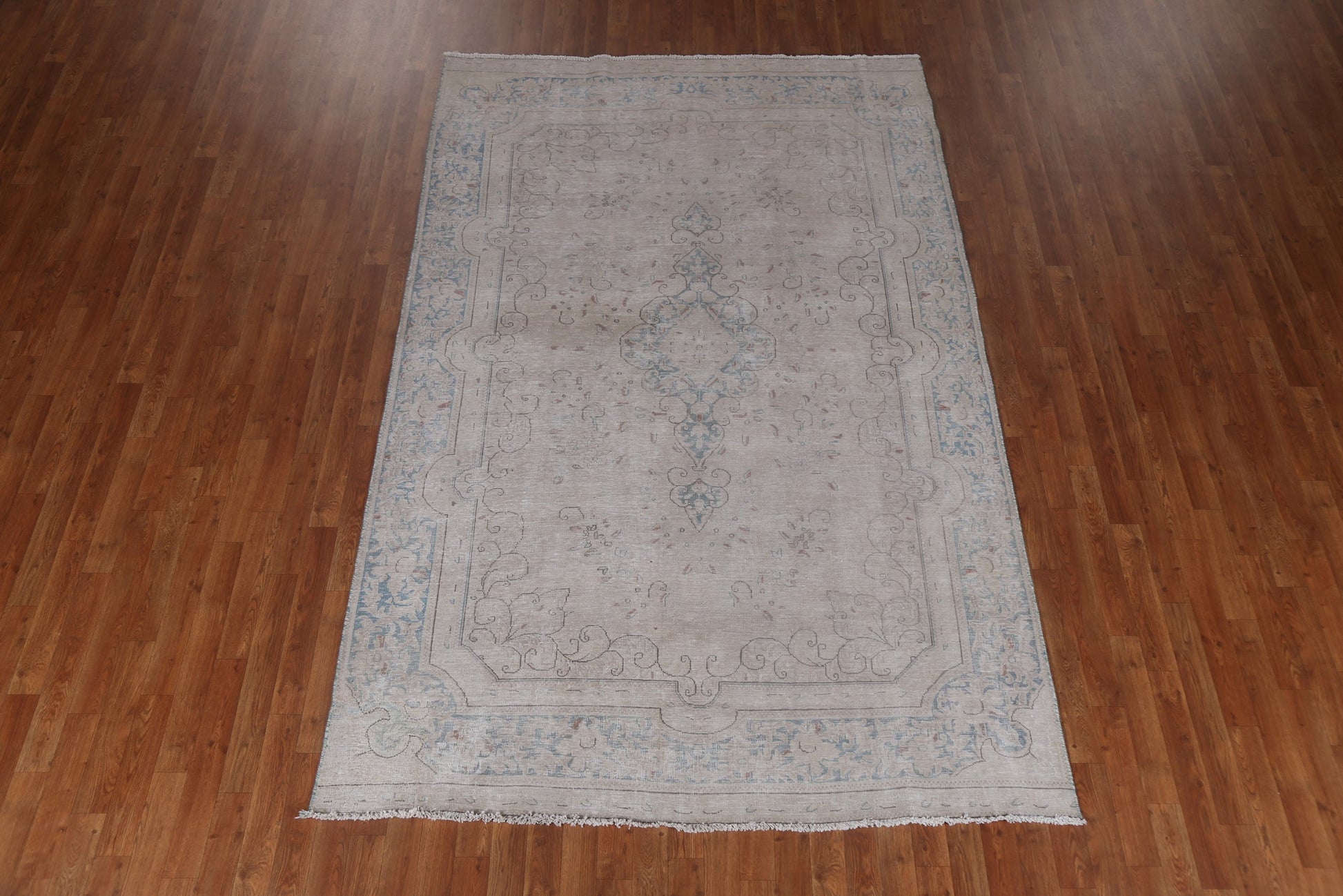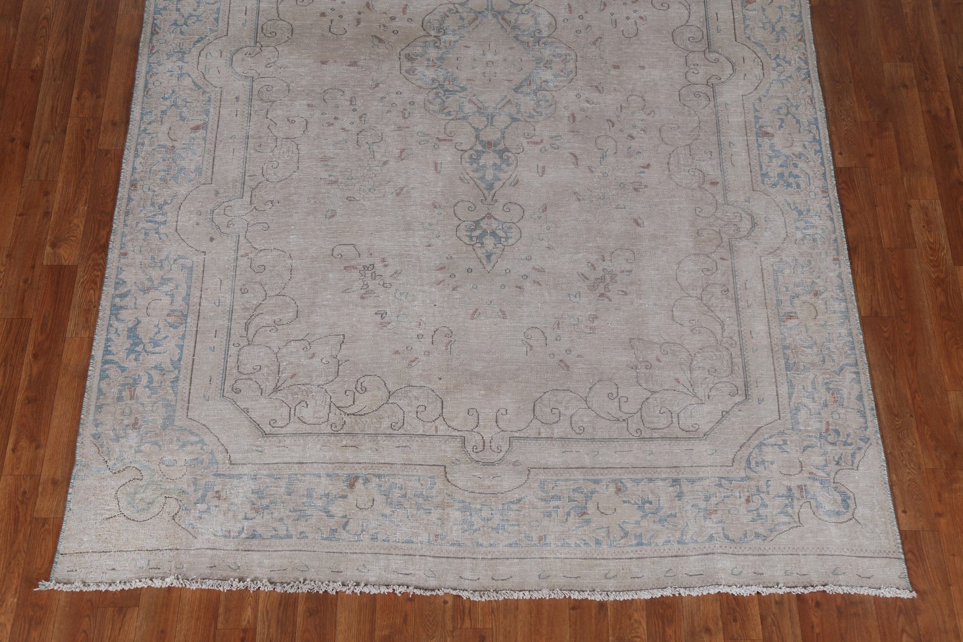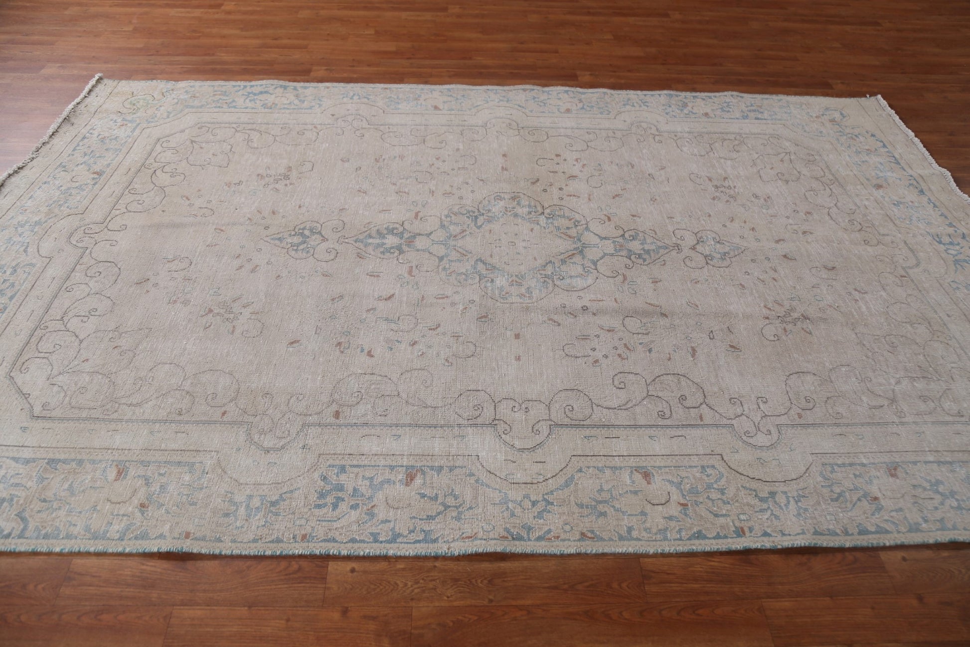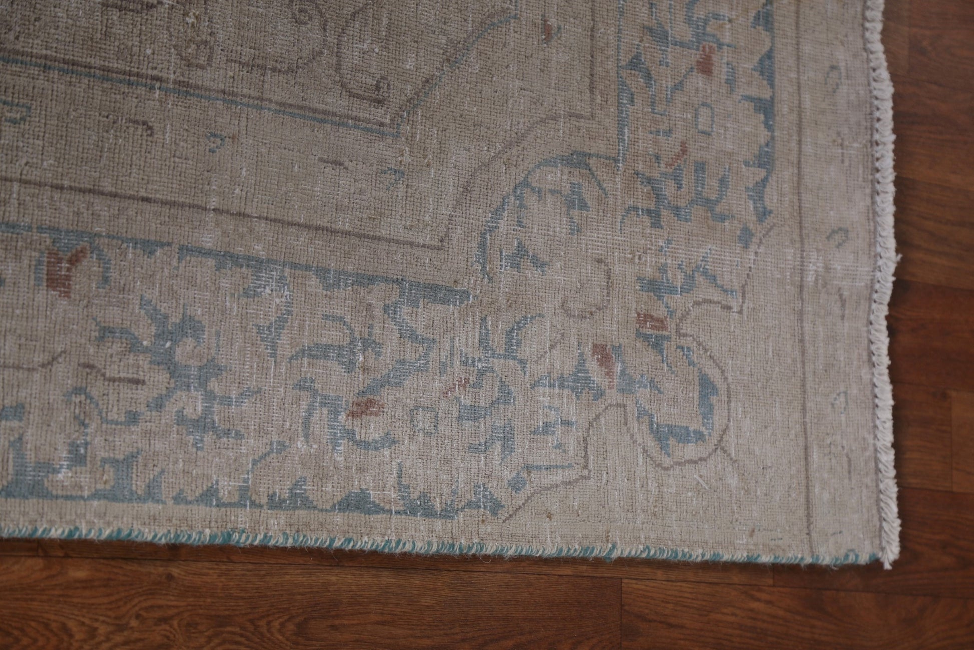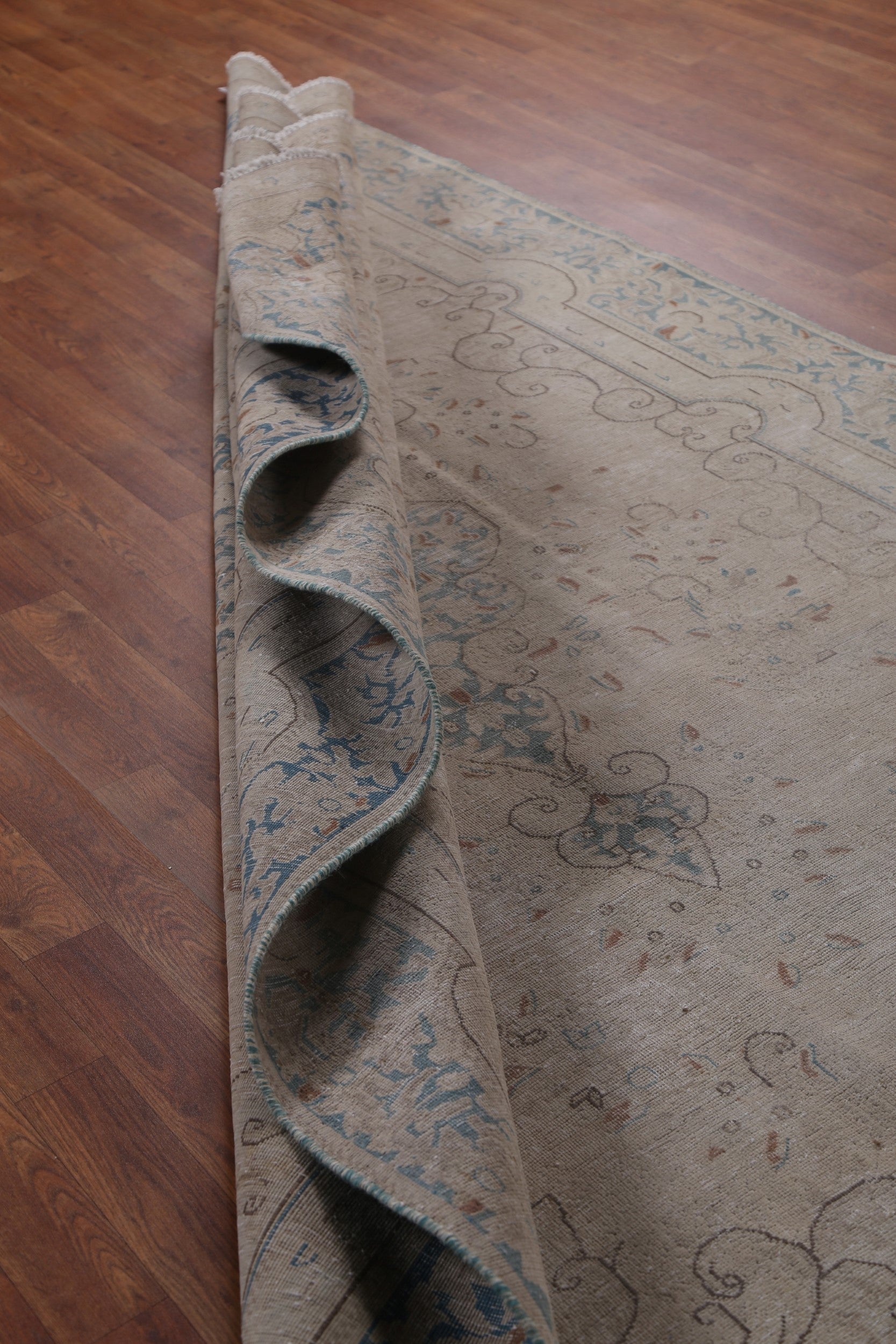 A Beautiful Genuine Persia ( Persia ) Kerman rug is Hand Knotted by skillful weavers in Persia ( Persia ) with 100% Wool Material. This rug is in Very Good (Evenly Low Pile) condition. dimensions are 9' 7'' X 6' 0'' in foot and 292 X 183 in centimeter. the primary color is Brown.