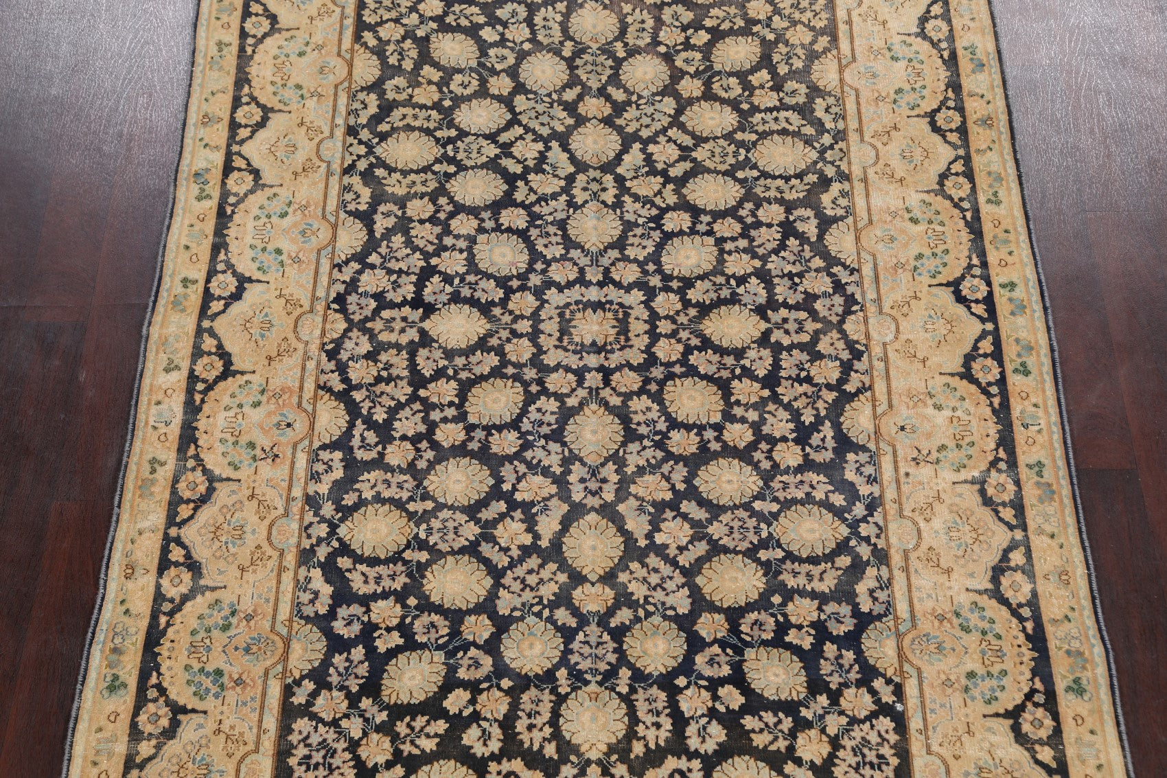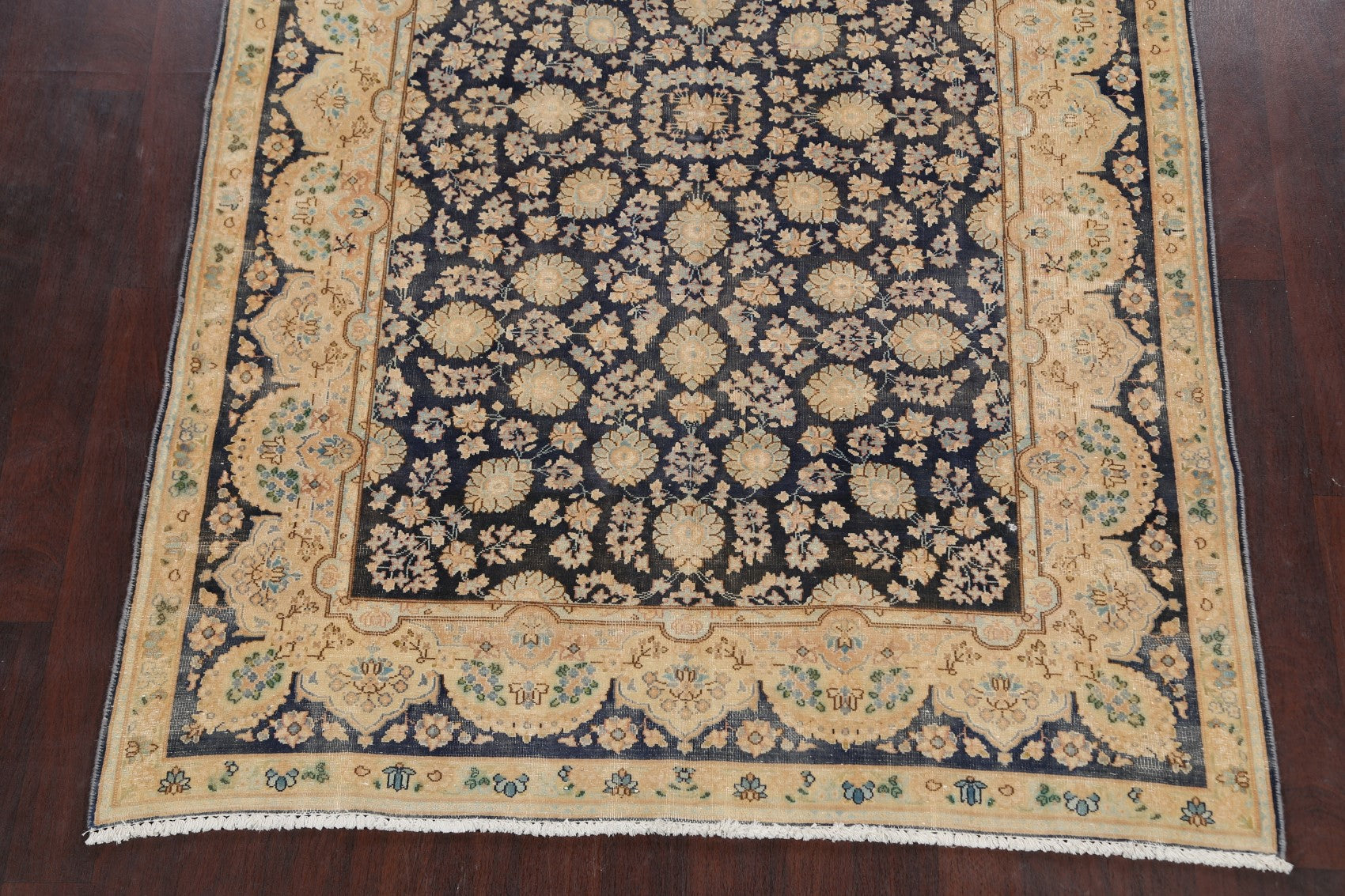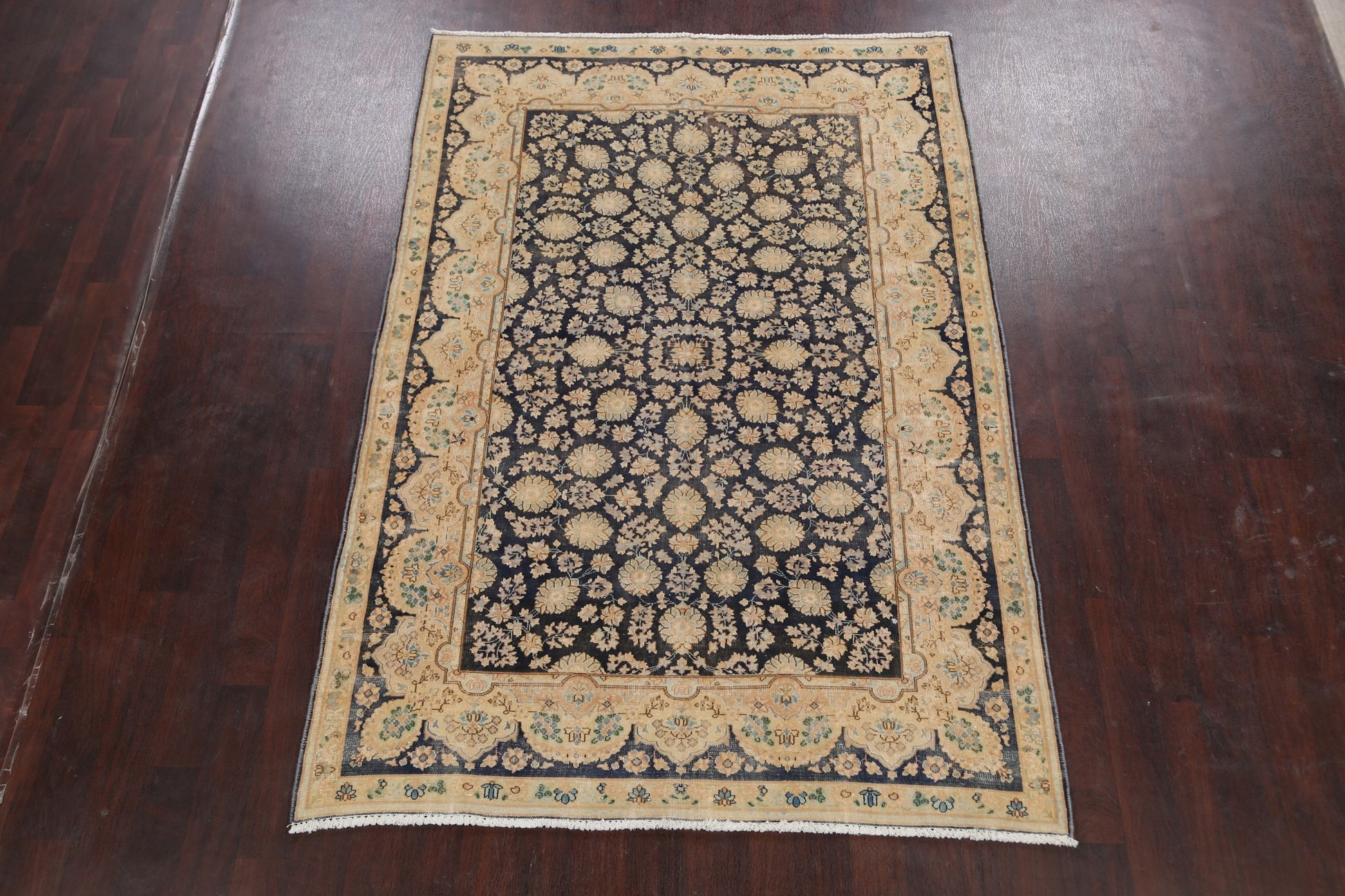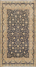 A Beautiful Genuine Persia ( Persia ) Kerman rug is Hand Knotted by skillful weavers in Persia ( Persia ) with 100% Wool Material. This rug is in Very Good (Evenly Low Pile) condition. dimensions are 8' 5'' X 5' 10'' in foot and 257 X 178 in centimeter. the primary color is Navy Blue & Blues.