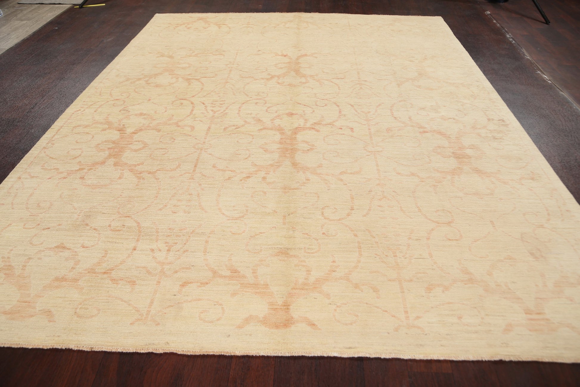 A Beautiful Genuine Pakistan Khotan rug is Hand Knotted by skillful weavers in Pakistan with 100% Wool Material. This rug is in New, First Quality condition. dimensions are 10' 1'' X 8' 0'' in foot and 307 X 244 in centimeter. the primary color is Beige & Ivories.
