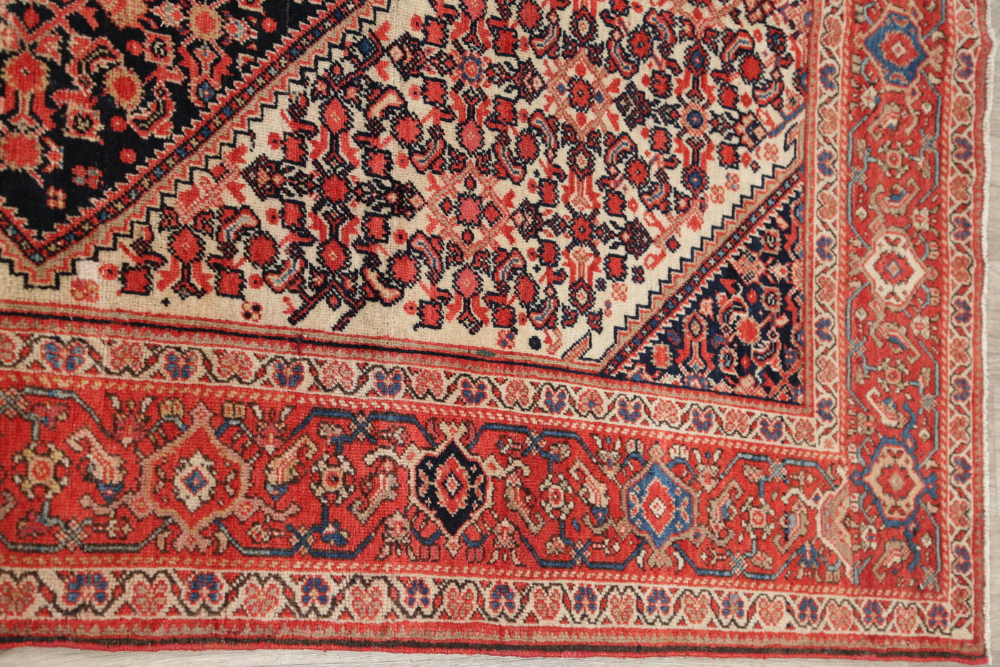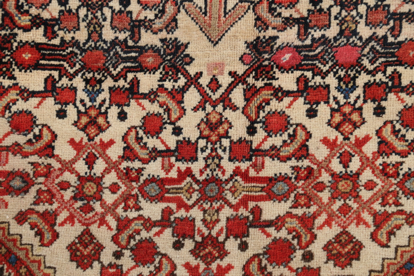 A Beautiful Genuine Persia ( Persia ) Malayer rug is Hand Knotted by skillful weavers in Persia ( Persia ) with 100% Wool Material. This rug is in Very Good (Evenly Low Pile-Abrash) (100% Vegetable Dye) condition. dimensions are 6' 6'' X 4' 3'' in foot and 198 X 130 in centimeter. the primary color is Beige & Ivories.