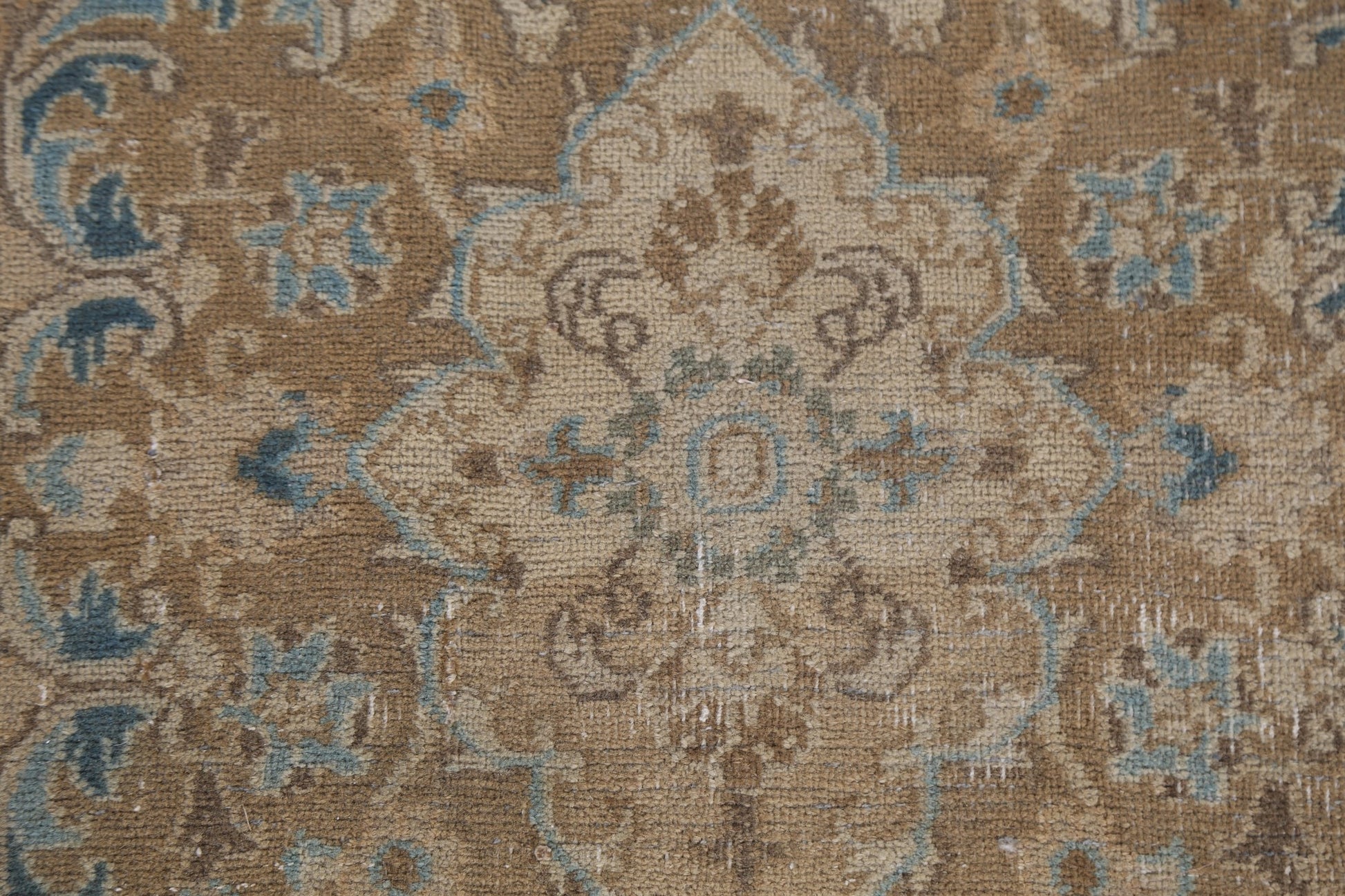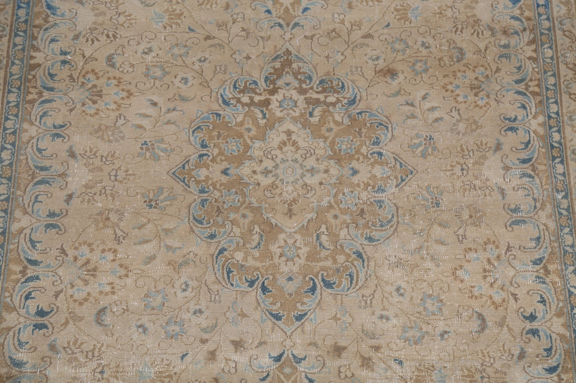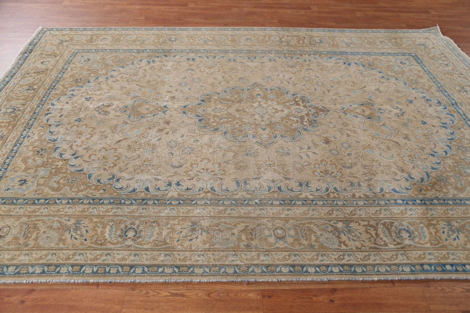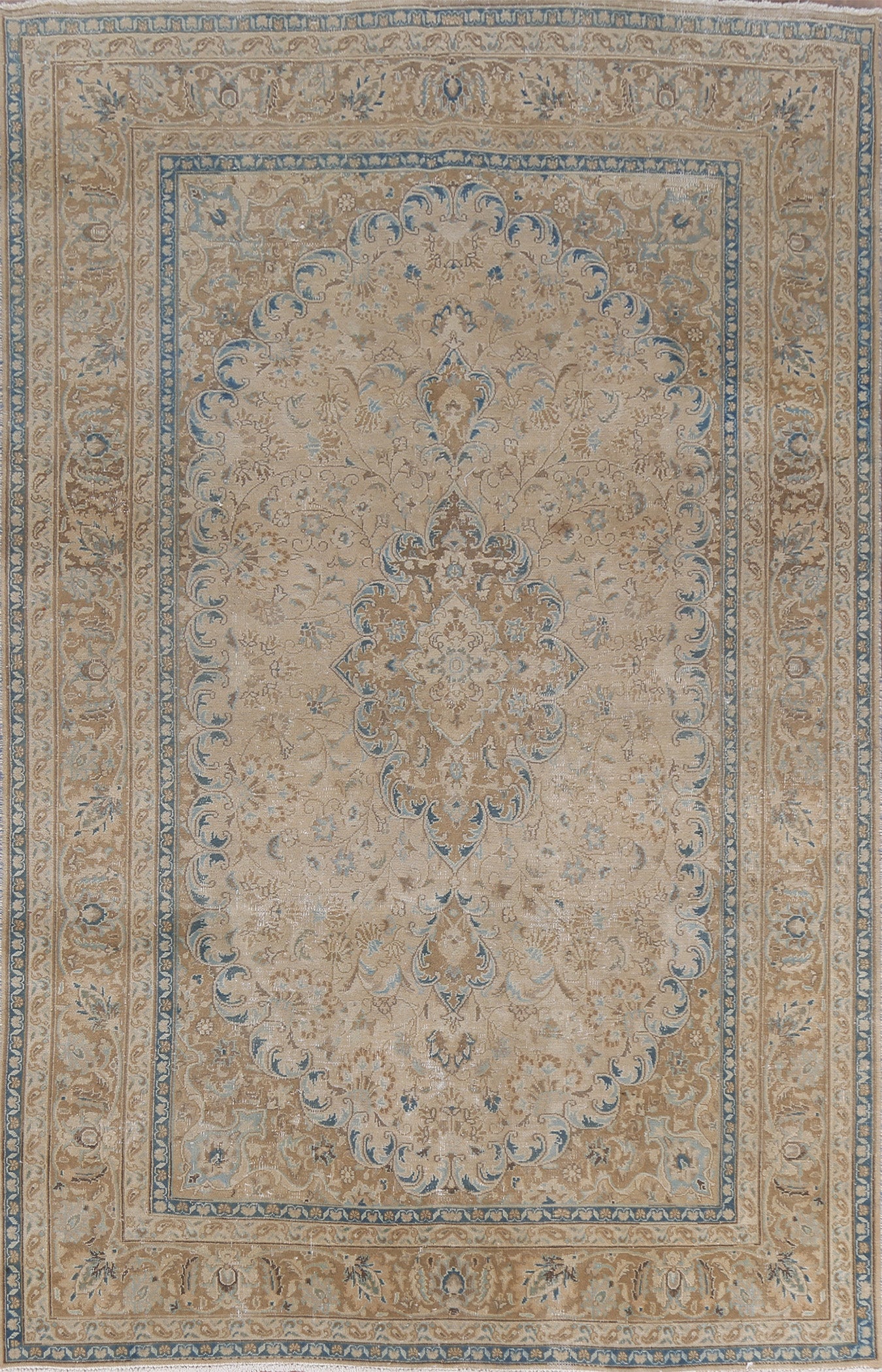 A Beautiful Genuine Persia ( Persia ) Mashad rug is Hand Knotted by skillful weavers in Persia ( Persia ) with 100% Wool Material. This rug is in Very Good (Low Pile) condition. dimensions are 9' 7'' X 6' 5'' in foot and 292 X 196 in centimeter. the primary color is Beige & Ivories.