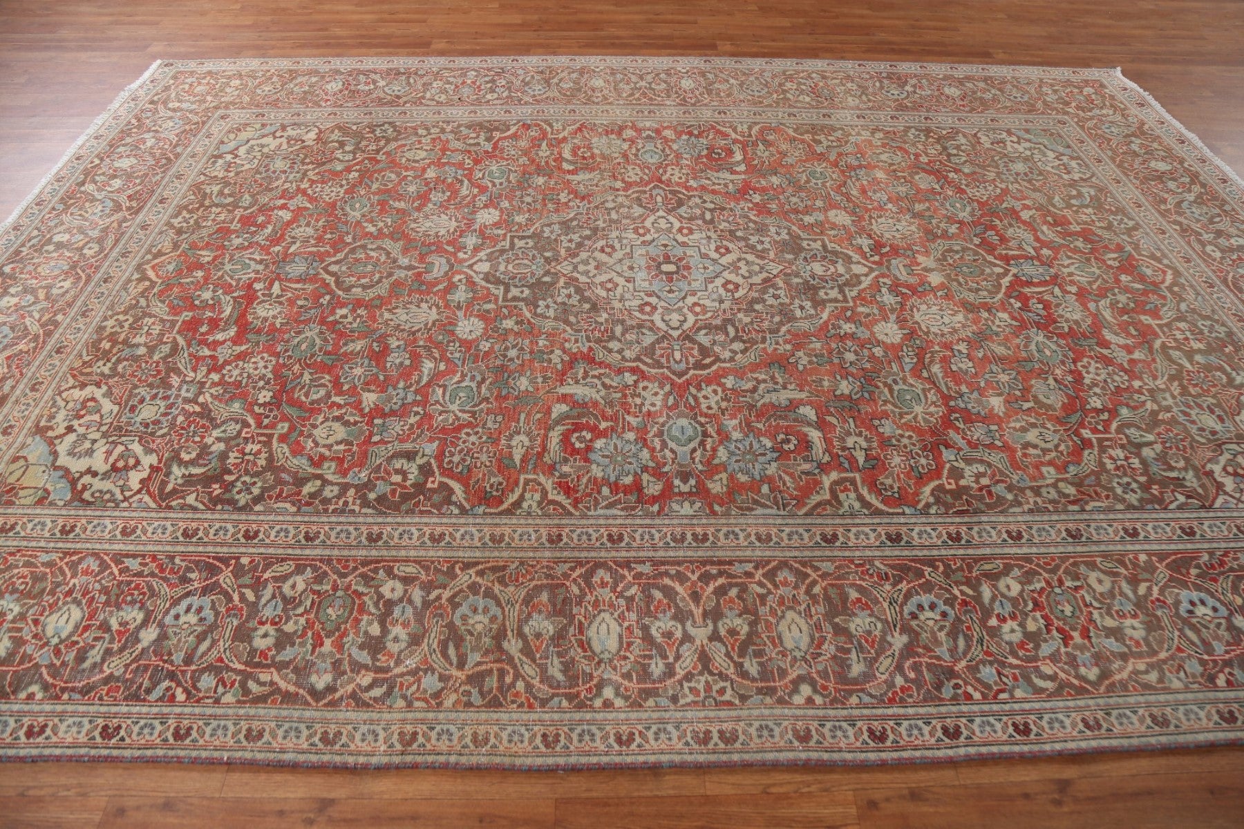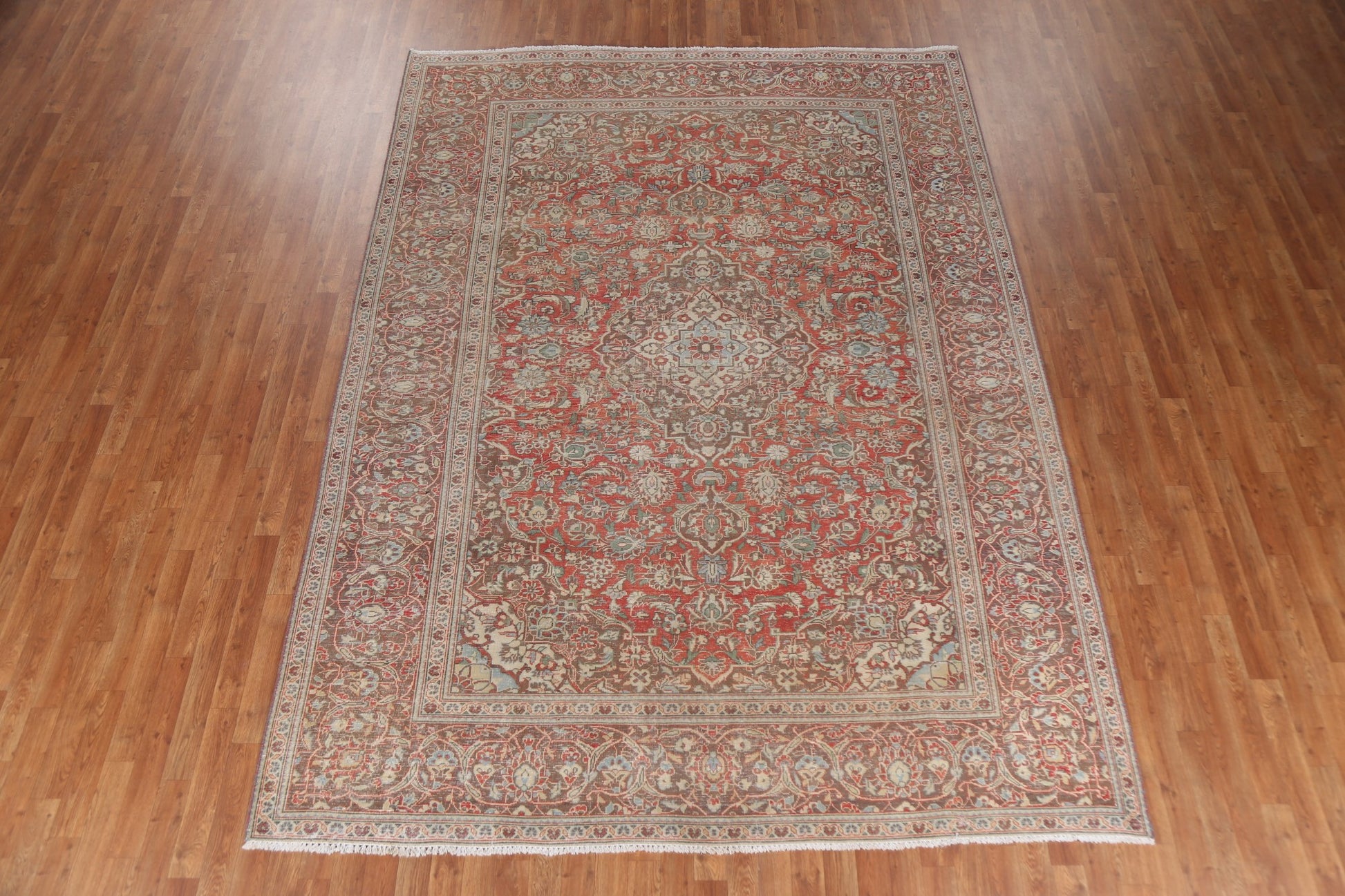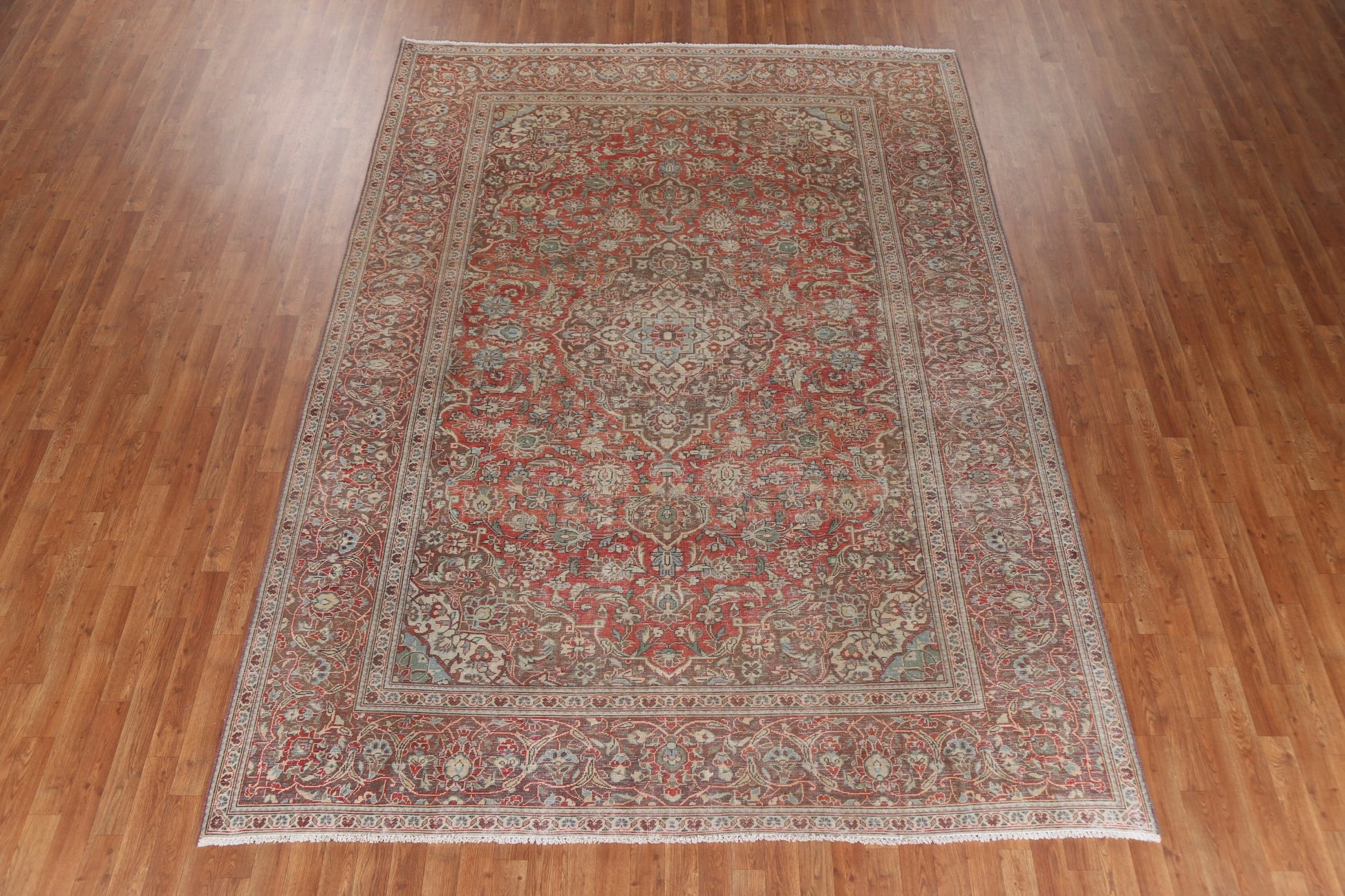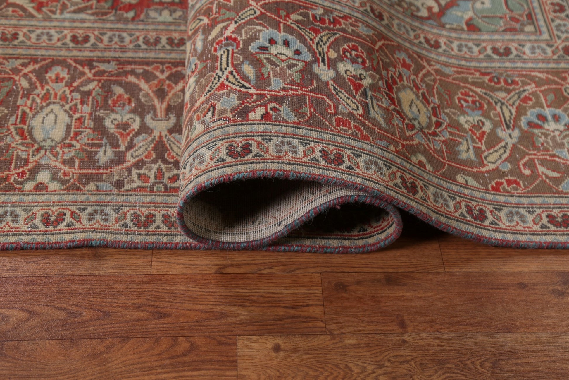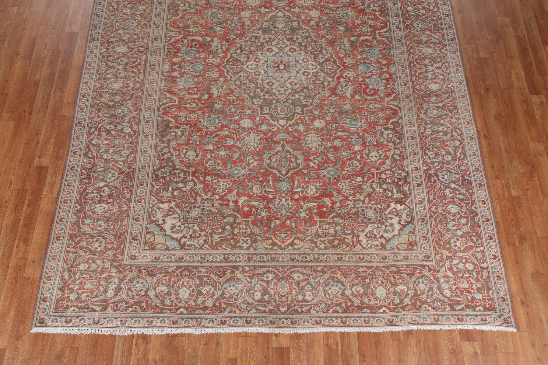 A Beautiful Genuine Persia ( Persia ) Mashad rug is Hand Knotted by skillful weavers in Persia ( Persia ) with 100% Wool Material. This rug is in Very Good (Low Pile) condition. dimensions are 10' 9'' X 7' 11'' in foot and 328 X 241 in centimeter. the primary color is Red.