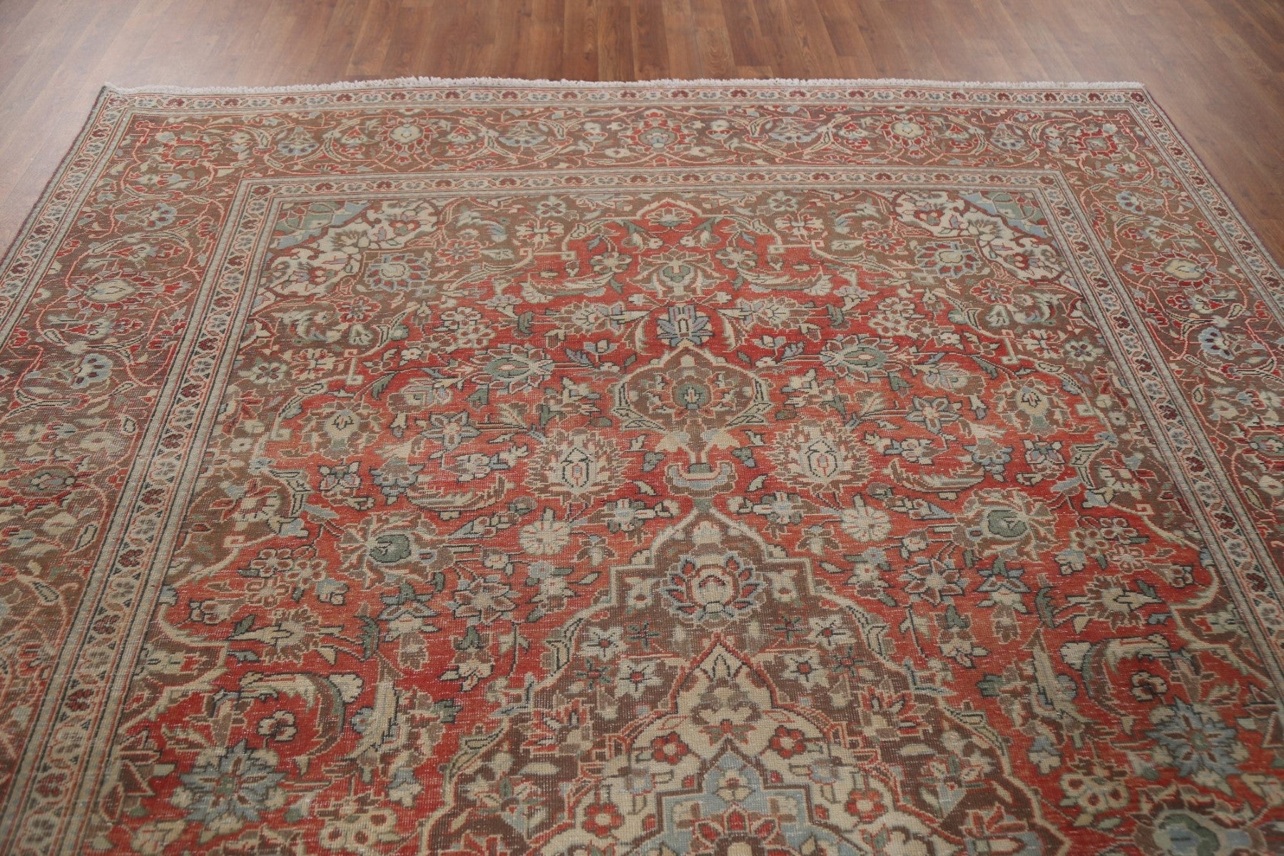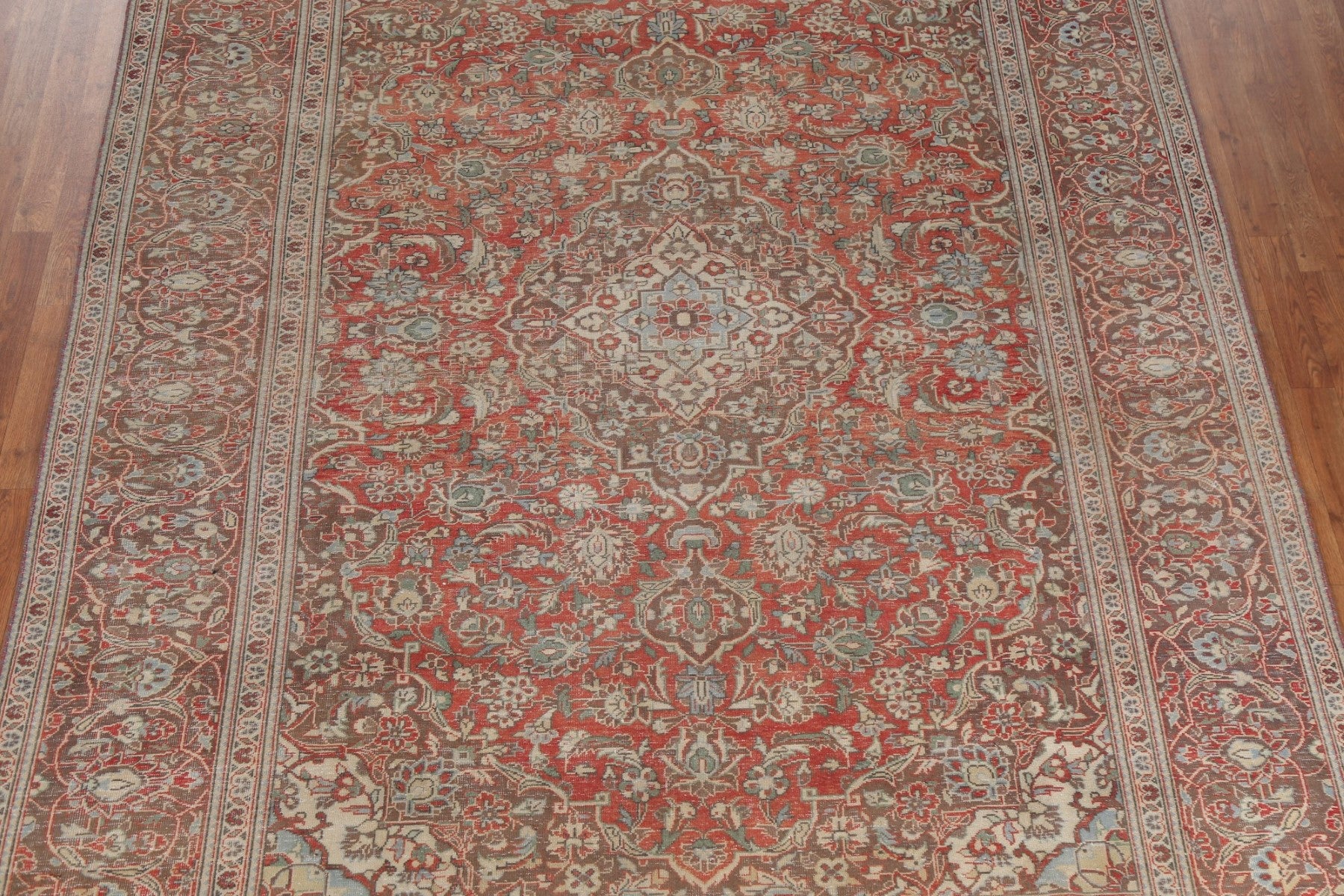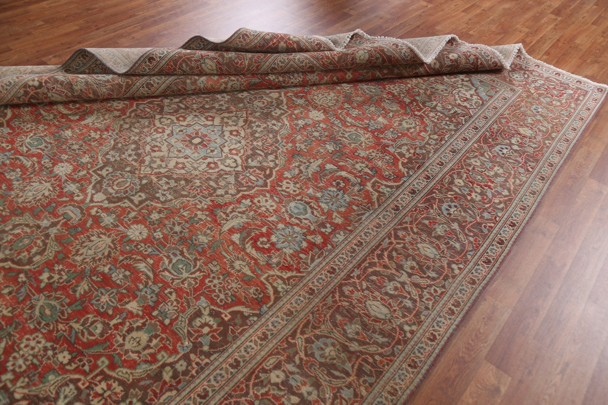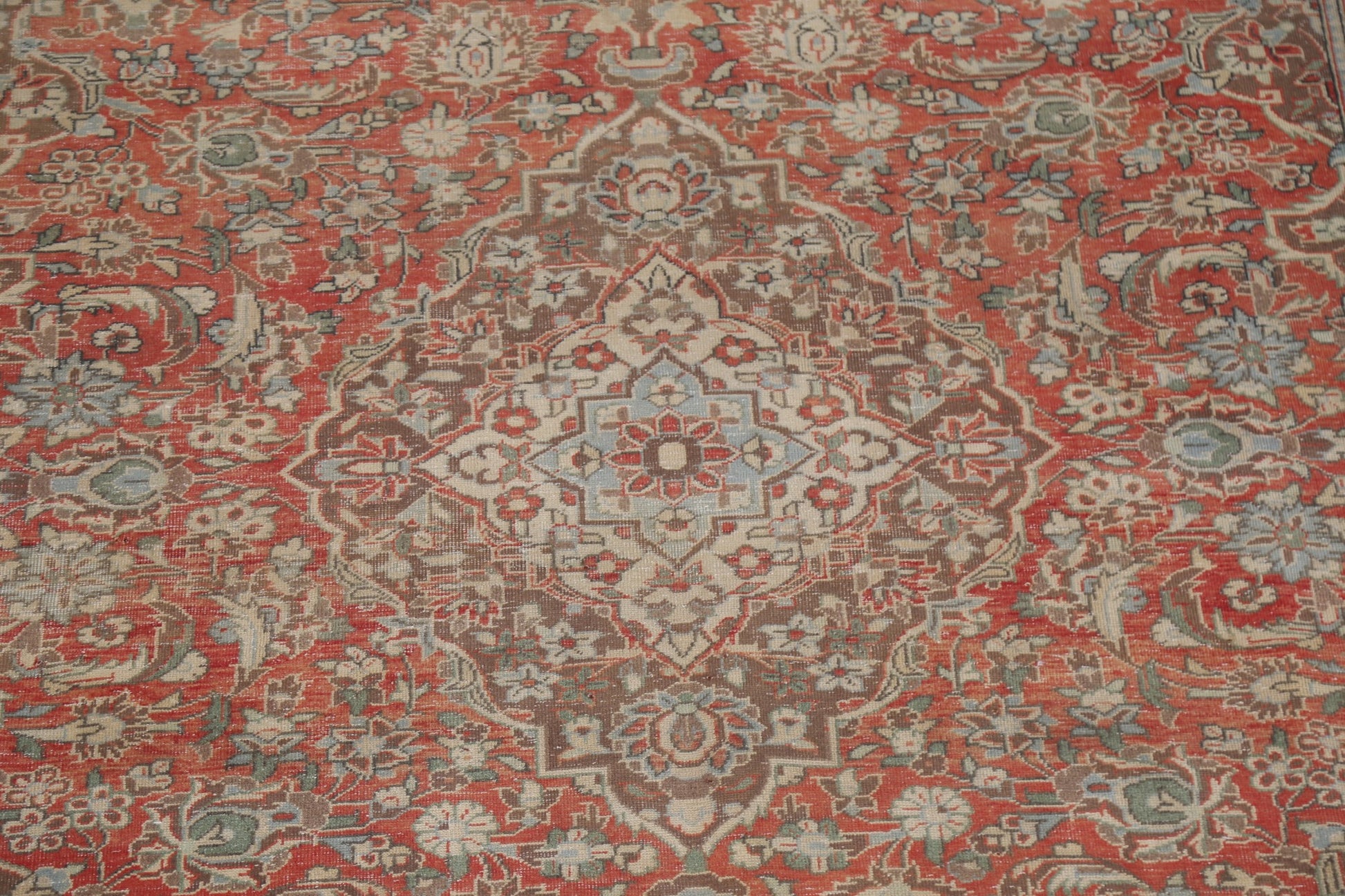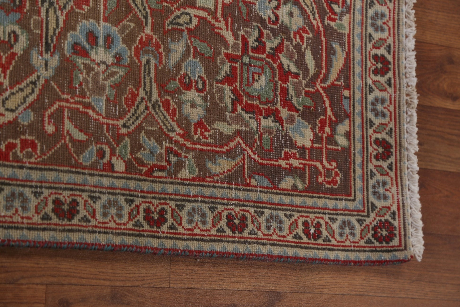 A Beautiful Genuine Persia ( Persia ) Mashad rug is Hand Knotted by skillful weavers in Persia ( Persia ) with 100% Wool Material. This rug is in Very Good (Low Pile) condition. dimensions are 10' 9'' X 7' 11'' in foot and 328 X 241 in centimeter. the primary color is Red.
