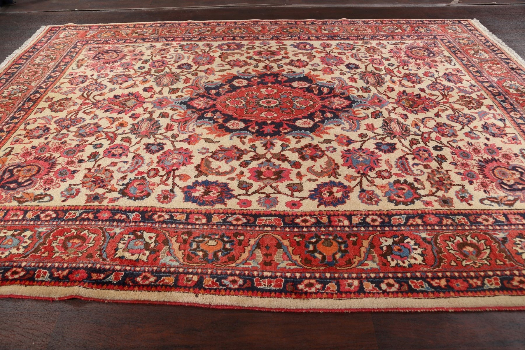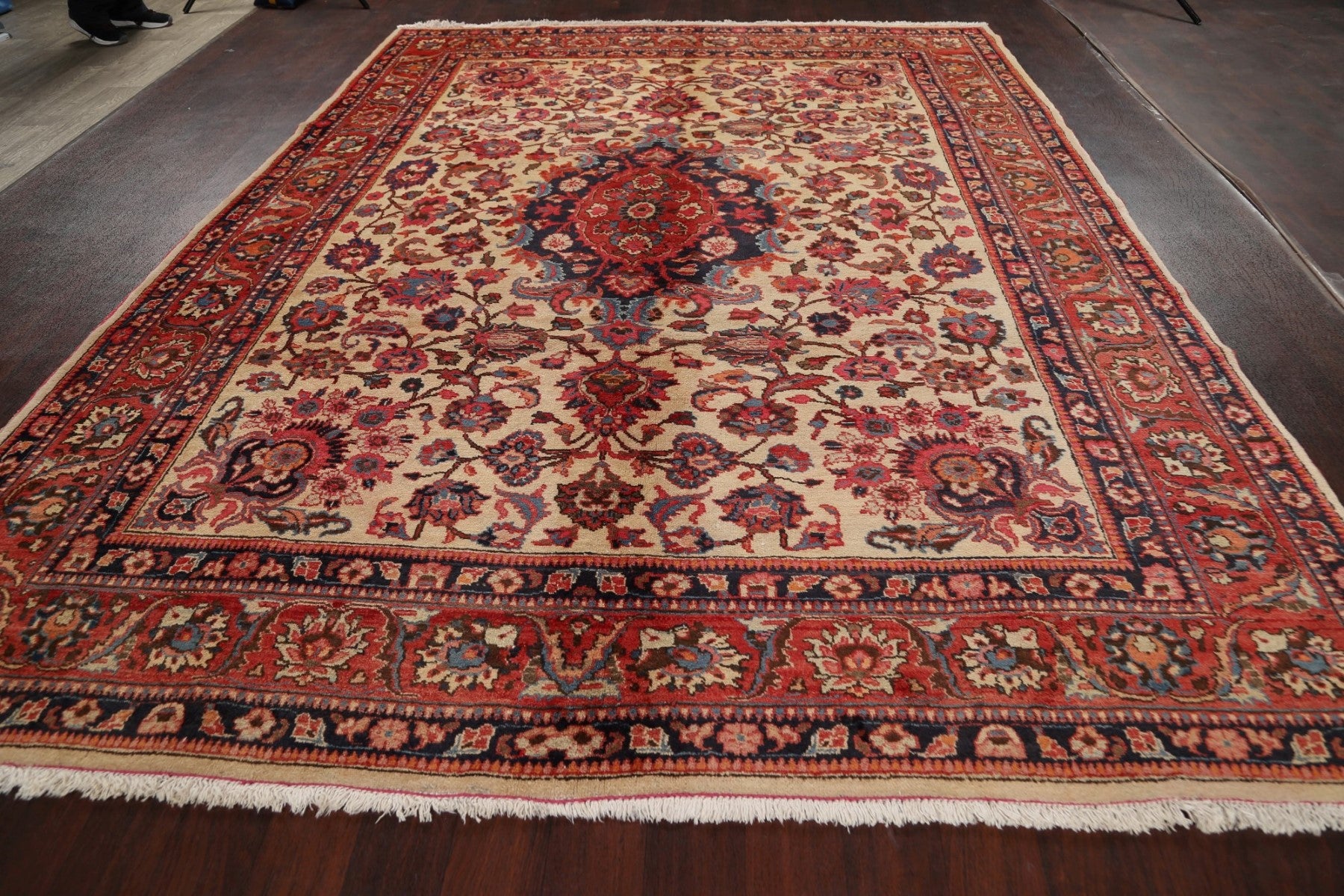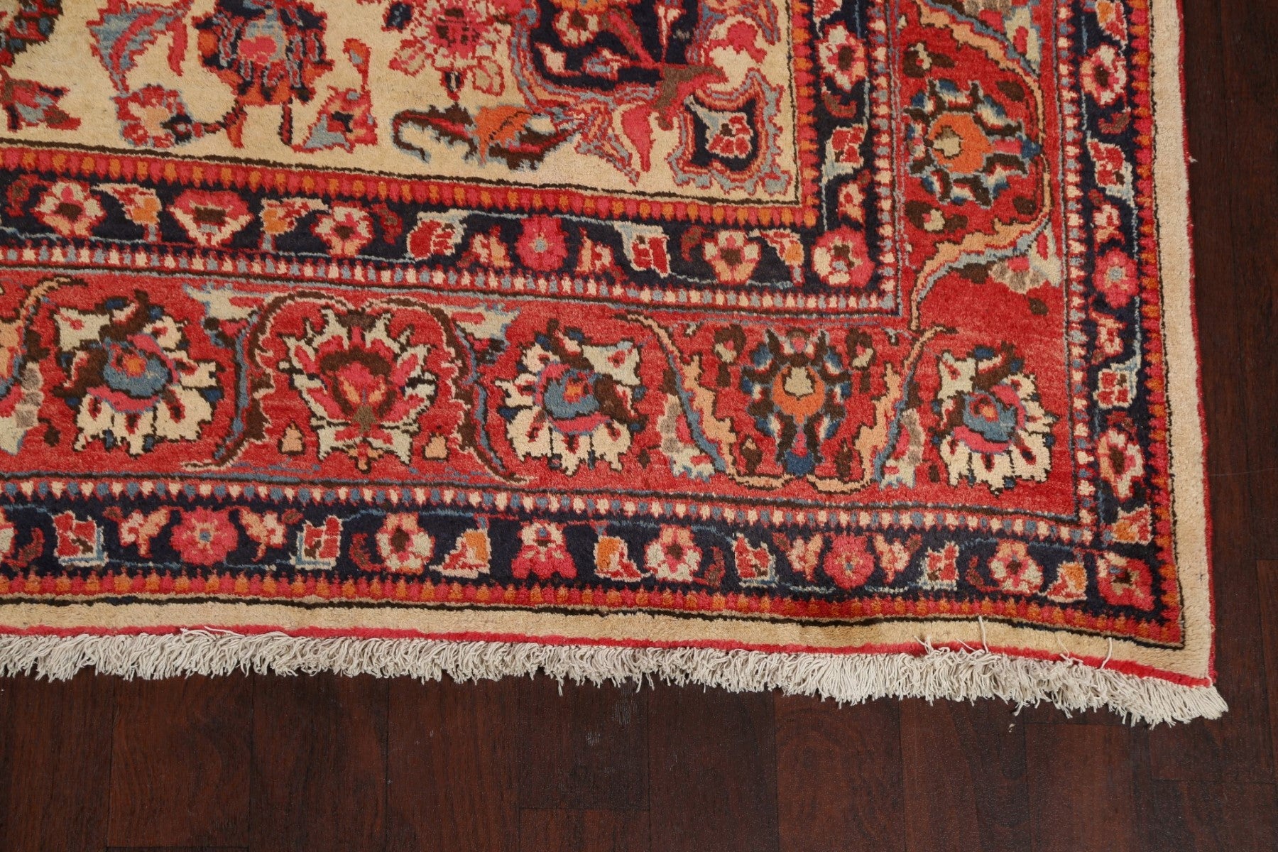 A Beautiful Genuine Persia ( Persia ) Mashad rug is Hand Knotted by skillful weavers in Persia ( Persia ) with 100% Wool Material. This rug is in Very Good condition. dimensions are 11' 7'' X 8' 5'' in foot and 353 X 257 in centimeter. the primary color is Beige & Ivories.