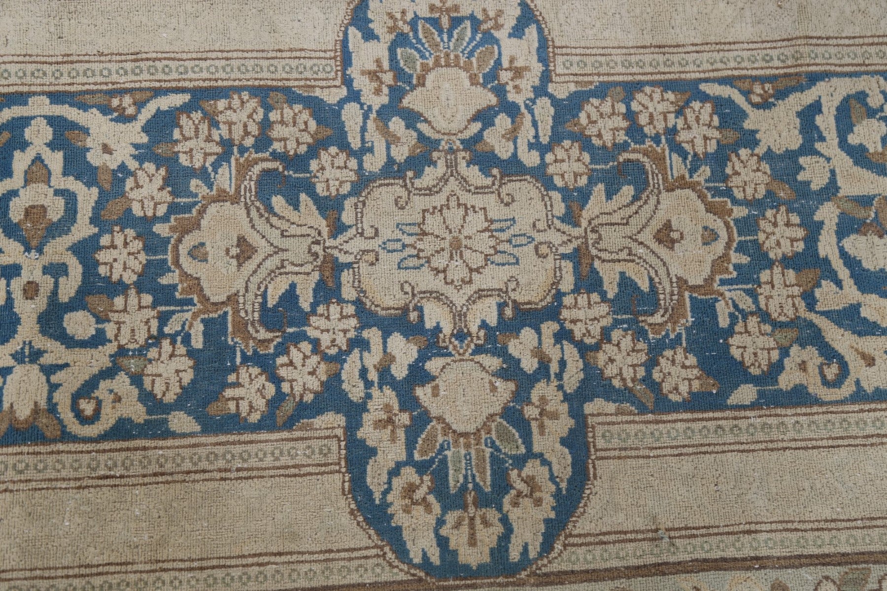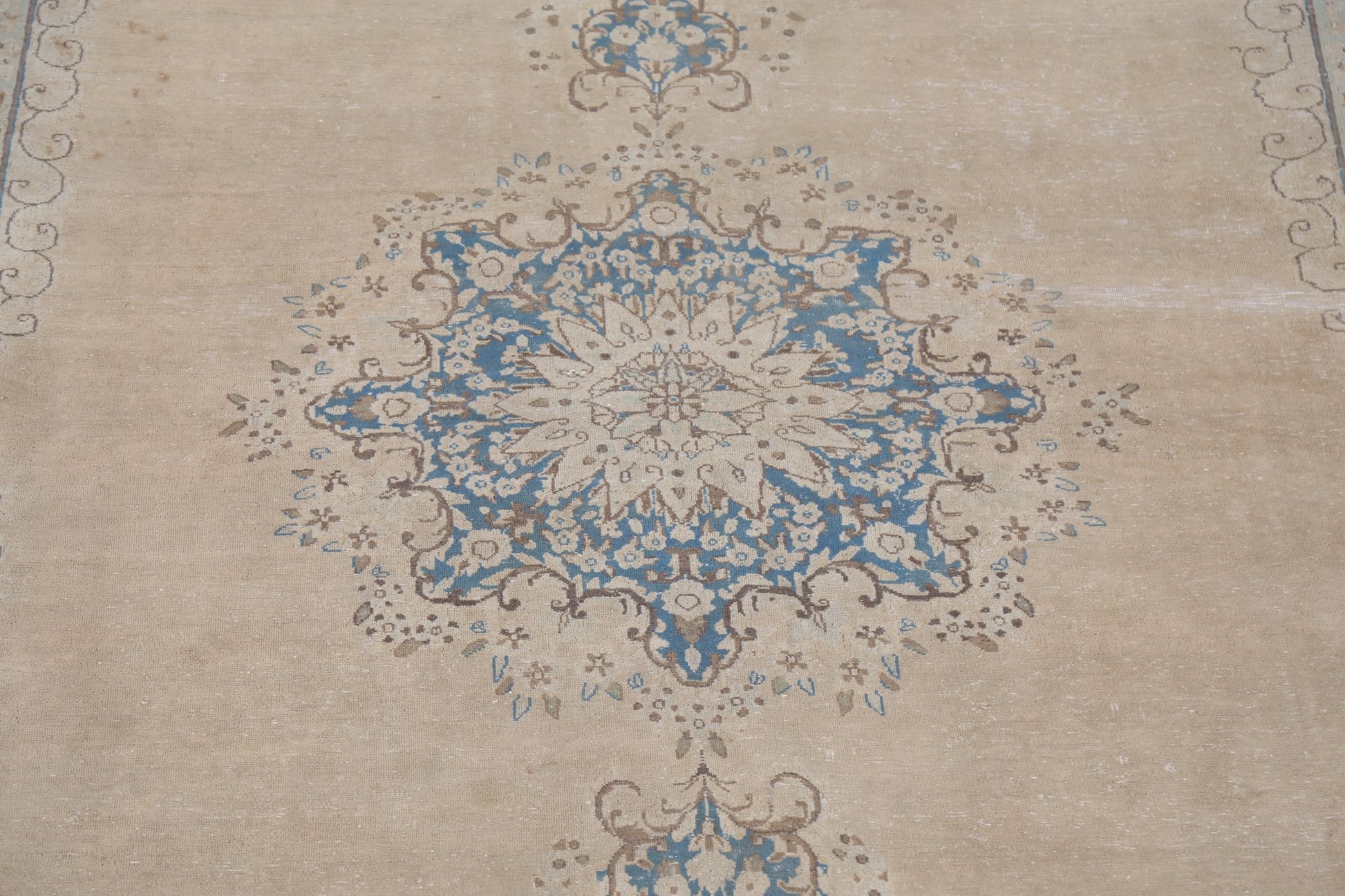 A Beautiful Genuine Persia ( Persia ) Kerman rug is Hand Knotted by skillful weavers in Persia ( Persia ) with 100% Wool Material. This rug is in Very Good (Evenly Low Pile) condition. dimensions are 13' 1'' X 8' 9'' in foot and 399 X 267 in centimeter. the primary color is Beige & Ivories.