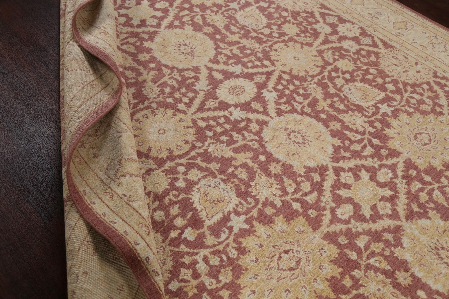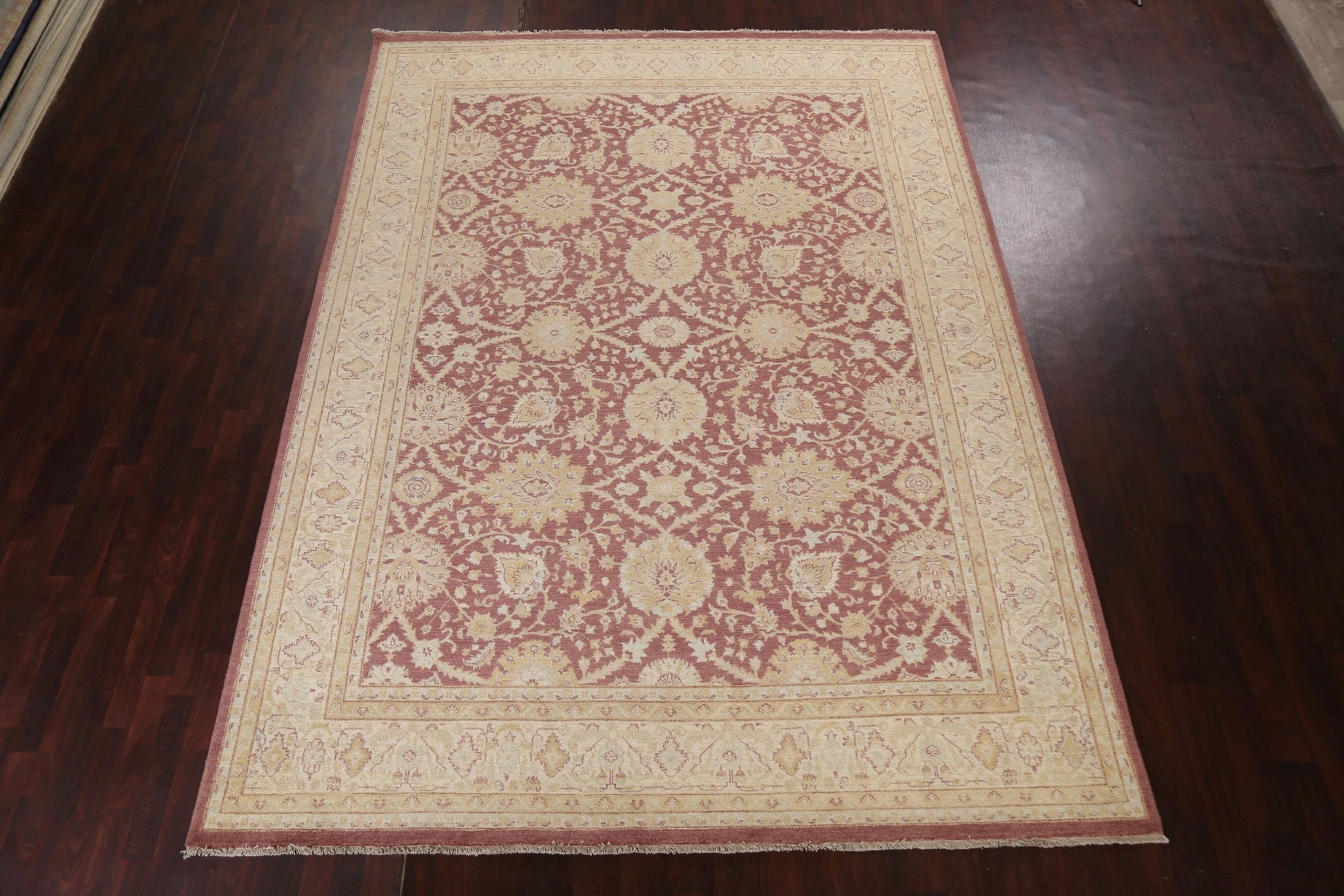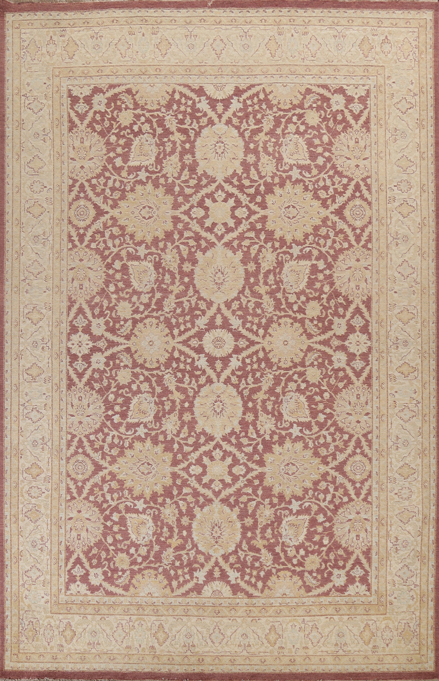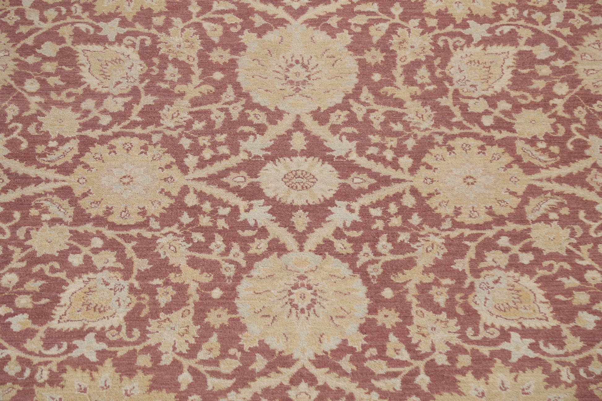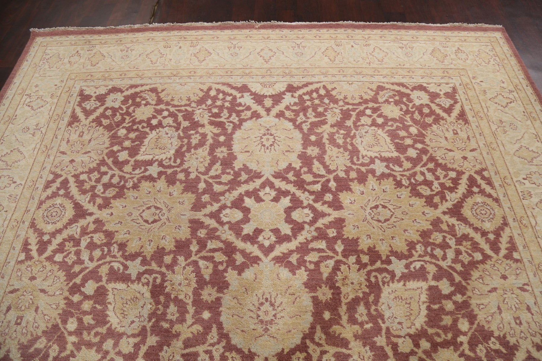 A Beautiful Genuine Pakistan Oushak-Chobi rug is Hand Knotted by skillful weavers in Pakistan with 100% Wool Material. This rug is in New, First Quality condition. dimensions are 12' 3'' X 8' 10'' in foot and 373 X 269 in centimeter. the primary color is Purples.