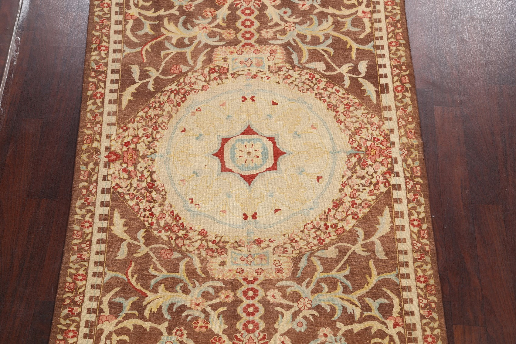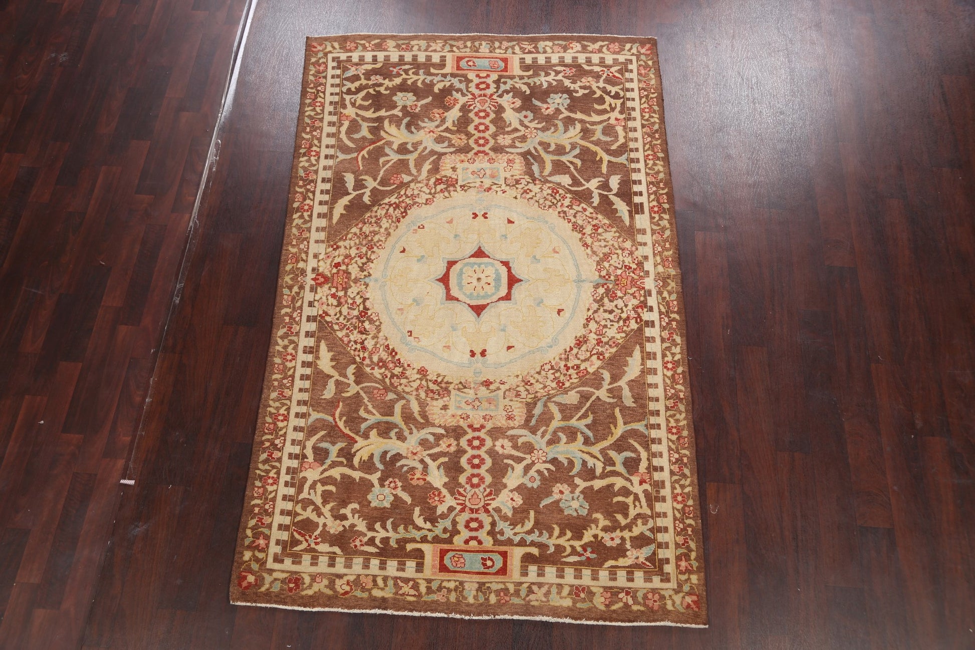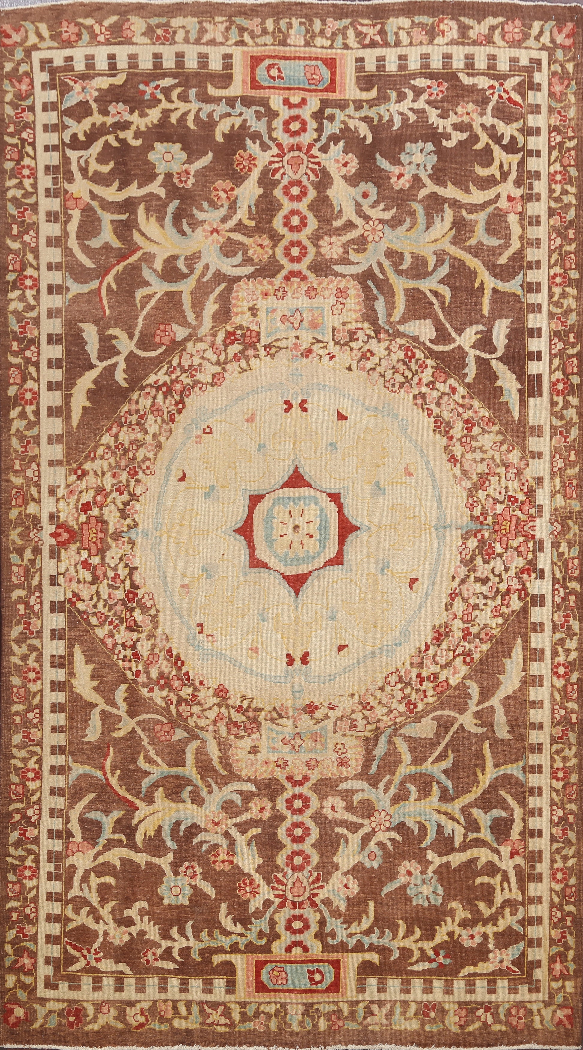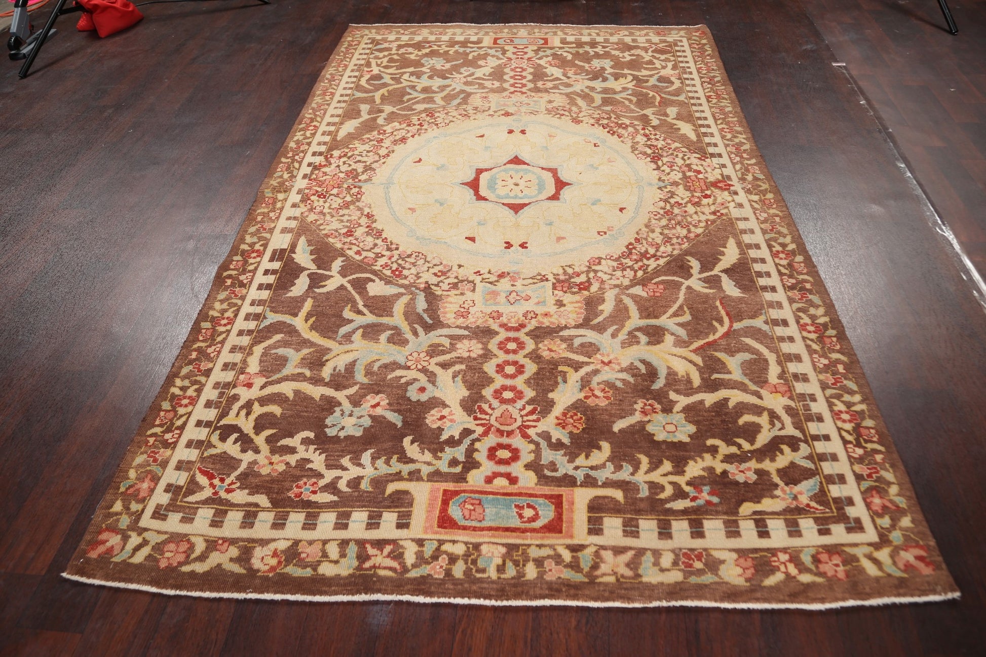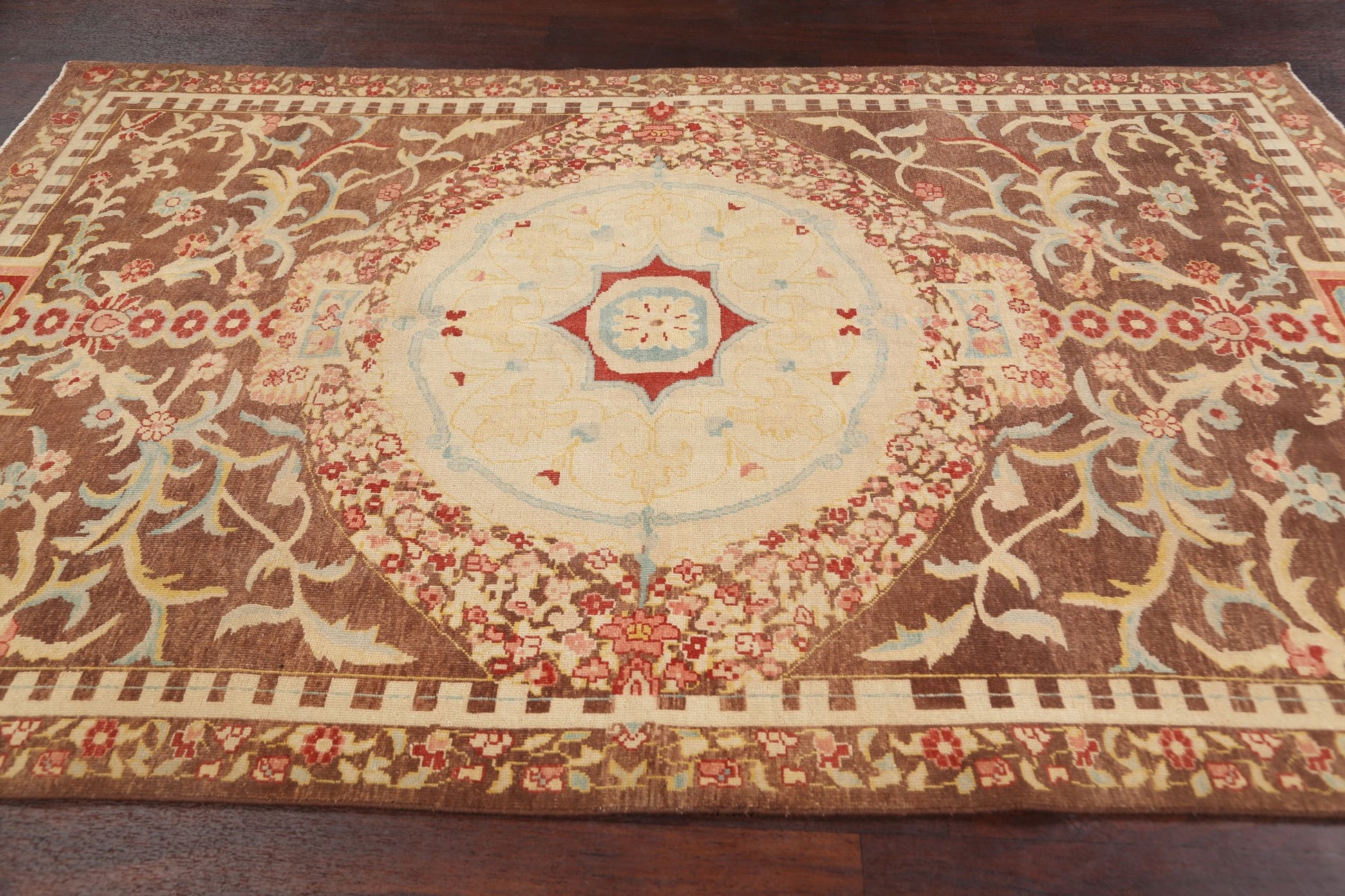 A Beautiful Genuine Egypt Oushak rug is Hand Knotted by skillful weavers in Egypt with 100% Wool Material. This rug is in New, First Quality condition. dimensions are 8' 0'' X 5' 0'' in foot and 244 X 152 in centimeter. the primary color is Brown.
