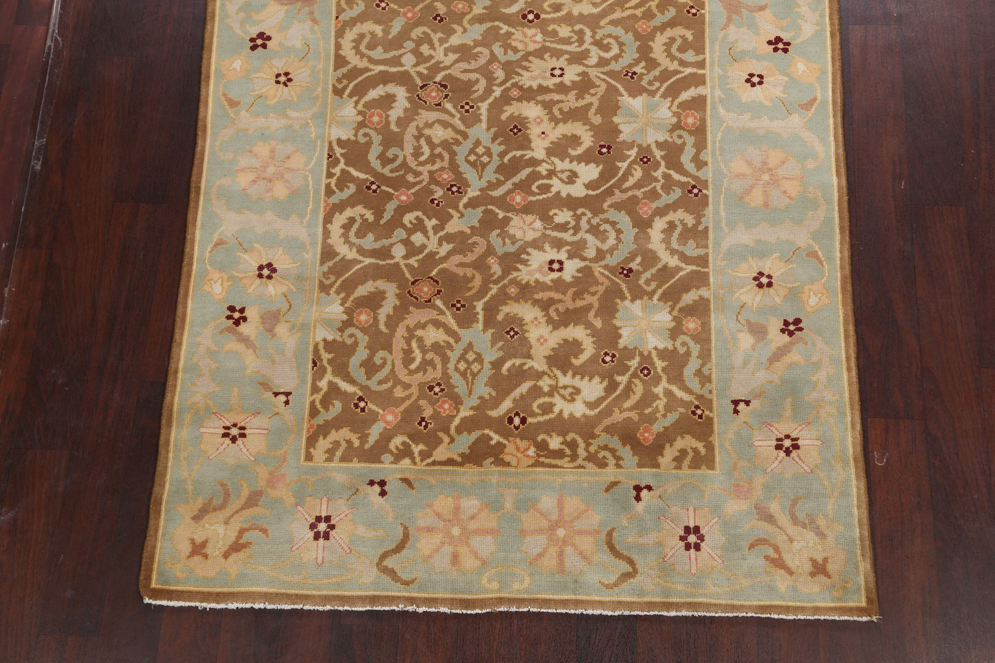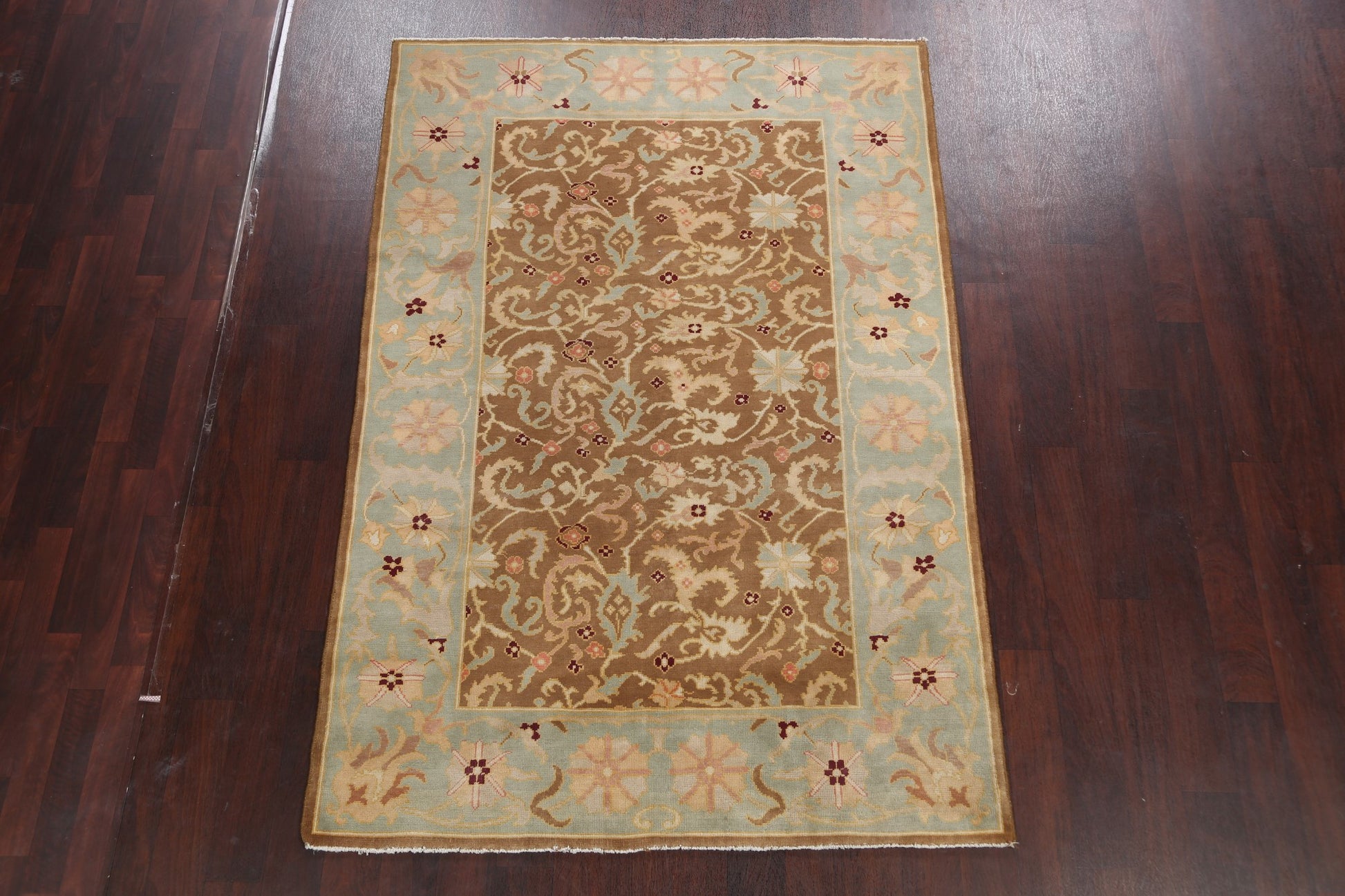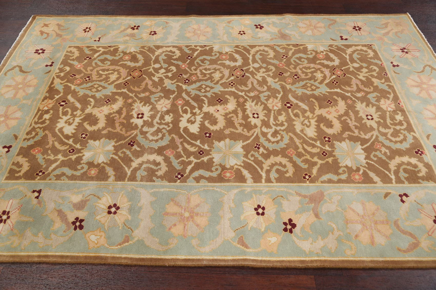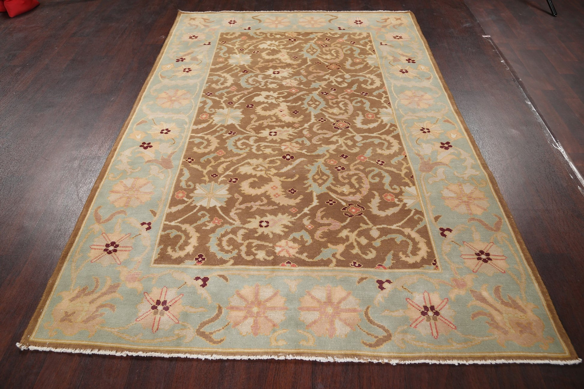 A Beautiful Genuine Egypt Oushak rug is Hand Knotted by skillful weavers in Egypt with 100% Wool Material. This rug is in New, First Quality condition. dimensions are 7' 7'' X 5' 1'' in foot and 231 X 155 in centimeter. the primary color is Brown.