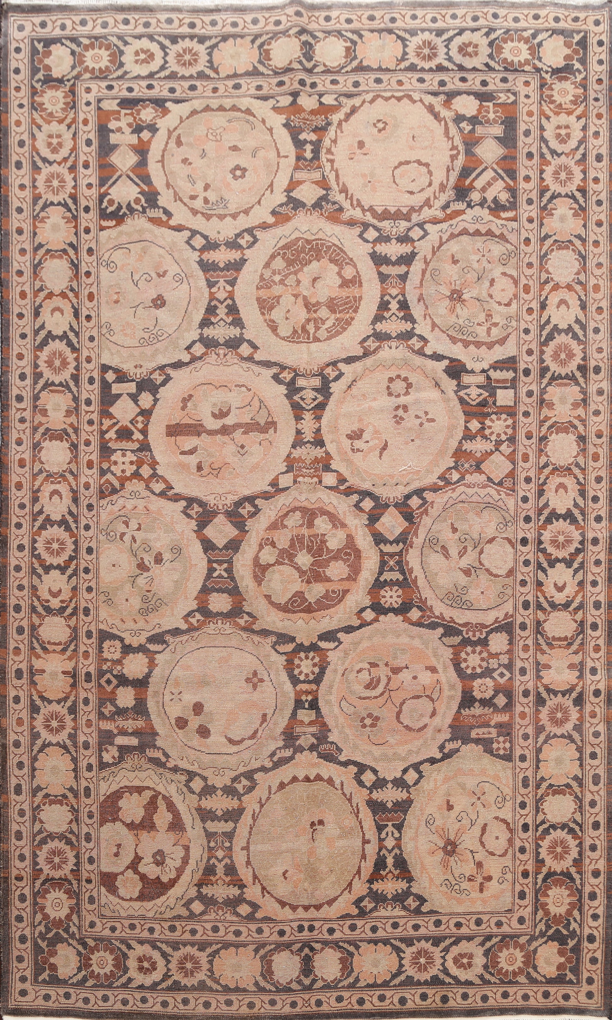 A Beautiful Genuine Egypt Oushak rug is Hand Knotted by skillful weavers in Egypt with 100% Wool Material. This rug is in New, First Quality condition. dimensions are 9' 9'' X 6' 9'' in foot and 297 X 206 in centimeter. the primary color is Multi-Colored.