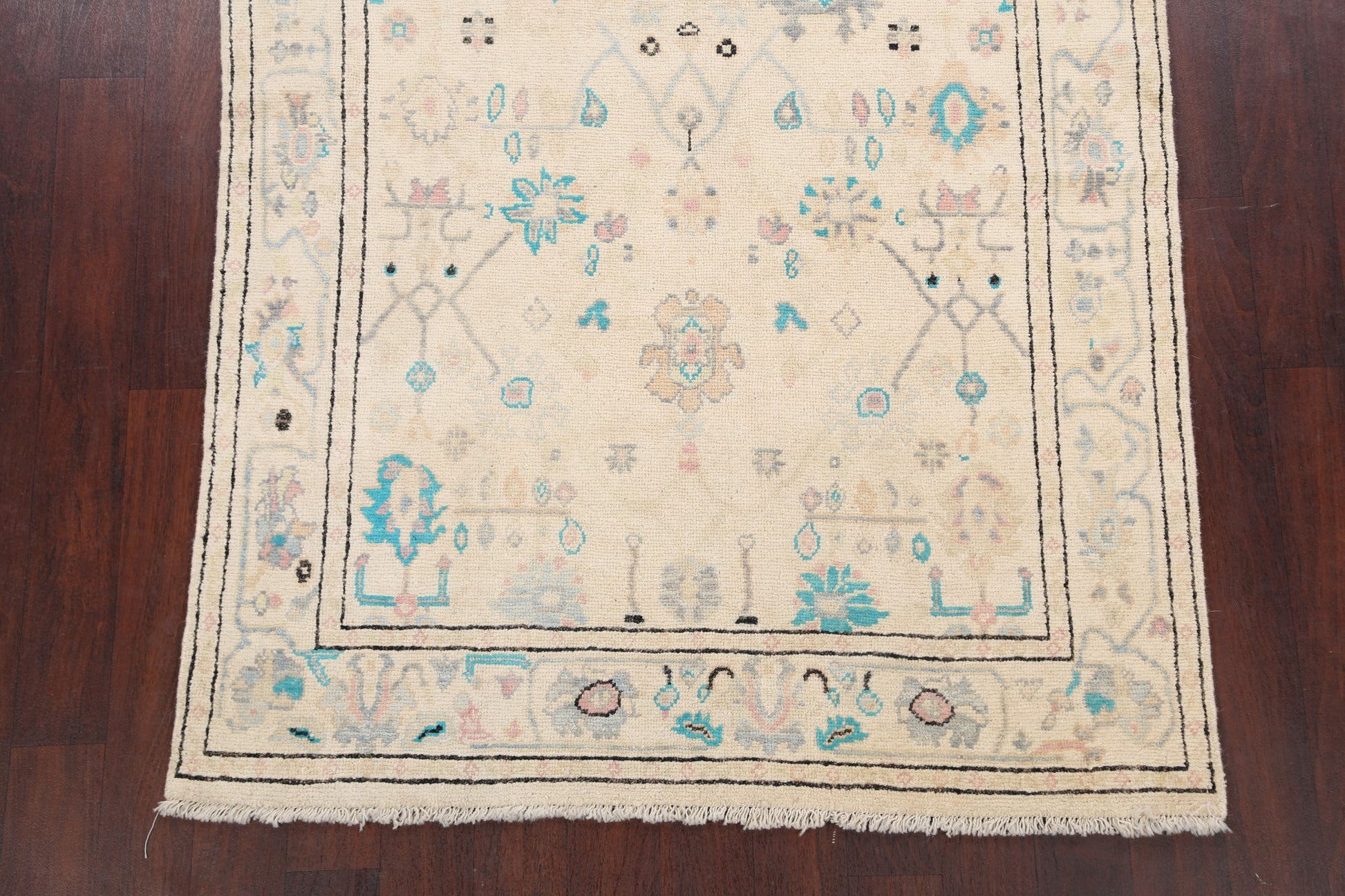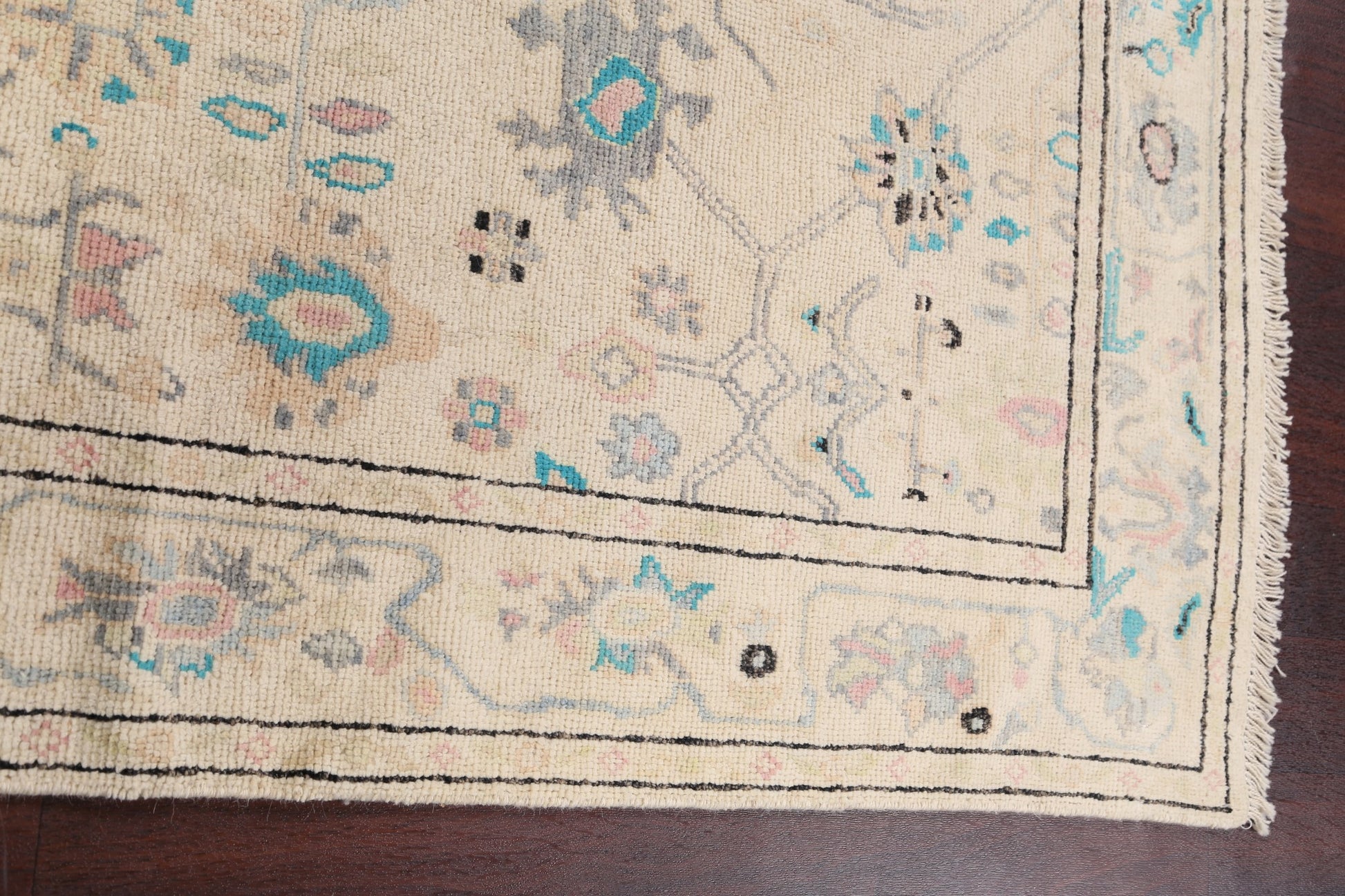 A Beautiful Genuine Turkey Oushak rug is Hand Knotted by skillful weavers in Turkey with 100% Wool Material. This rug is in New, First Quality condition. dimensions are 6' 3'' X 4' 6'' in foot and 191 X 137 in centimeter. the primary color is Beige & Ivories.