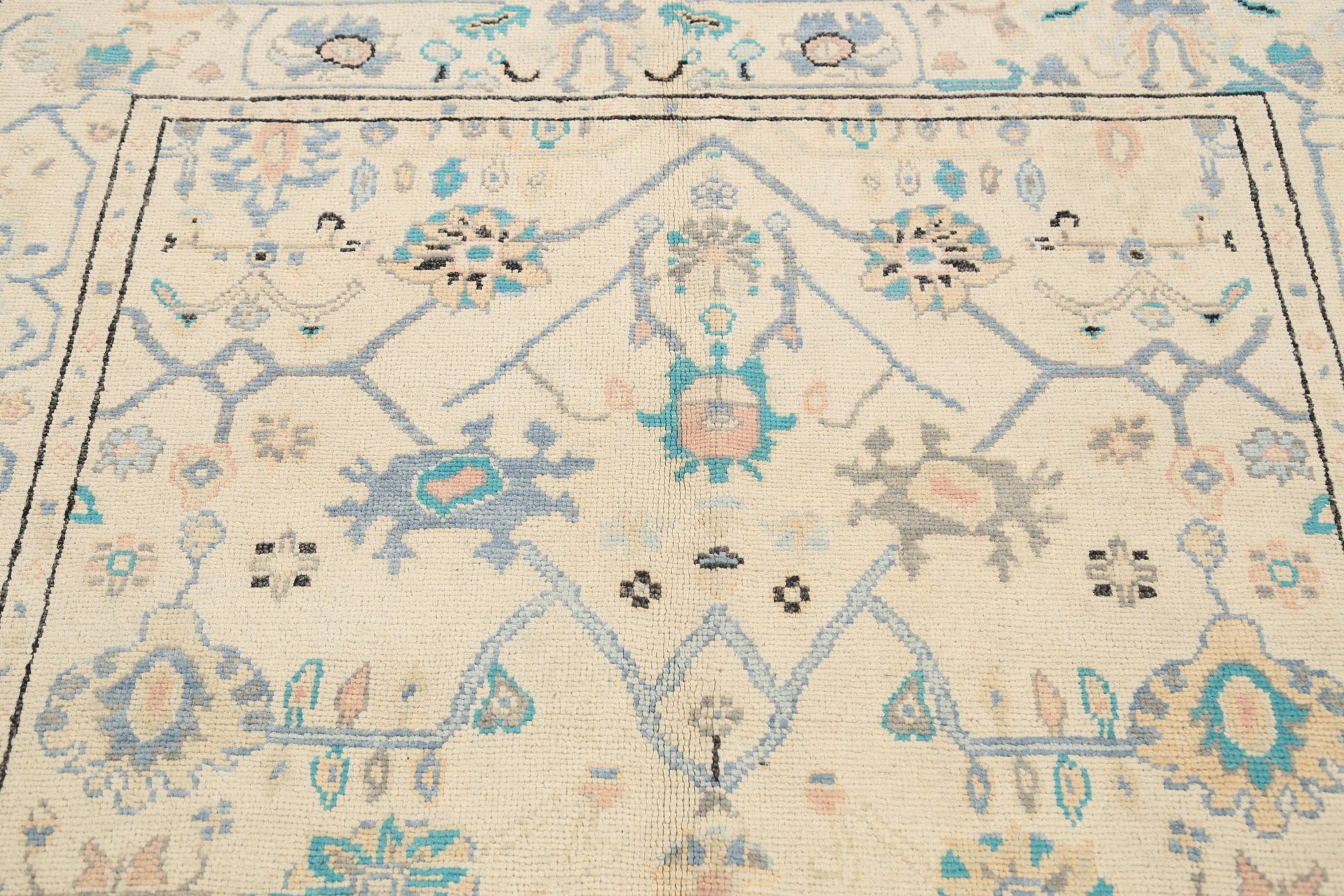 A Beautiful Genuine Turkey Oushak rug is Hand Knotted by skillful weavers in Turkey with 100% Wool Material. This rug is in New, First Quality condition. dimensions are 6' 2'' X 5' 0'' in foot and 188 X 152 in centimeter. the primary color is Beige & Ivories.