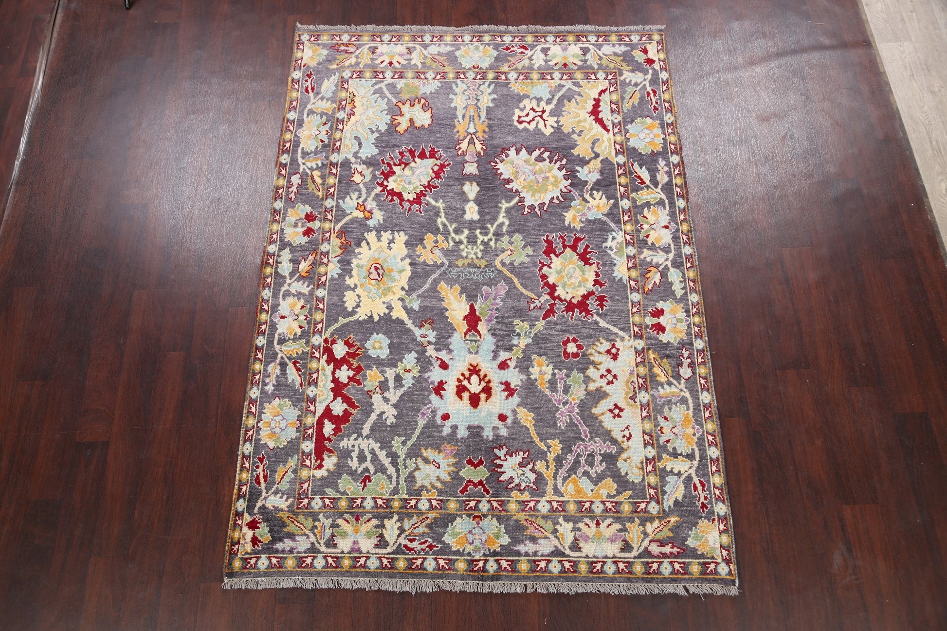 A Beautiful Genuine Turkey Oushak rug is Hand Knotted by skillful weavers in Turkey with 100% Wool Material. This rug is in New, First Quality condition. dimensions are 7' 7'' X 5' 5'' in foot and 231 X 165 in centimeter. the primary color is Greys & Charcoal.