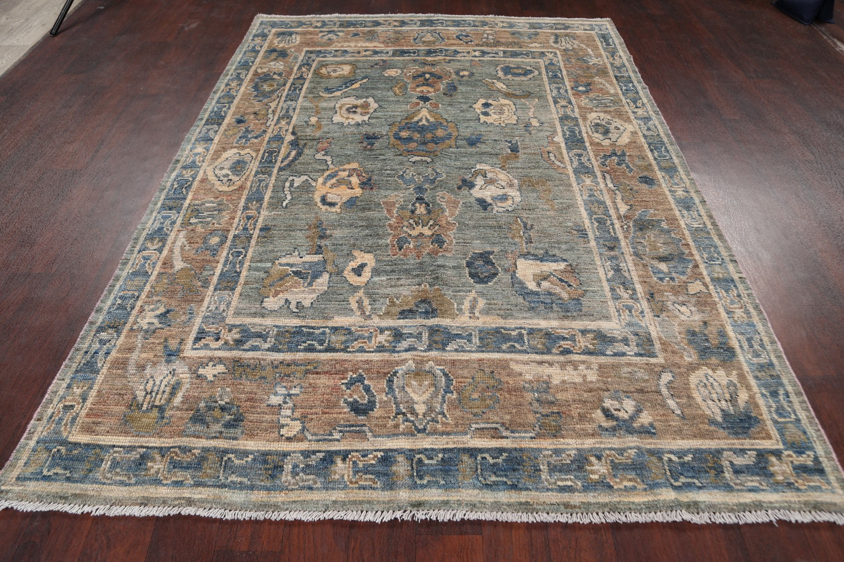 A Beautiful Genuine Turkey Oushak rug is Hand Knotted by skillful weavers in Turkey with 100% Wool Material. This rug is in New, First Quality condition. dimensions are 7' 7'' X 5' 6'' in foot and 231 X 168 in centimeter. the primary color is Greys & Charcoal.