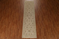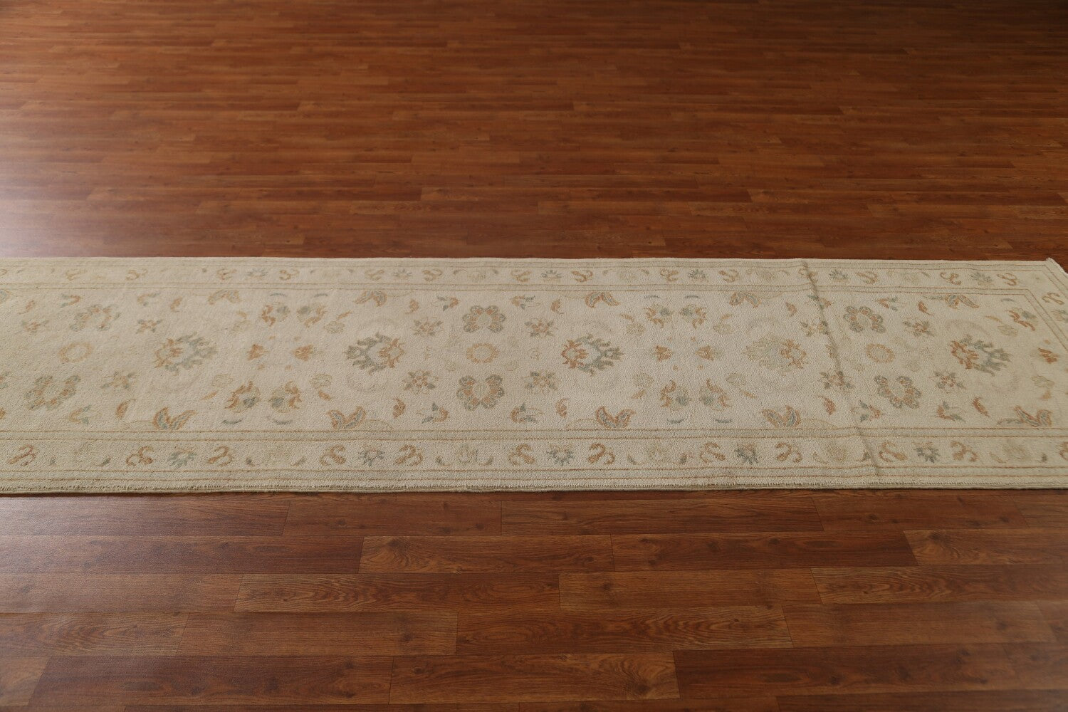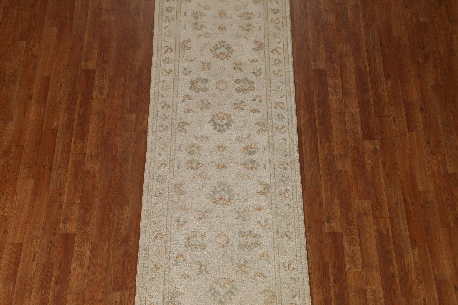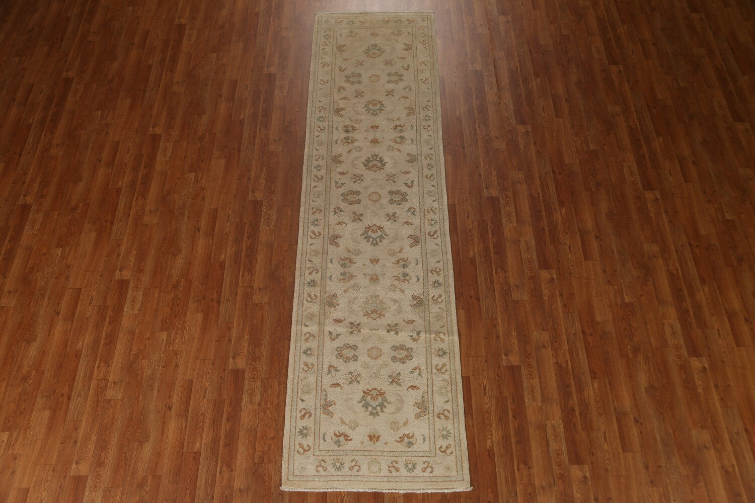 A Beautiful Genuine Turkey Oushak rug is Hand Knotted by skillful weavers in Turkey with 100% Wool Material. This rug is in condition. dimensions are 10' 3'' X 2' 8'' in foot and 312 X 81 in centimeter. the primary color is Beige & Ivories.