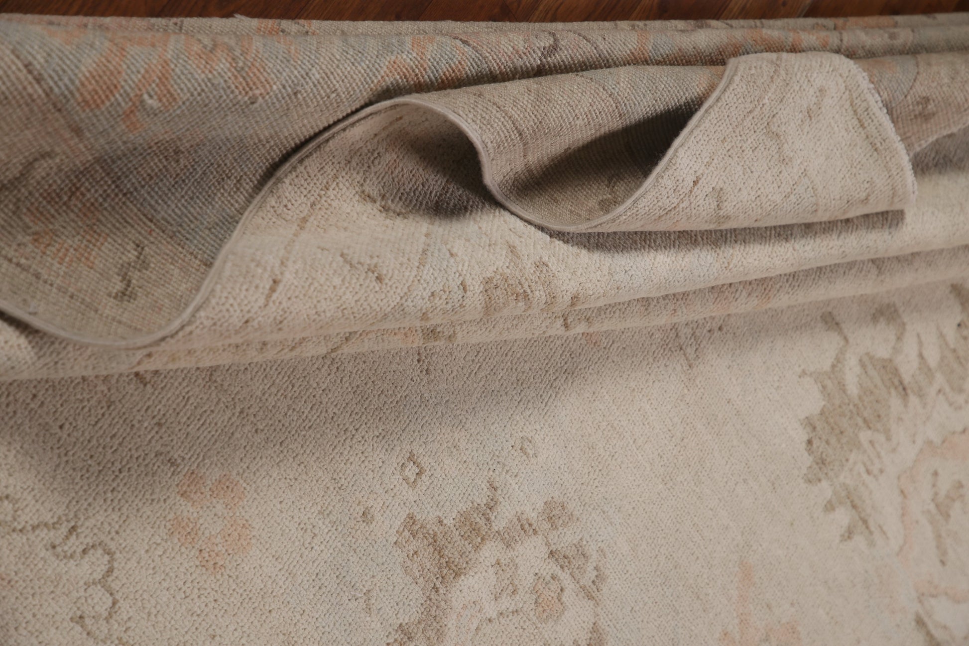 A Beautiful Genuine Turkey Oushak rug is Hand Knotted by skillful weavers in Turkey with 100% Wool Material. This rug is in New, First Quality condition. dimensions are 10' 1'' X 8' 1'' in foot and 307 X 246 in centimeter. the primary color is Beige & Ivories.