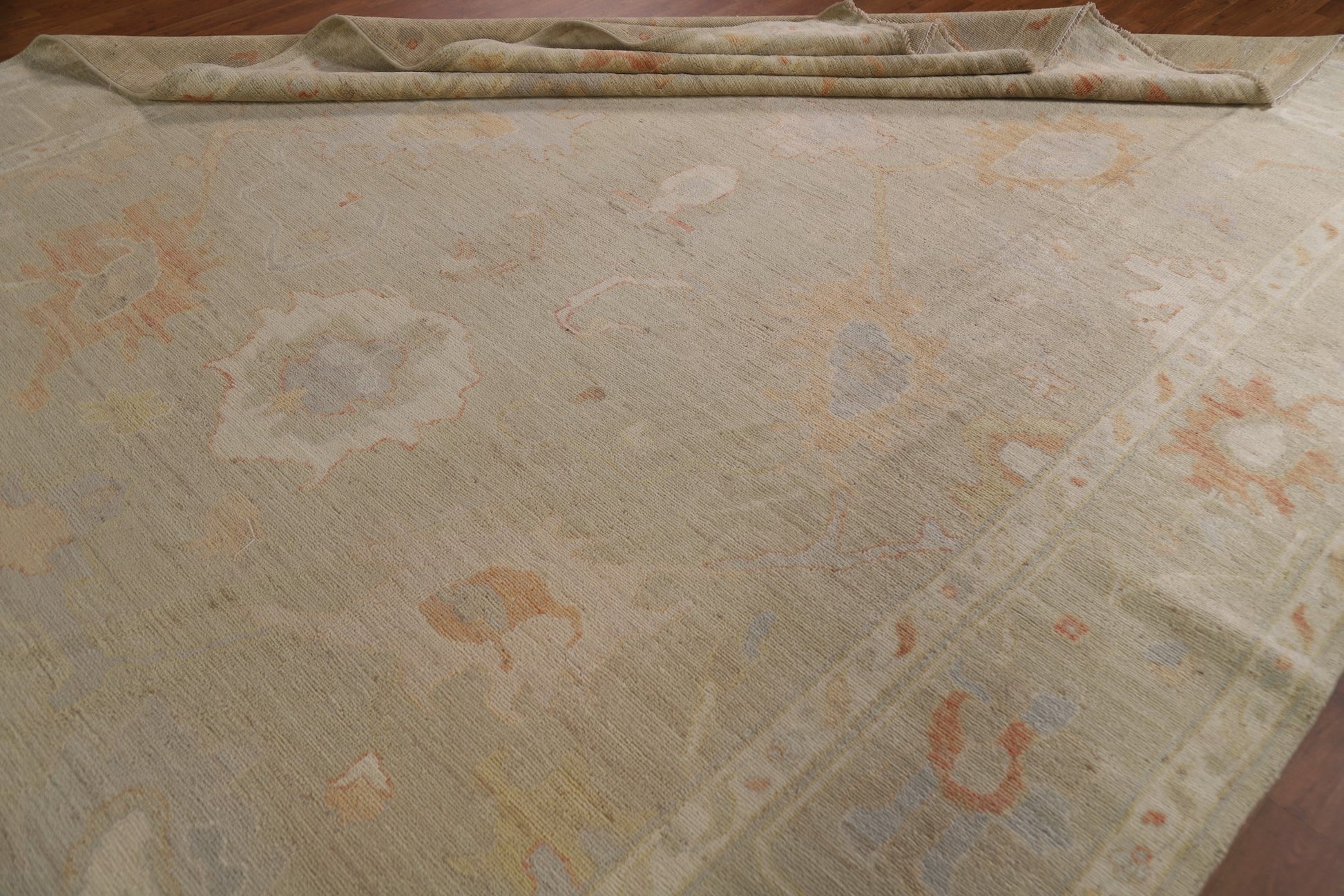 A Beautiful Genuine Turkey Oushak rug is Hand Knotted by skillful weavers in Turkey with 100% Wool Material. This rug is in New, First Quality condition. dimensions are 11' 8'' X 9' 2'' in foot and 356 X 279 in centimeter. the primary color is Green.