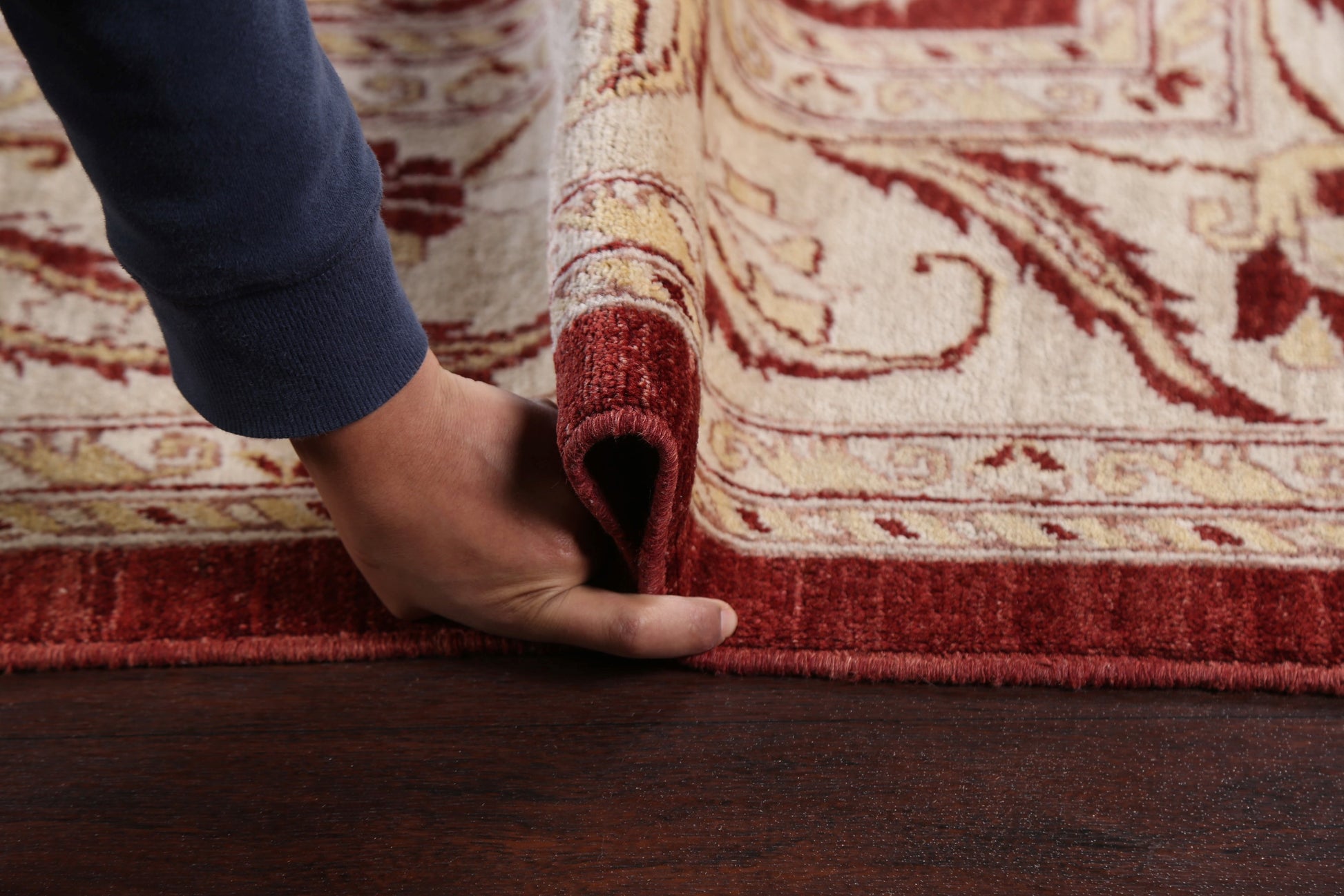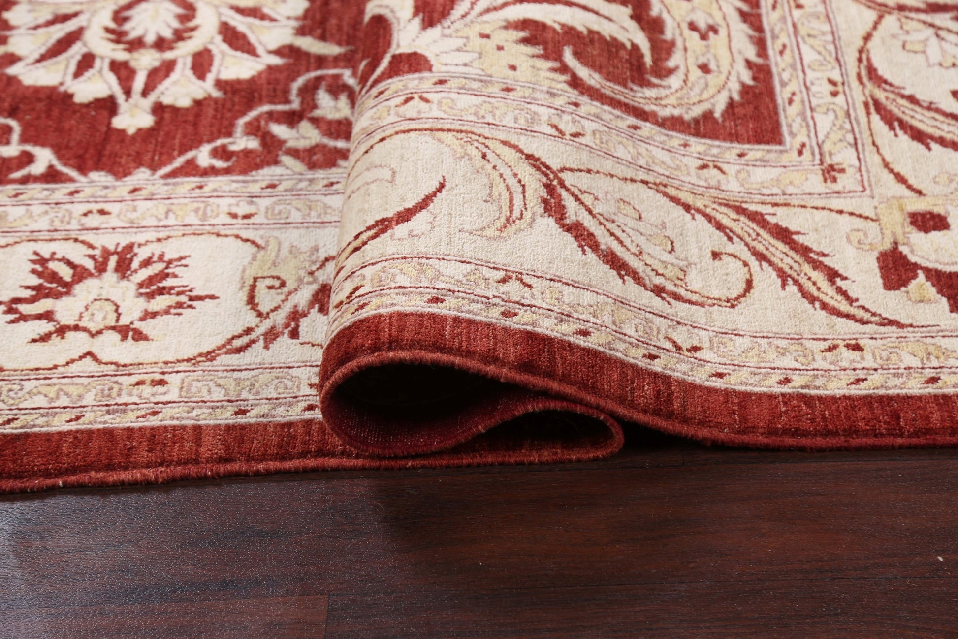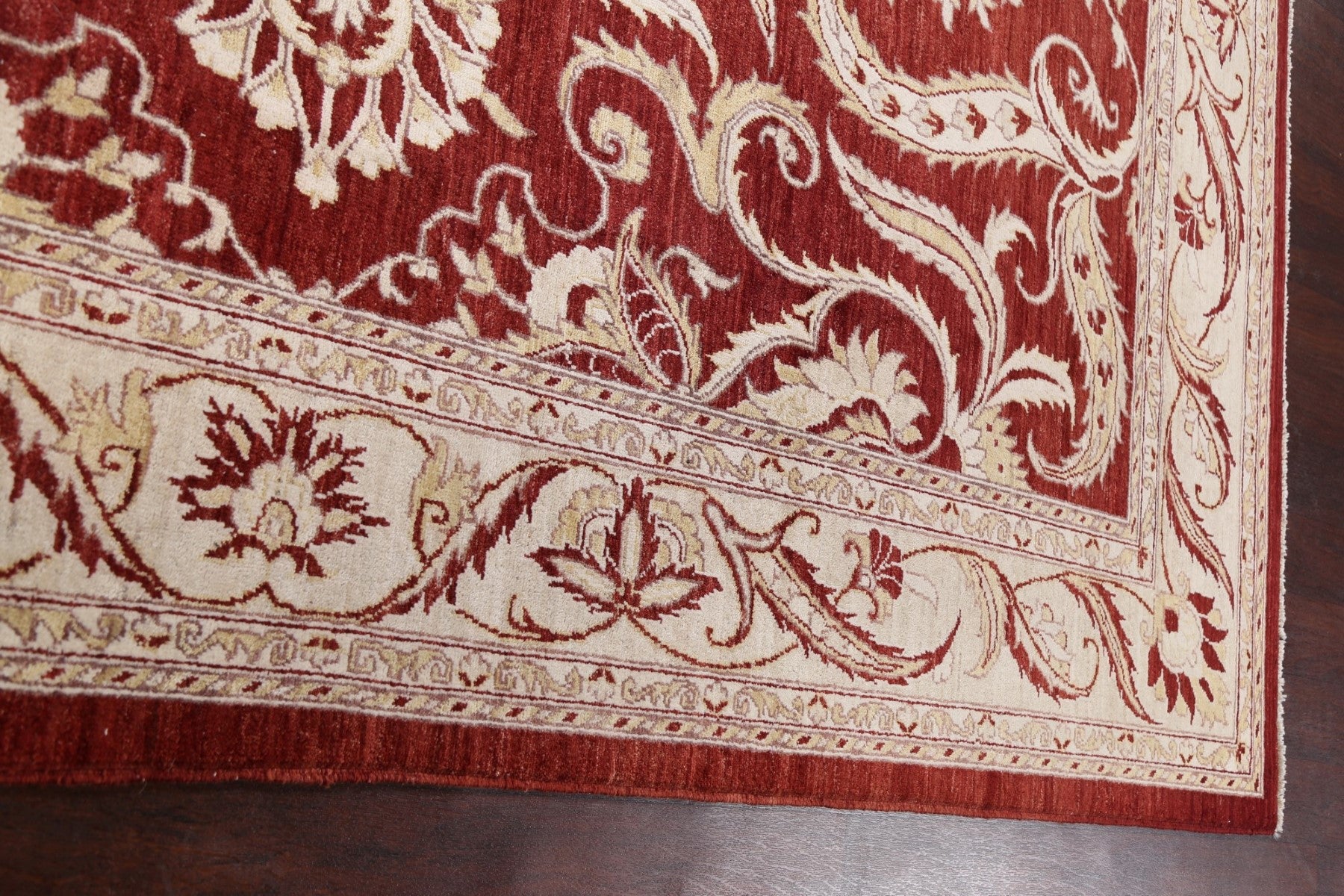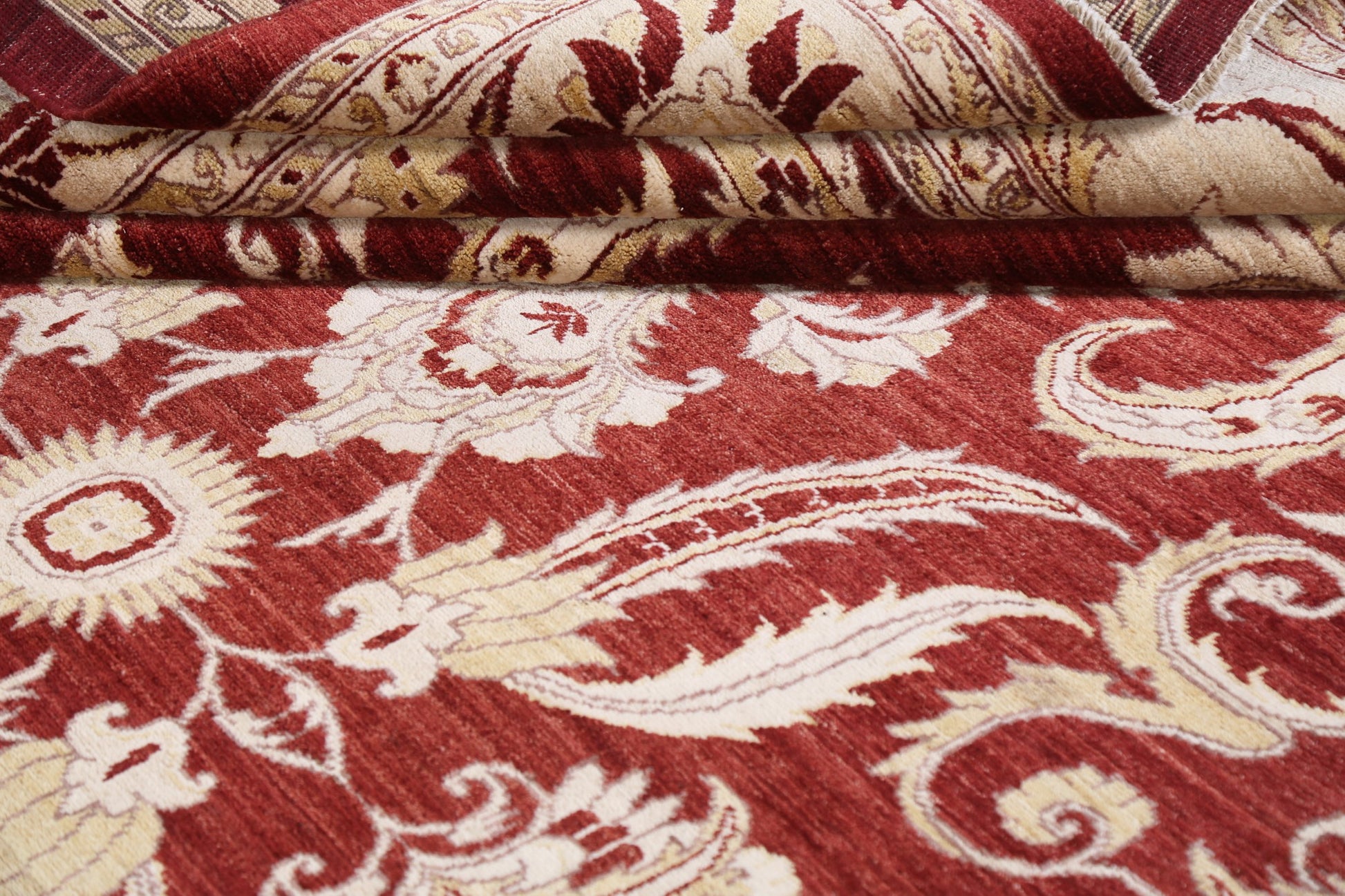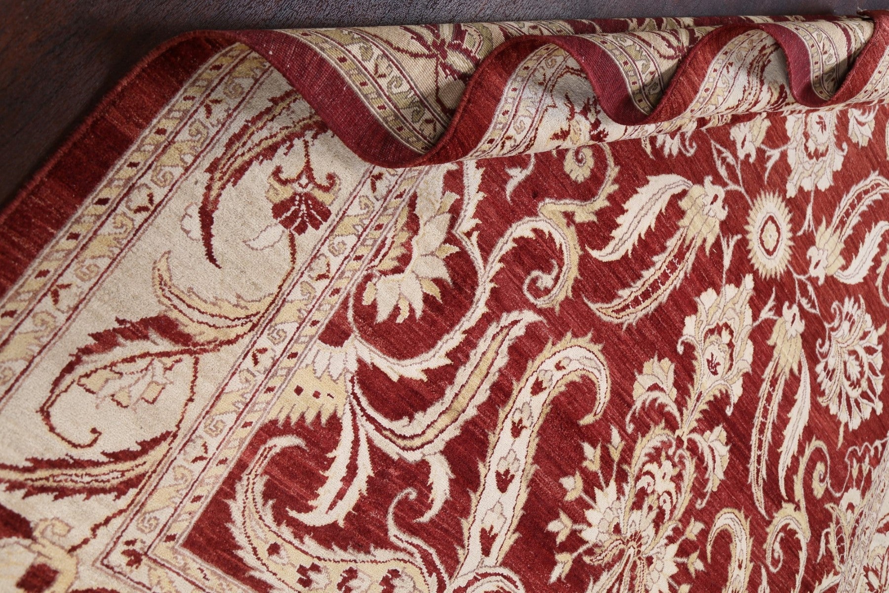 A Beautiful Genuine Pakistan Peshawar-Chobi rug is Hand Knotted by skillful weavers in Pakistan with 100% Wool Material. This rug is in New, First Quality condition. dimensions are 10' 3'' X 8' 0'' in foot and 312 X 244 in centimeter. the primary color is Red.