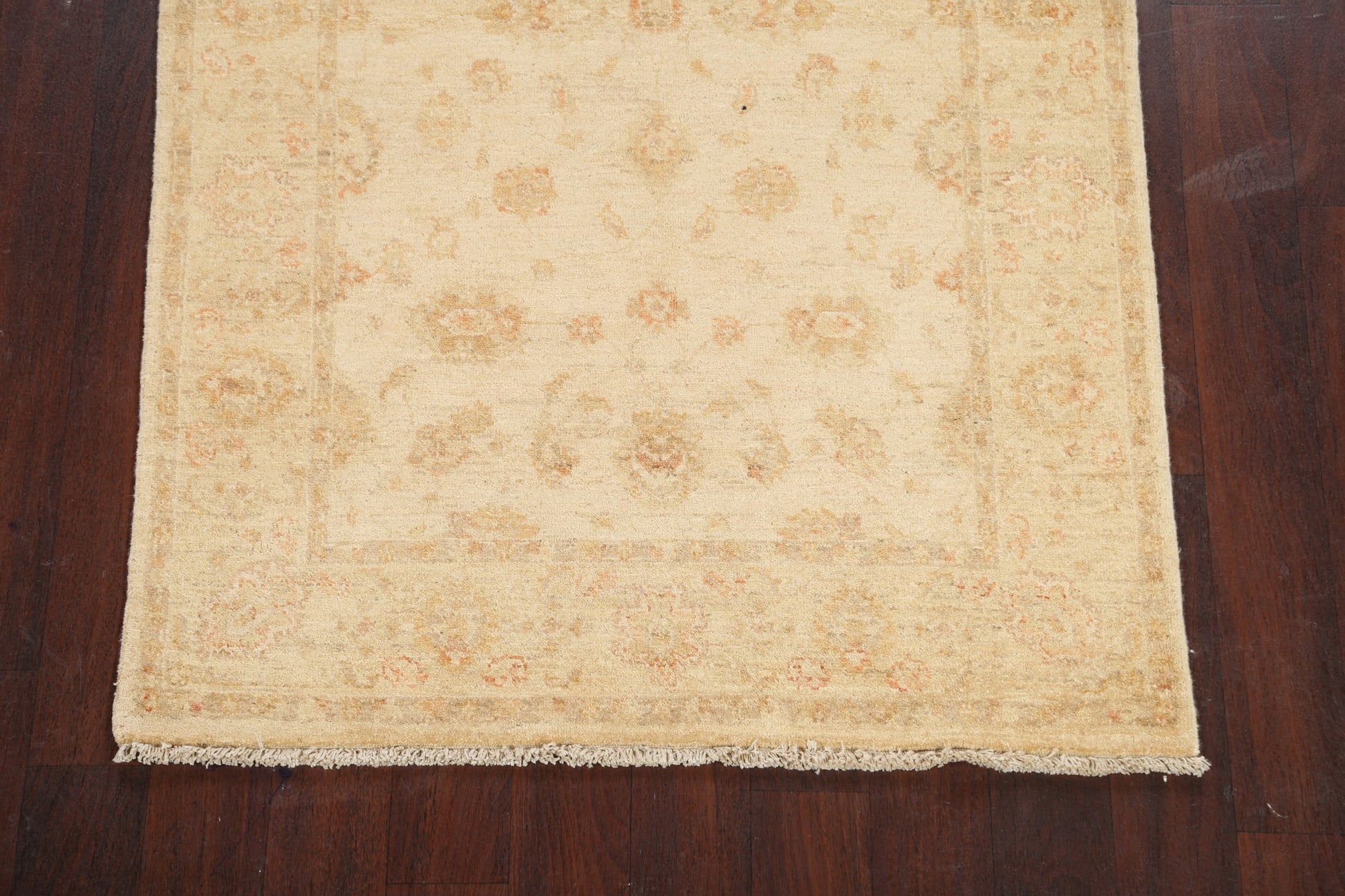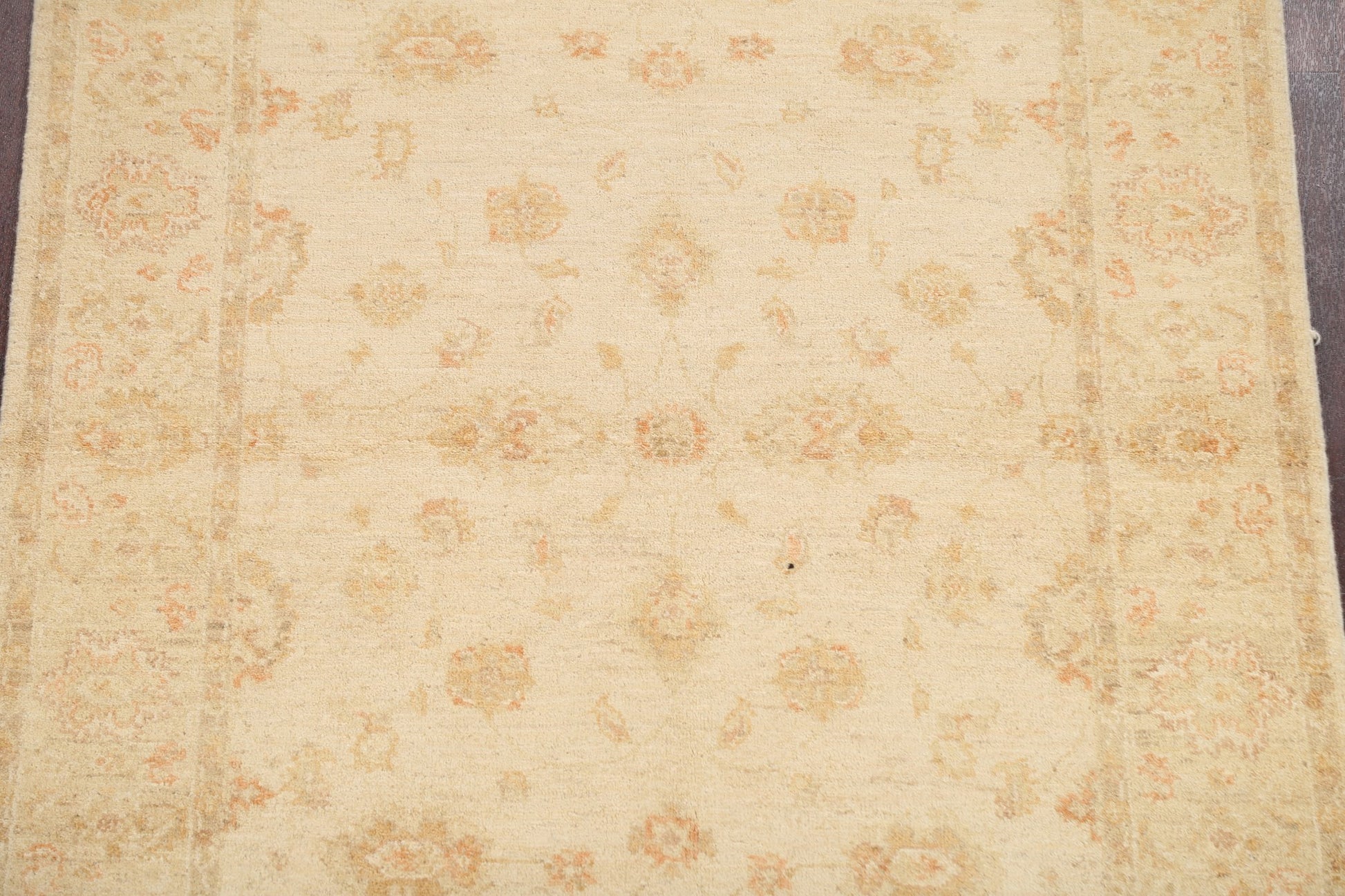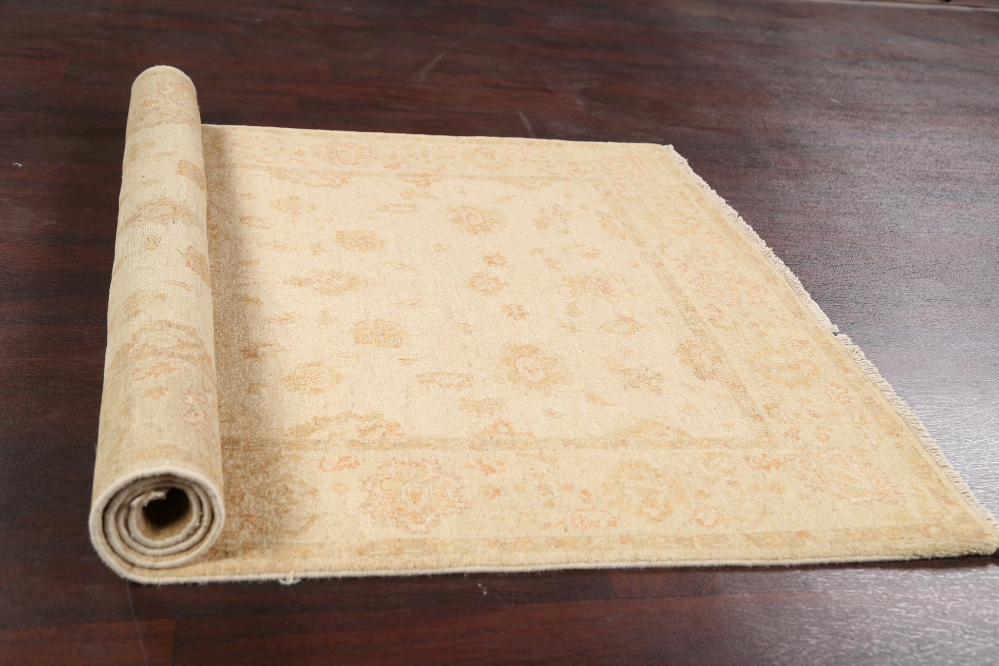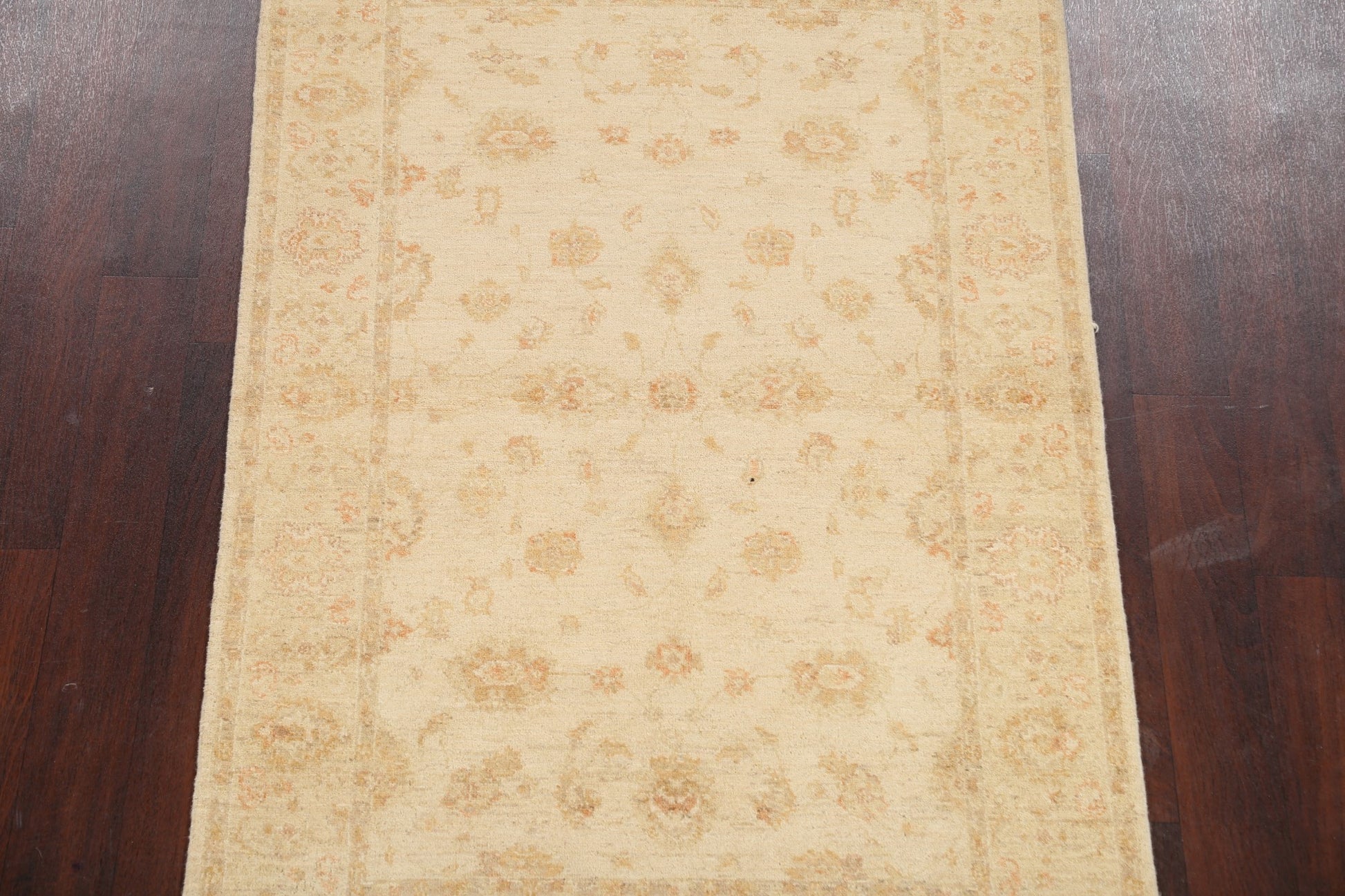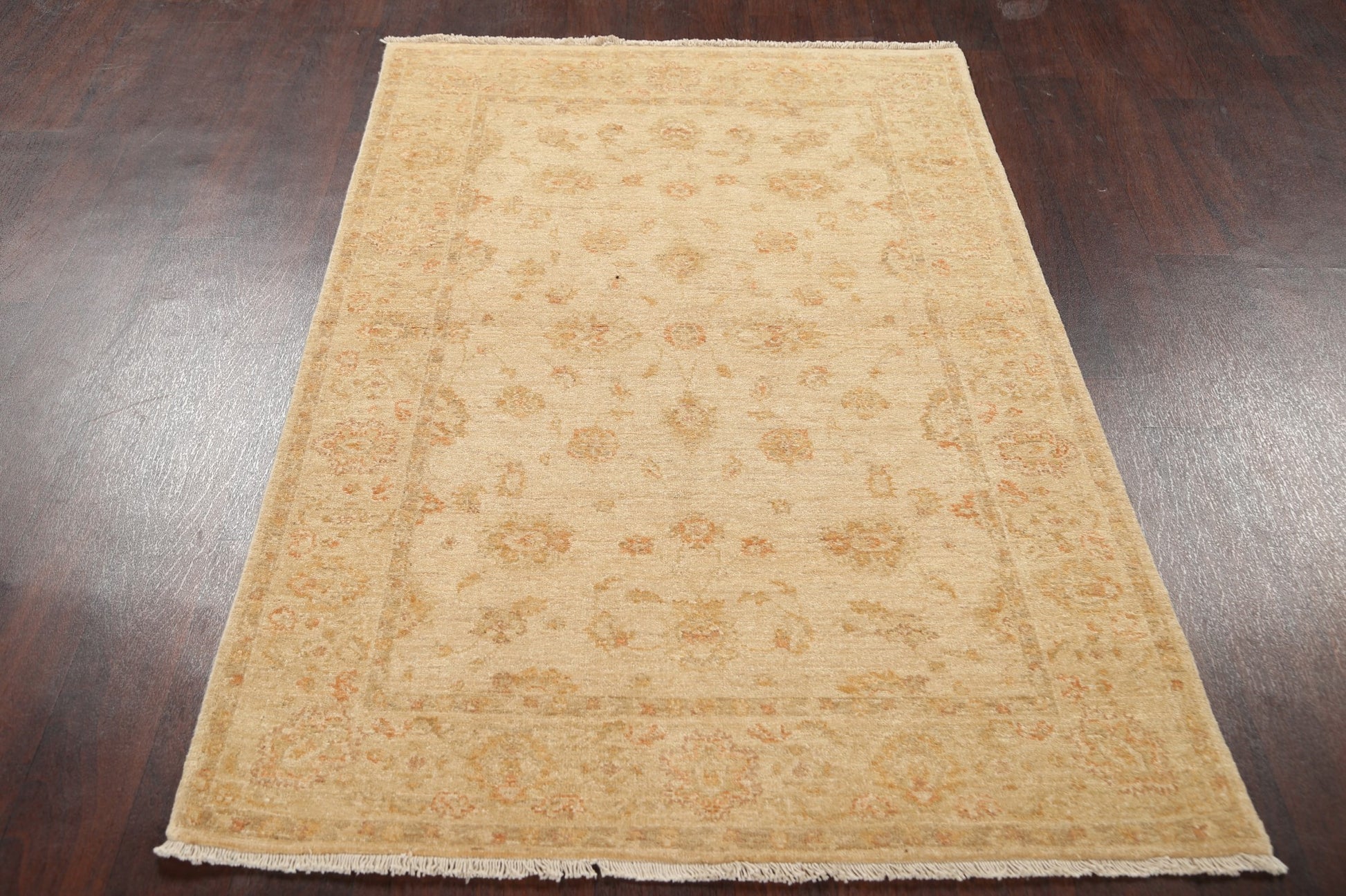 A Beautiful Genuine Pakistan Chobi-Peshawar rug is Hand Knotted by skillful weavers in Pakistan with 100% Wool Material. This rug is in New, First Quality condition. dimensions are 5' 10'' X 3' 9'' in foot and 178 X 114 in centimeter. the primary color is Beige & Ivories.
