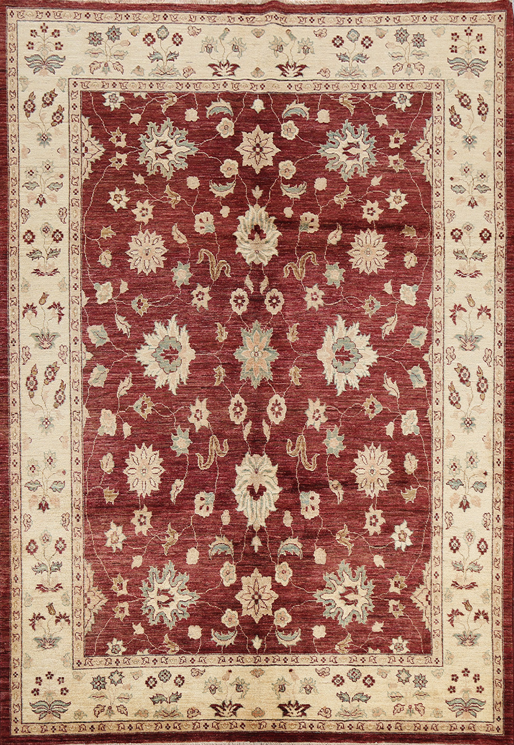 A Beautiful Genuine Pakistan Peshawar rug is Hand Knotted by skillful weavers in Pakistan with 100% Wool Material. This rug is in New, First Quality condition. dimensions are 8' 4'' X 6' 7'' in foot and 254 X 201 in centimeter. the primary color is Red.