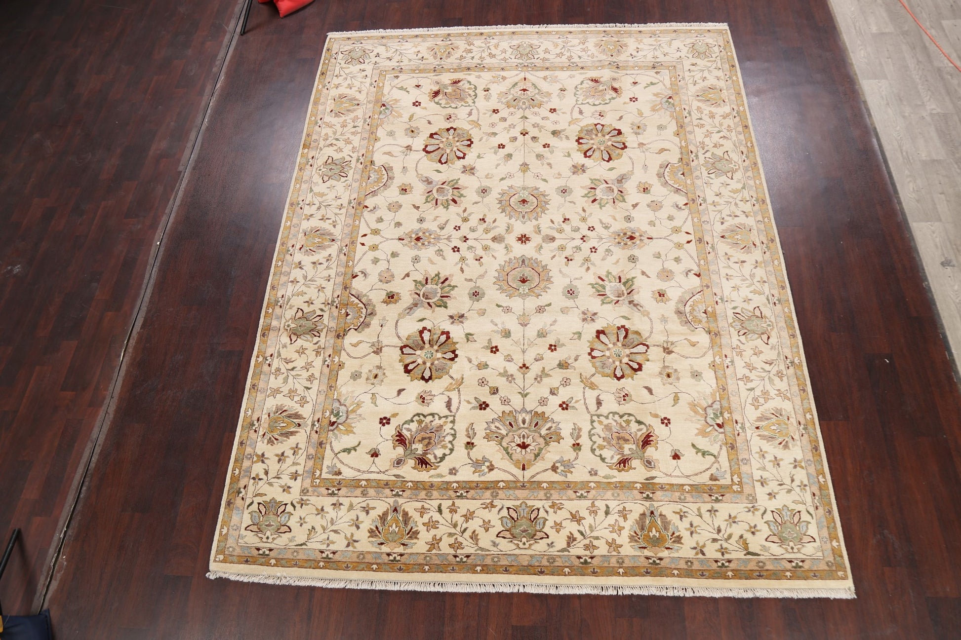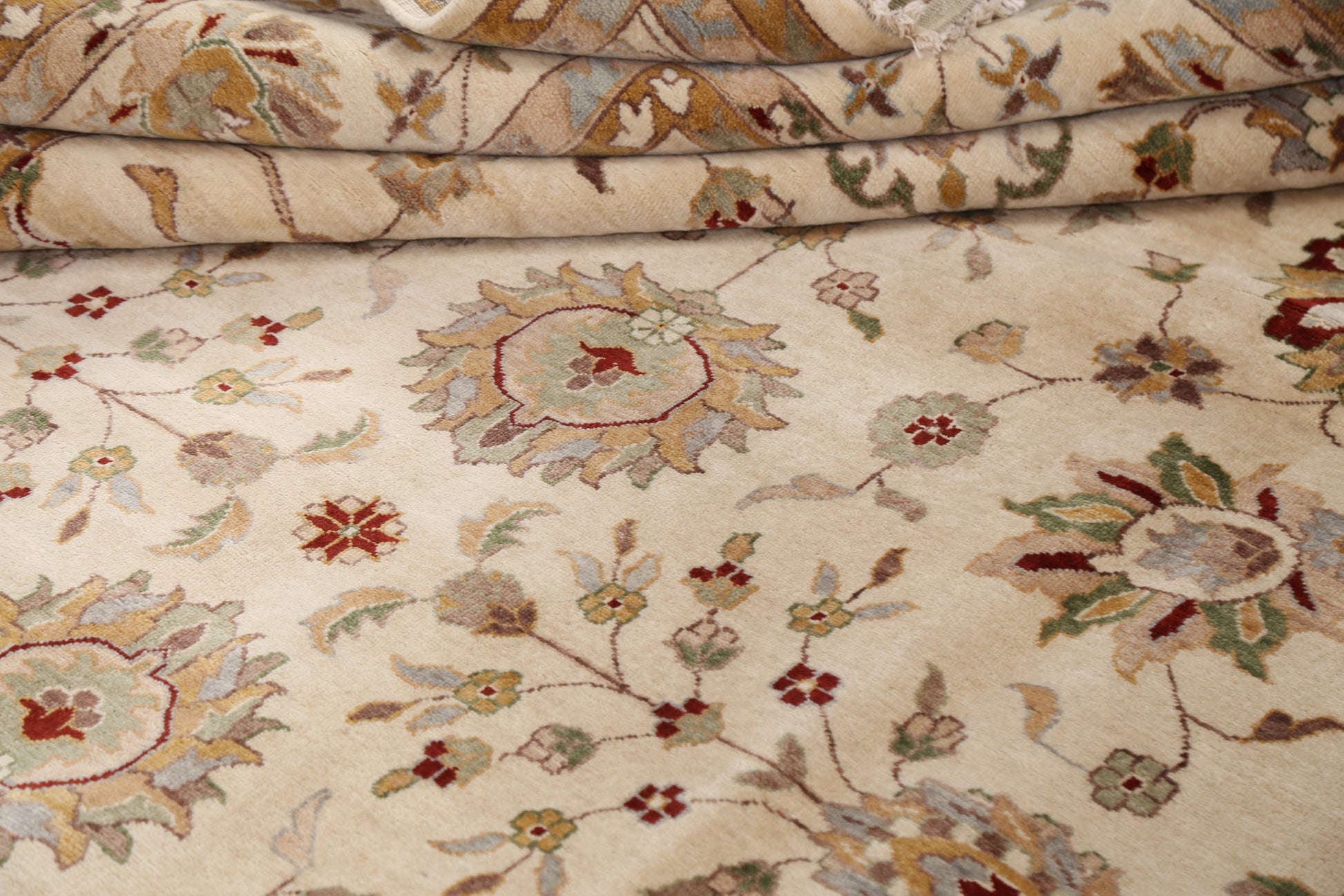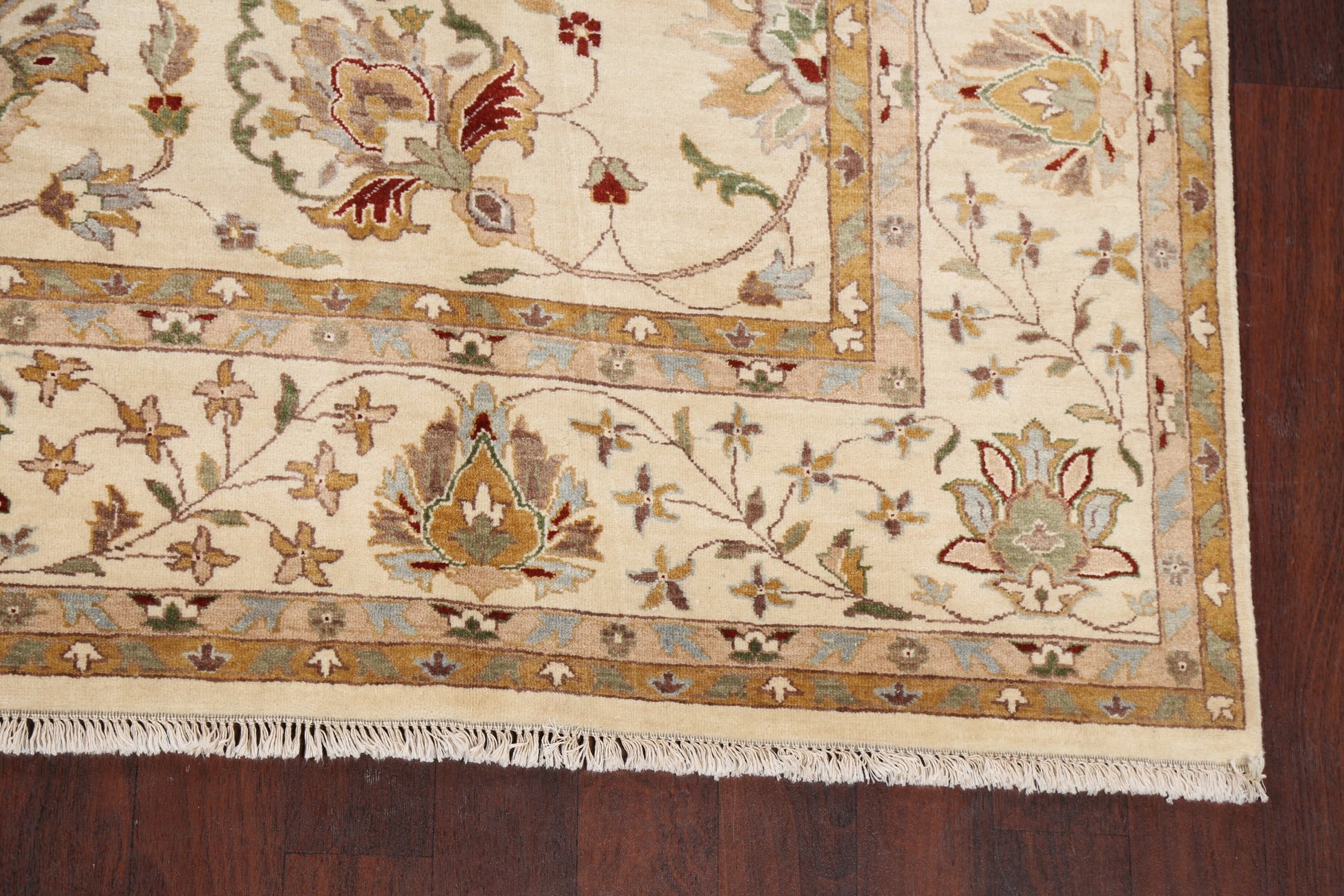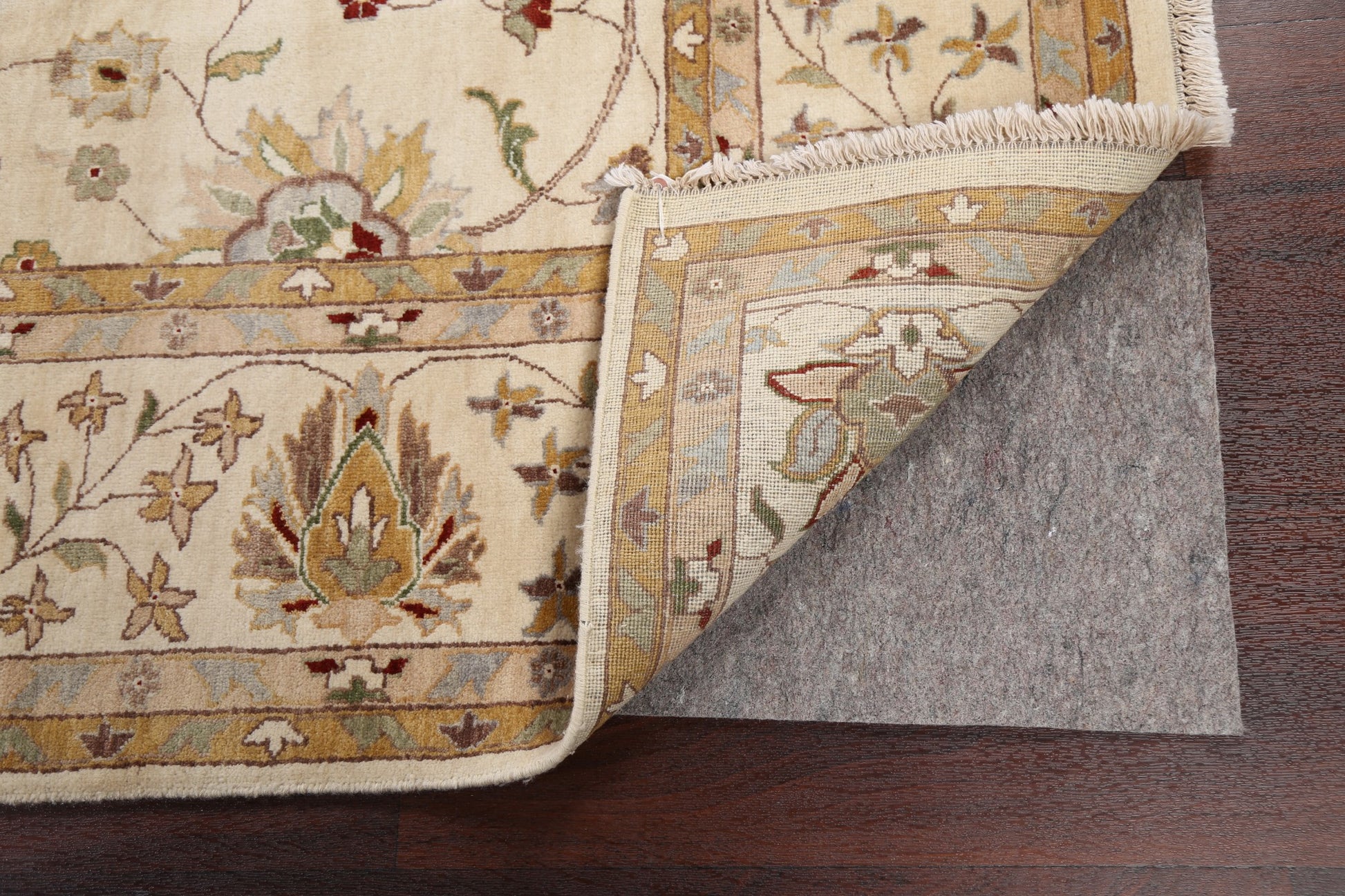 A Beautiful Genuine Pakistan Peshawar rug is Hand Knotted by skillful weavers in Pakistan with 100% Wool Material. This rug is in New, First Quality condition. dimensions are 10' 5'' X 8' 0'' in foot and 318 X 244 in centimeter. the primary color is Beige & Ivories.
