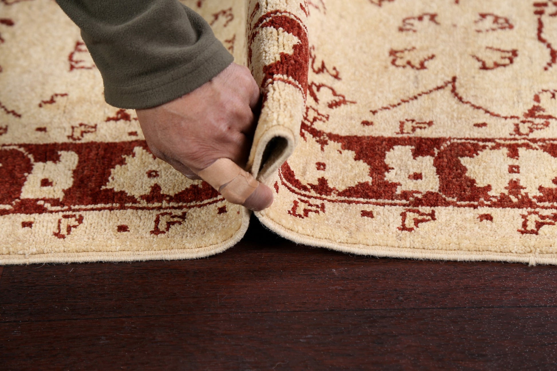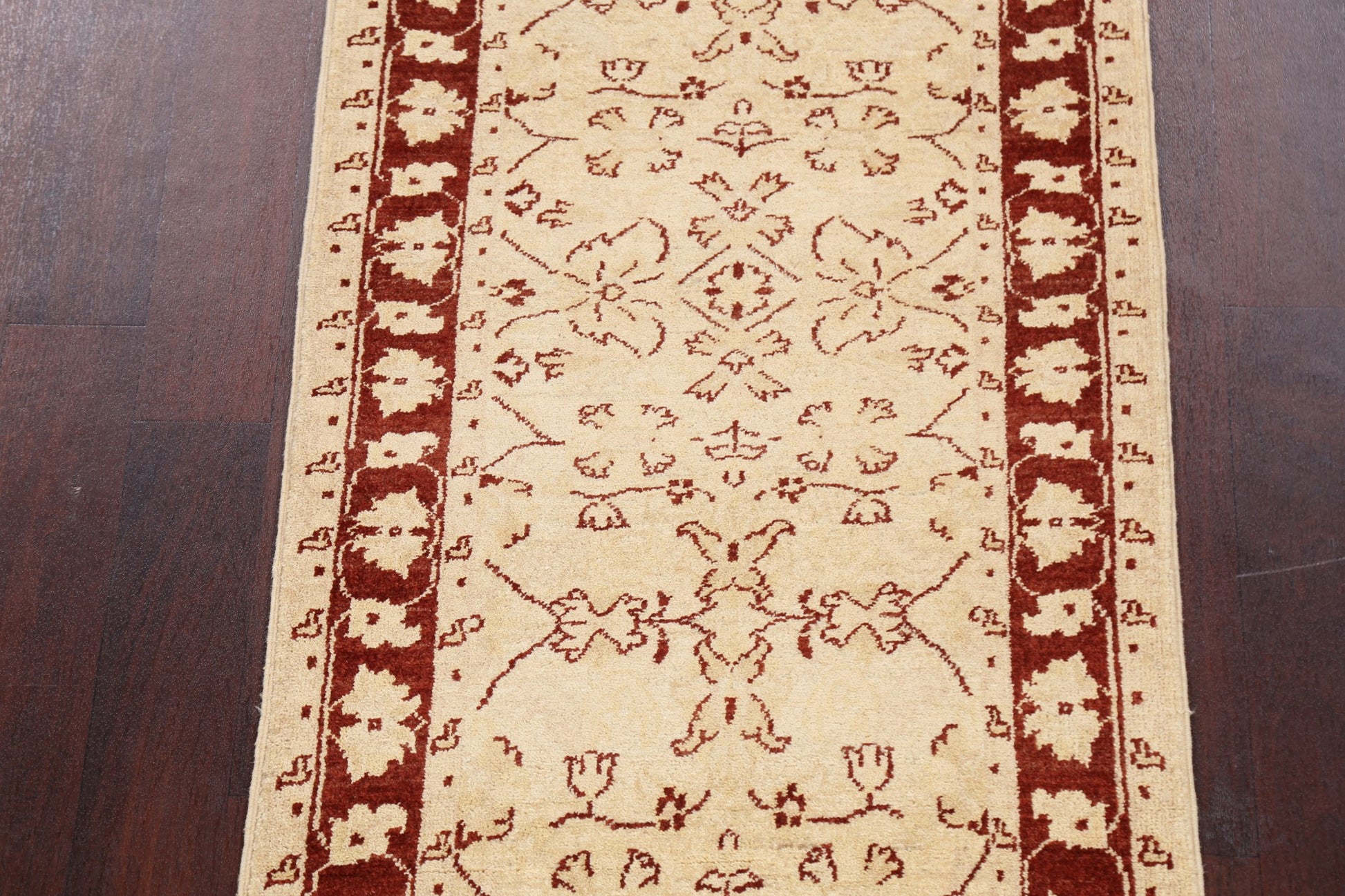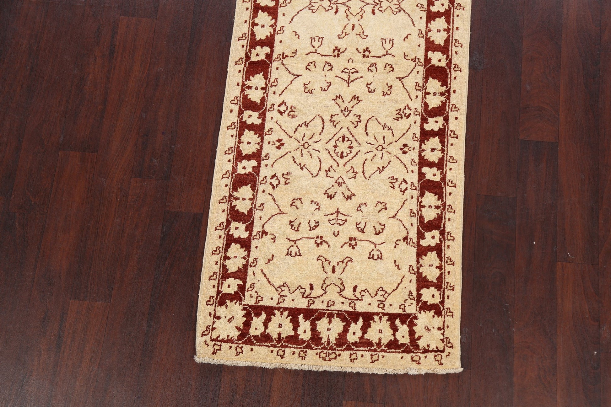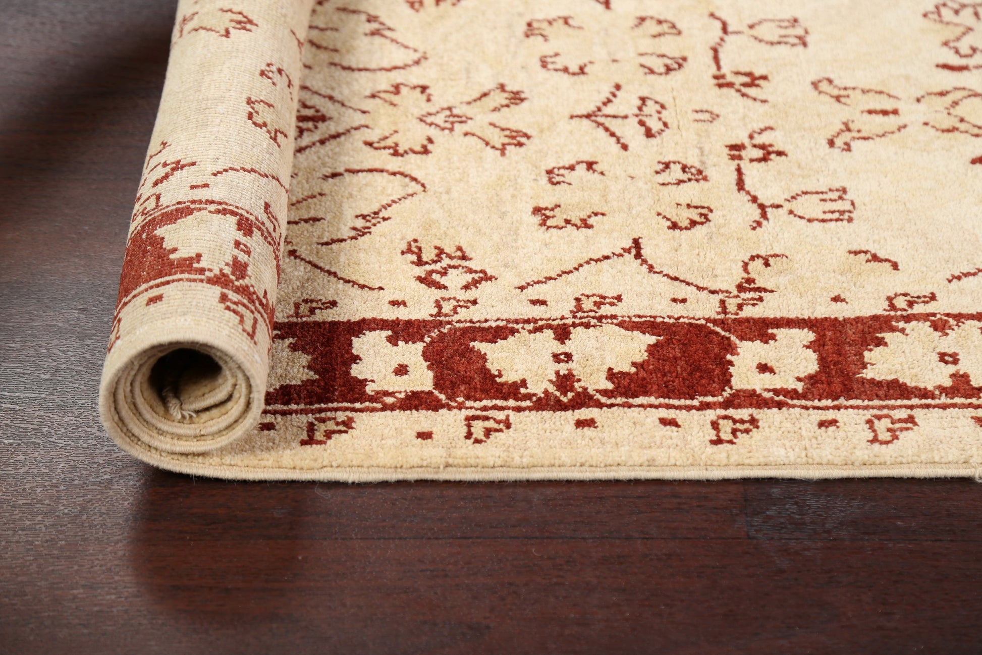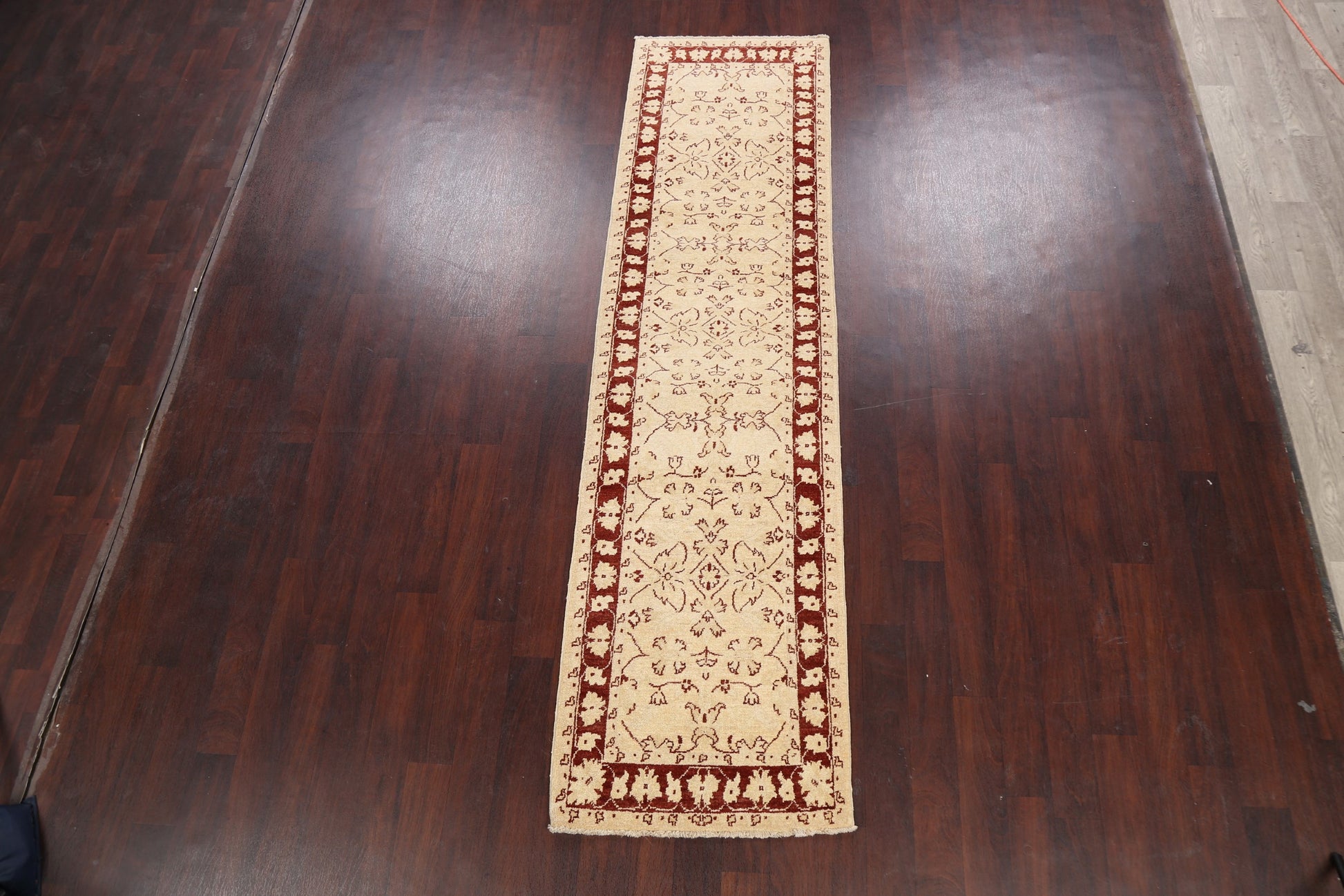 A Beautiful Genuine Pakistan Peshawar rug is Hand Knotted by skillful weavers in Pakistan with 100% Wool Material. This rug is in New, First Quality condition. dimensions are 10' 0'' X 2' 8'' in foot and 305 X 81 in centimeter. the primary color is Beige & Ivories.