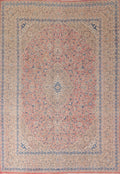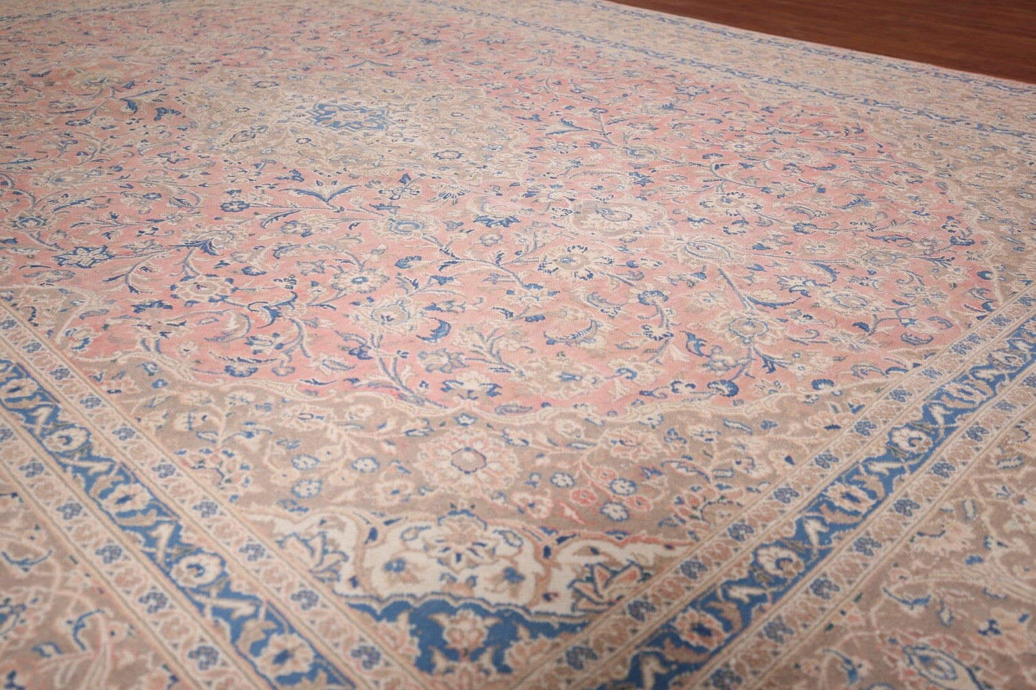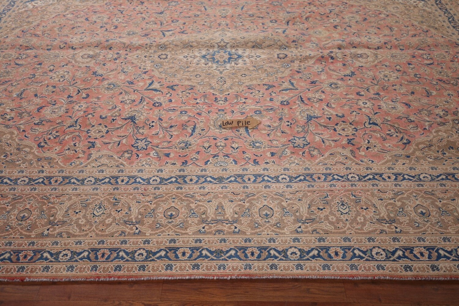 A Beautiful Genuine Persia ( Persia ) Kashan rug is Hand Knotted by skillful weavers in Persia ( Persia ) with 100% Wool Material. This rug is in Very Good ( Low Pile ) condition. dimensions are 12' 10'' X 9' 6'' in foot and 391 X 290 in centimeter. the primary color is Pink.