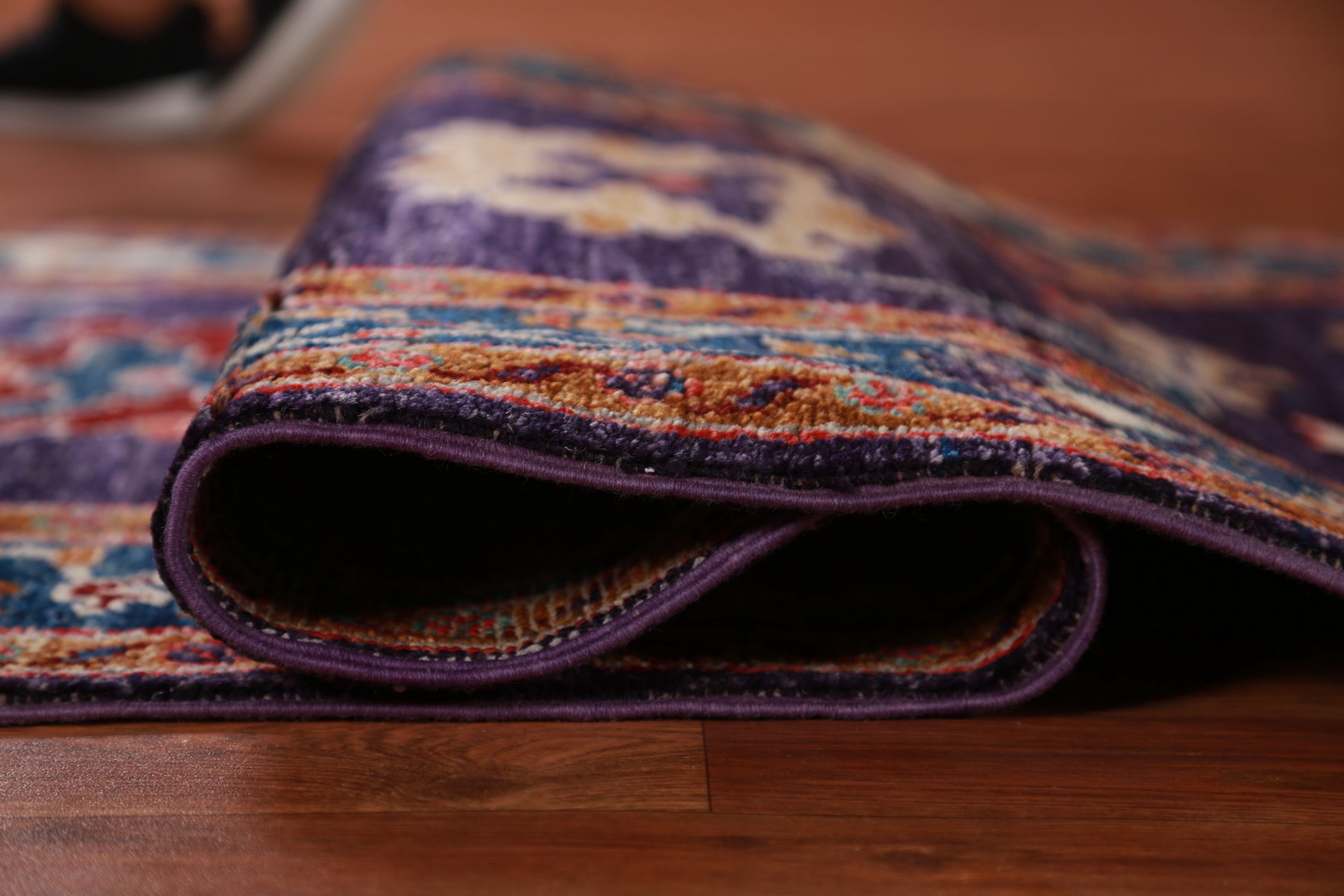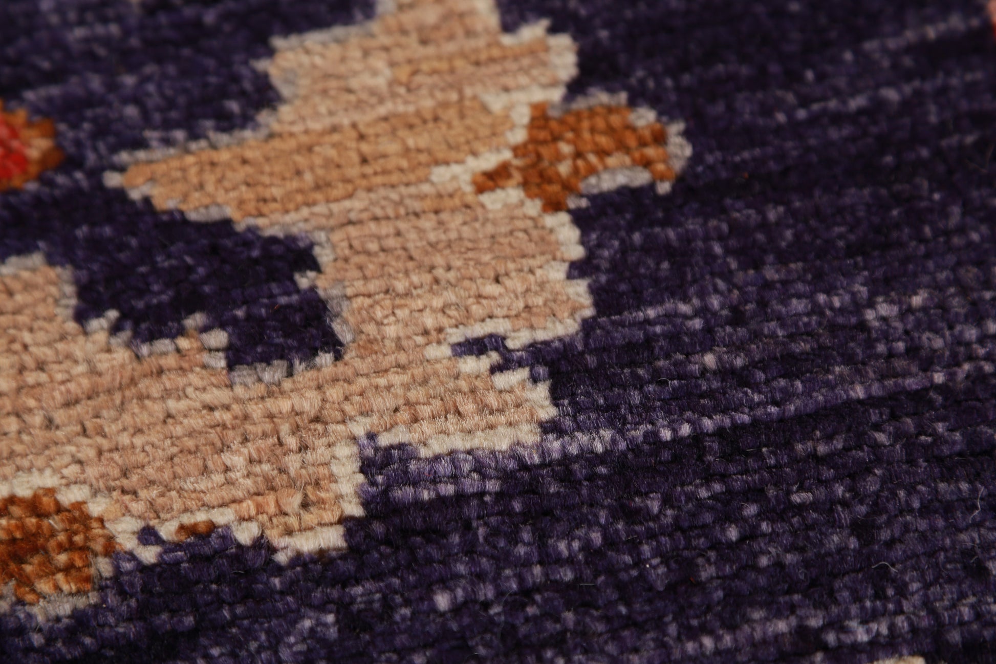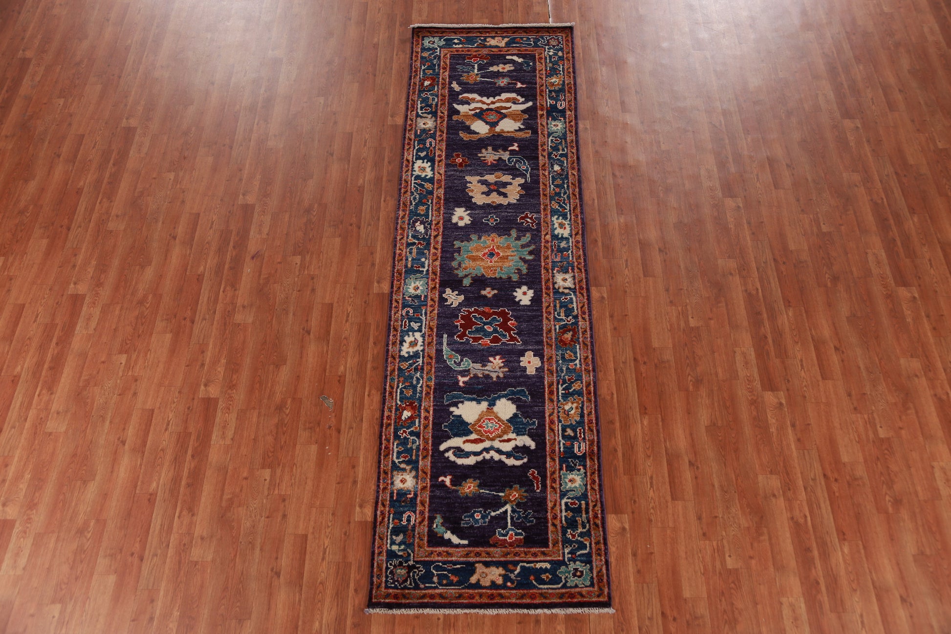 Floral Purple Oushak Vegetable Dye Runner Rug 3x10