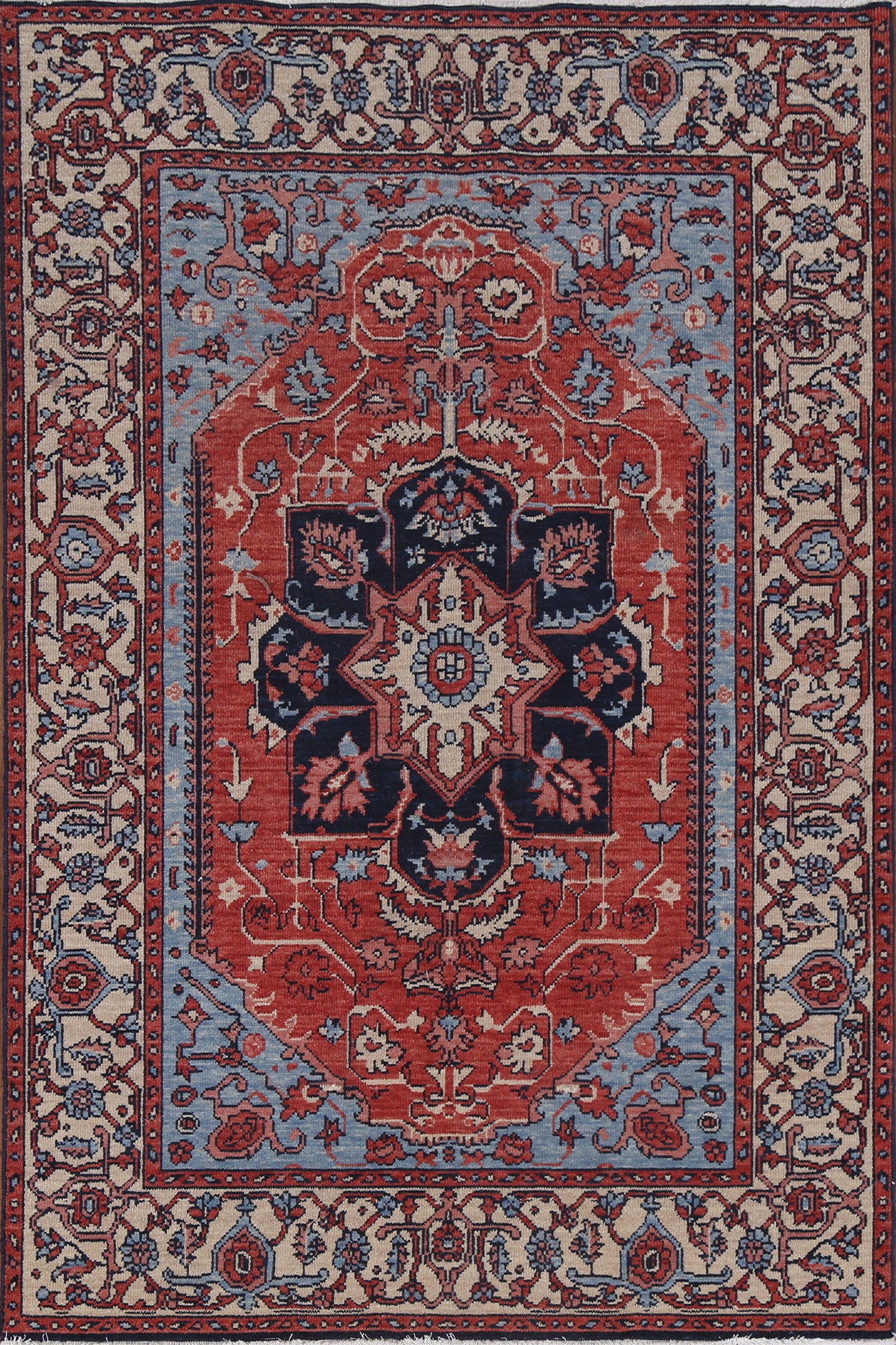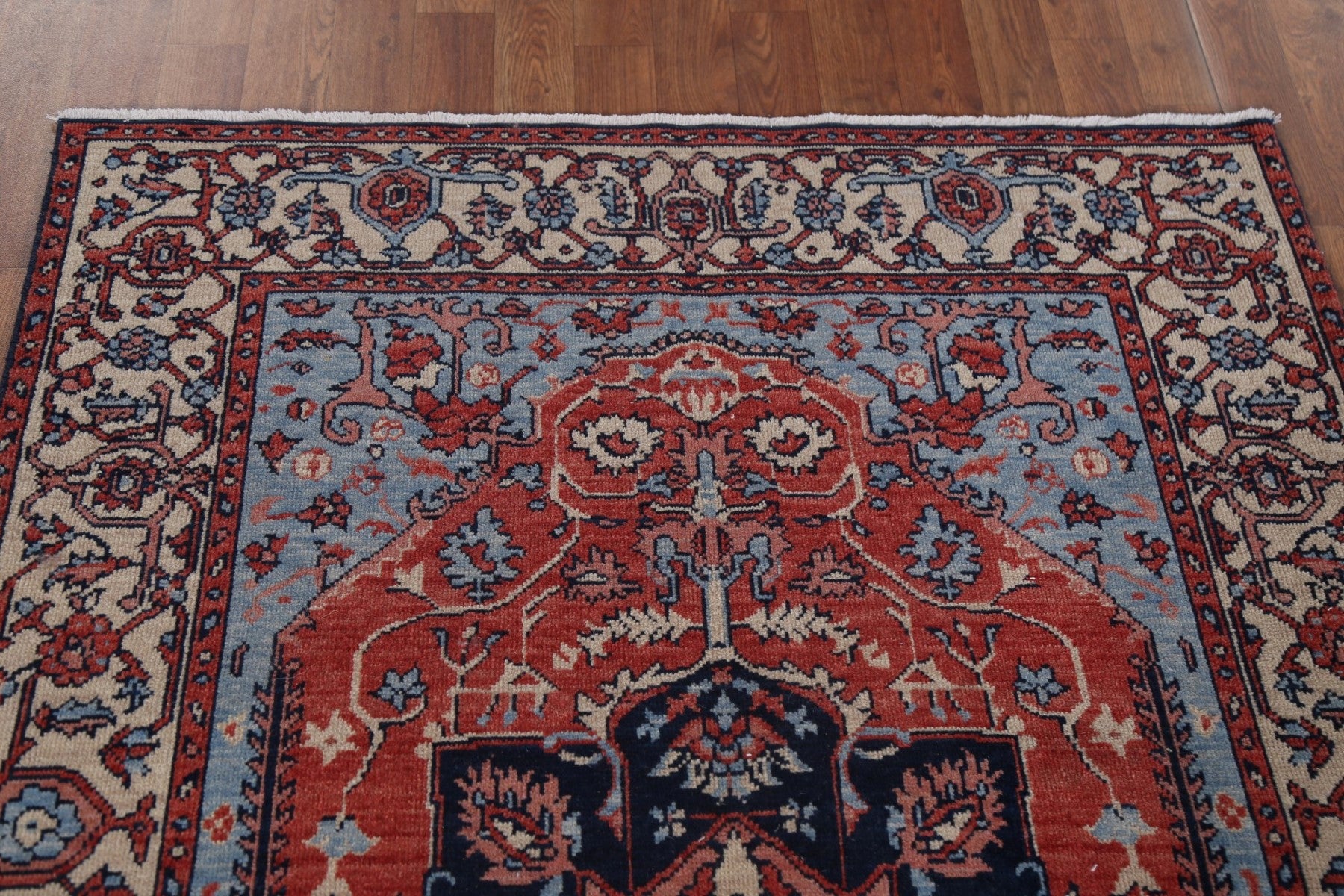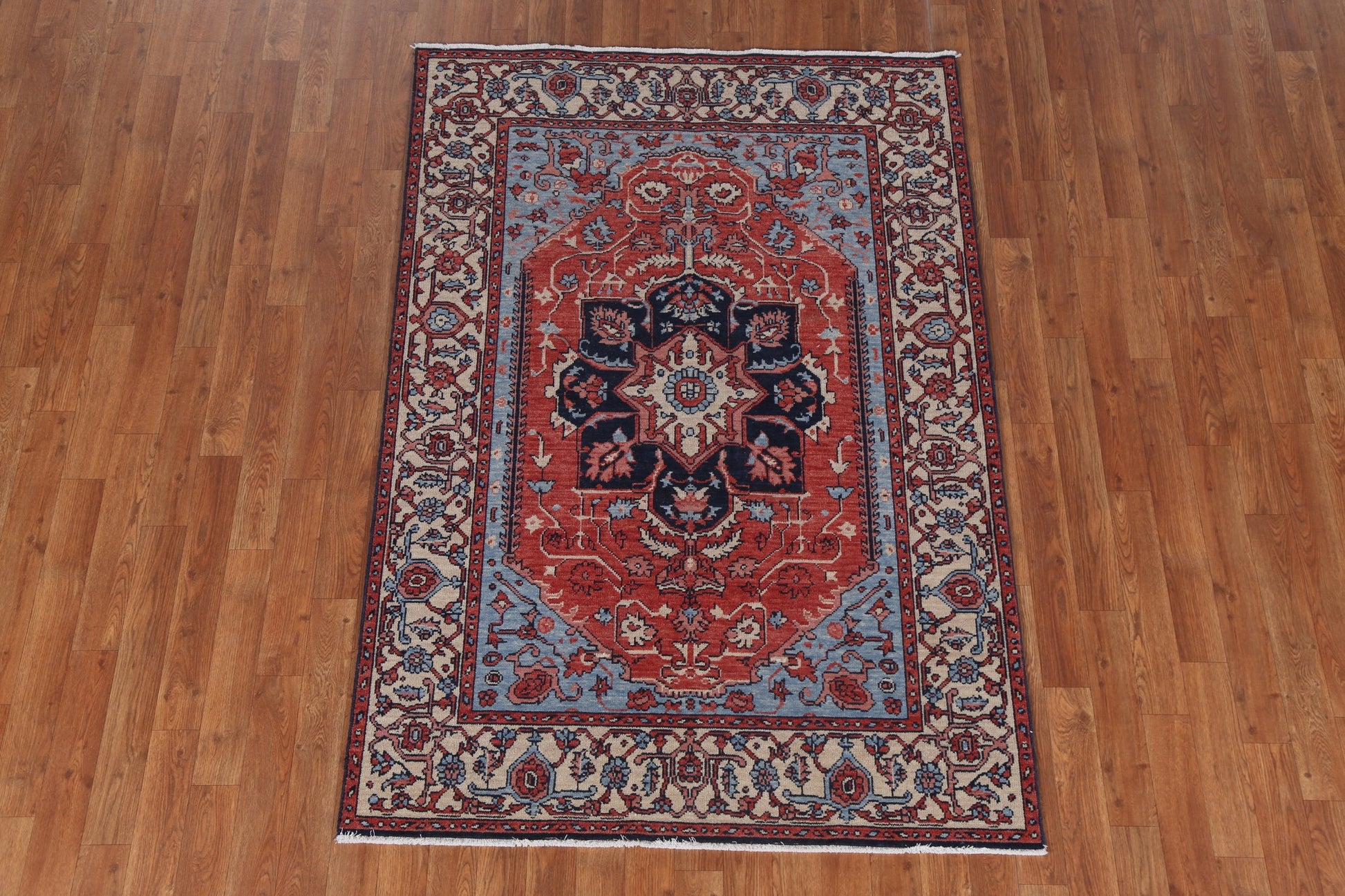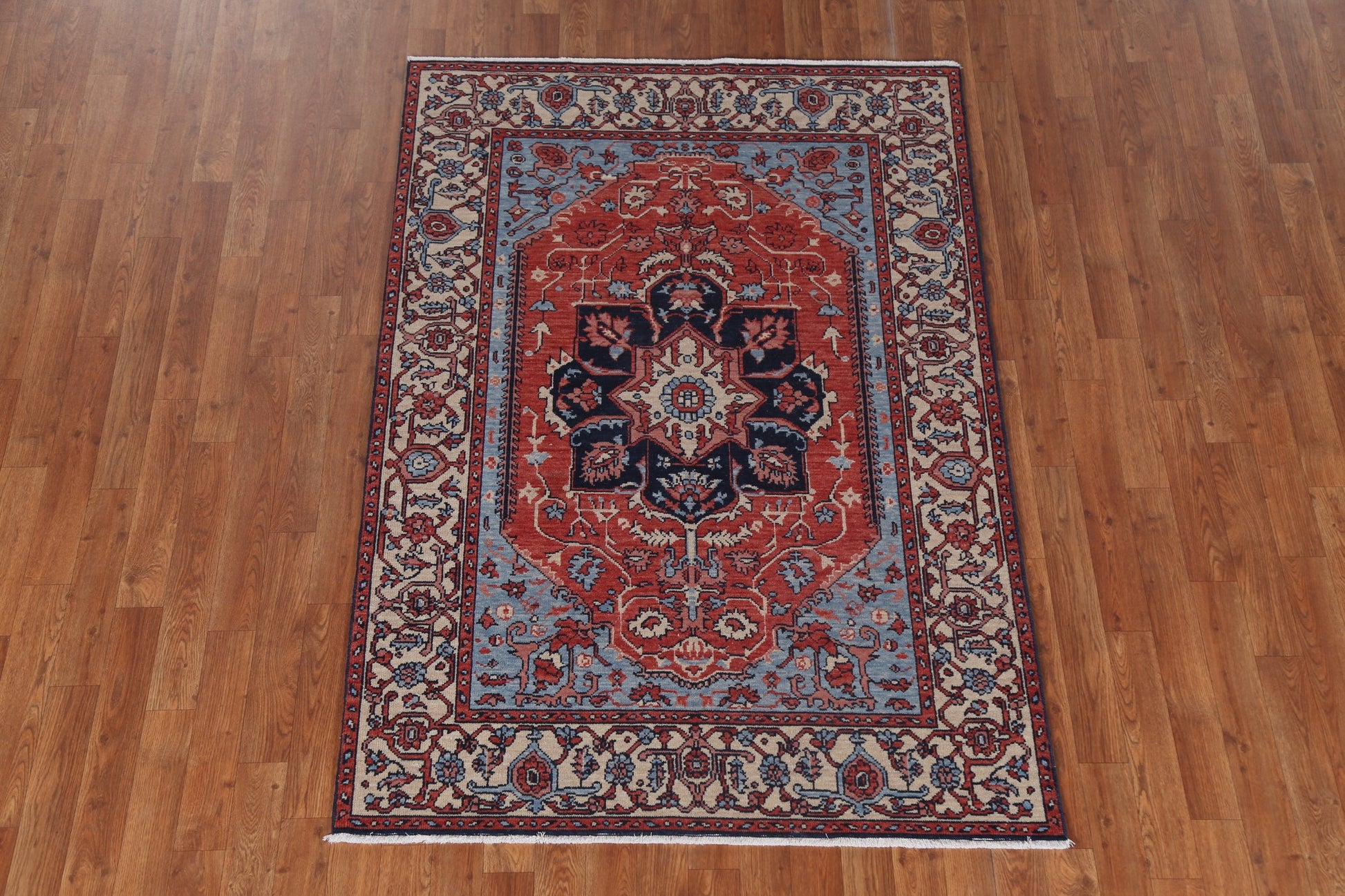 Floral Red Heriz Serapi Turkish Wool Rug 4x6