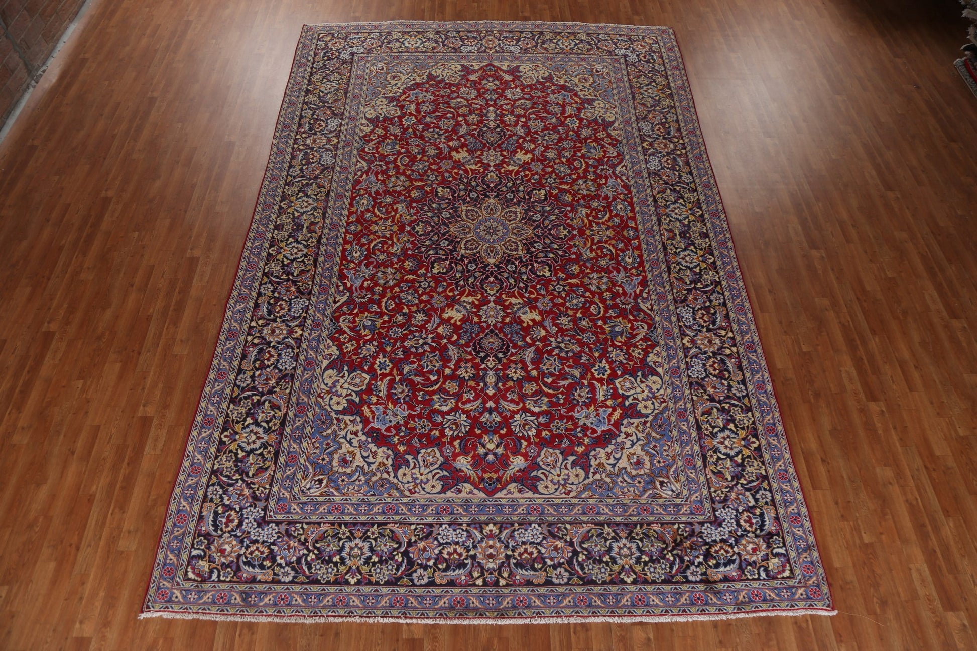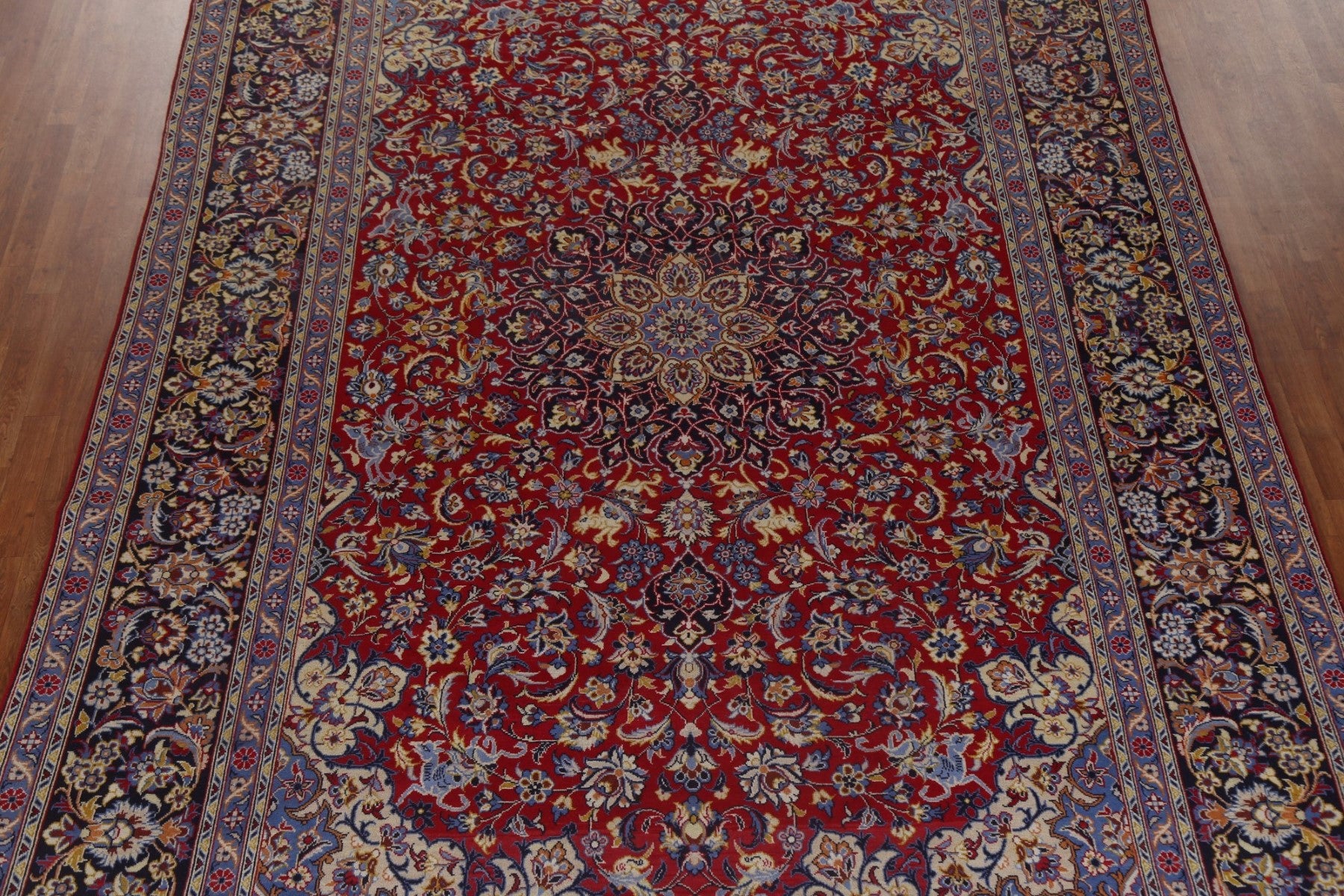 A Beautiful Genuine Persia ( Persia ) Isfahan rug is Hand Knotted by skillful weavers in Persia ( Persia ) with 100% Wool Material. This rug is in Very Good condition. dimensions are 14' 2'' X 9' 3'' in foot and 432 X 282 in centimeter. the primary color is Red.