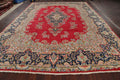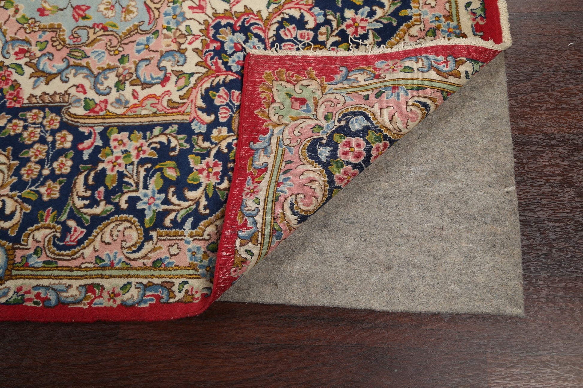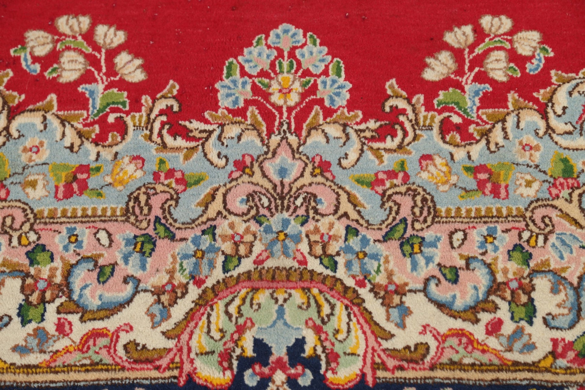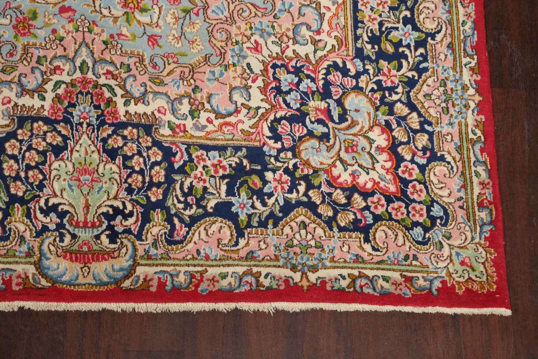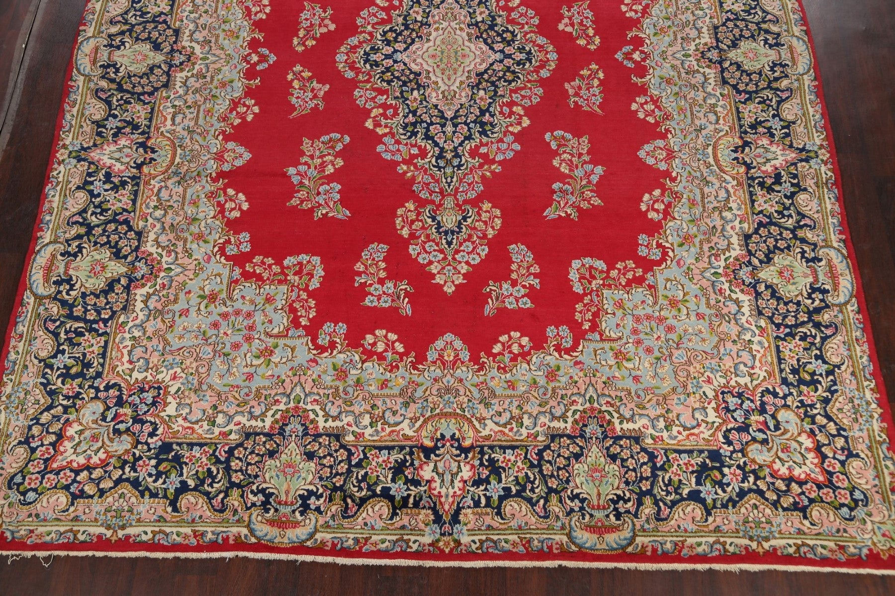 A Beautiful Genuine Persia ( Persia ) Kerman rug is Hand Knotted by skillful weavers in Persia ( Persia ) with 100% Wool Material. This rug is in Very Good (Low Pile Spots) condition. dimensions are 13' 4'' X 9' 11'' in foot and 406 X 302 in centimeter. the primary color is Red.
