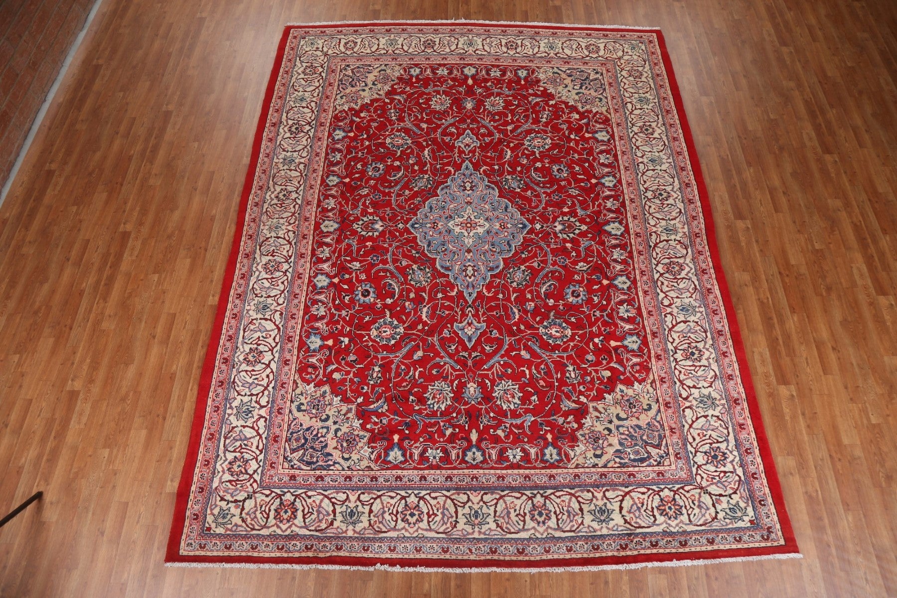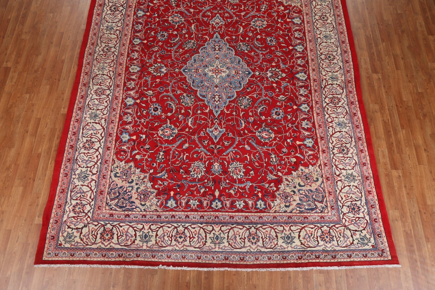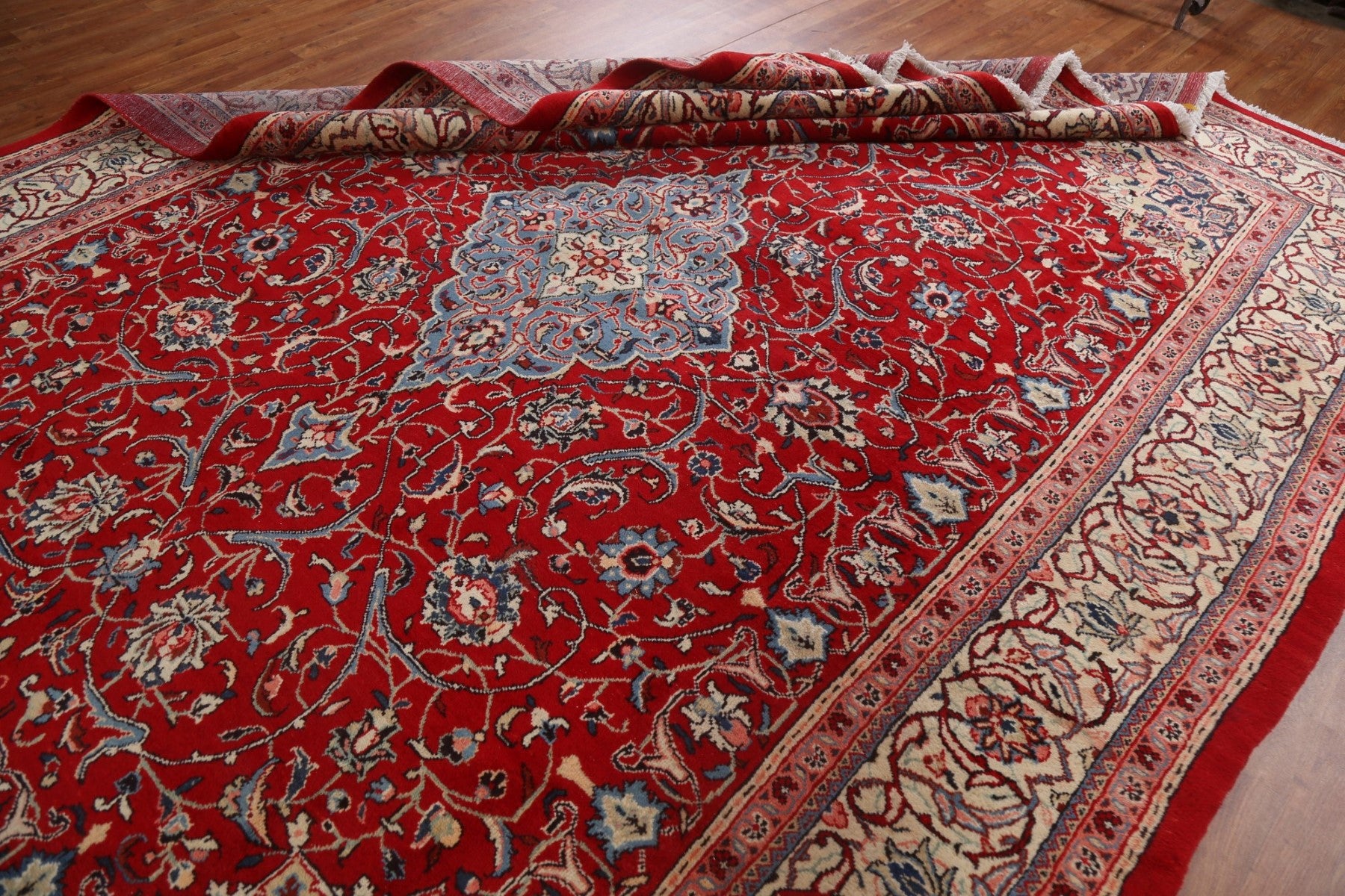 A Beautiful Genuine Persia ( Persia ) Sarouk rug is Hand Knotted by skillful weavers in Persia ( Persia ) with 100% Wool Material. This rug is in Very Good condition. dimensions are 11' 10'' X 8' 11'' in foot and 361 X 272 in centimeter. the primary color is Red.